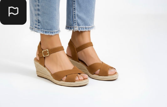 Sandalias Cuña Esparto Mujer Camel – Alpargatas Plataforma Verano Cómodas YJ-18