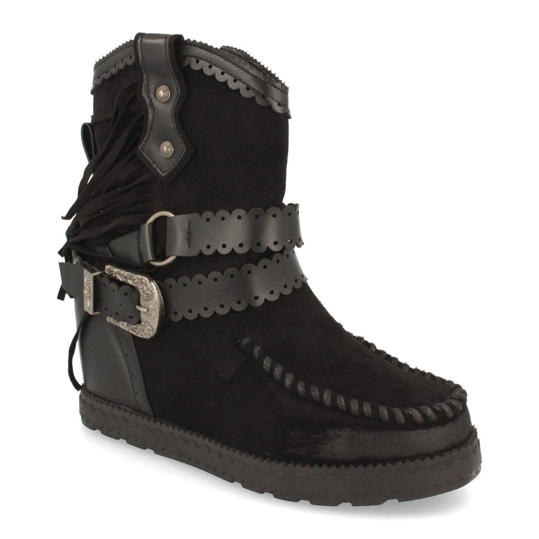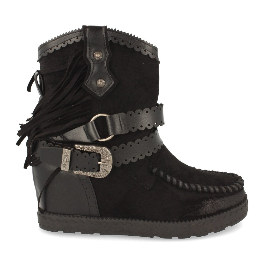Bota de Estilo Indio Correas con Hebilla Flecos en Caña Cuña Interior Cierre de Cremallera Otoño Invierno 2020