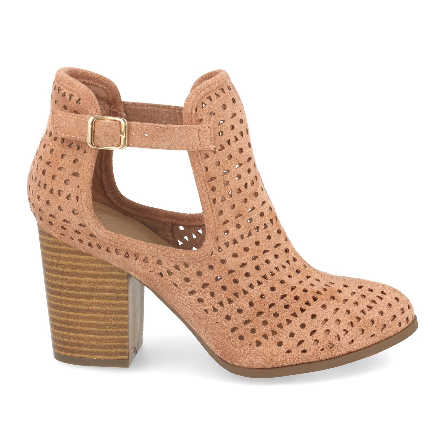 Botin de Mujer con Tacon de Estilo Casual con Calados y Apertura Lateral Cierre de Hebilla Tobillo Abierto. Primavera Verano 2020.