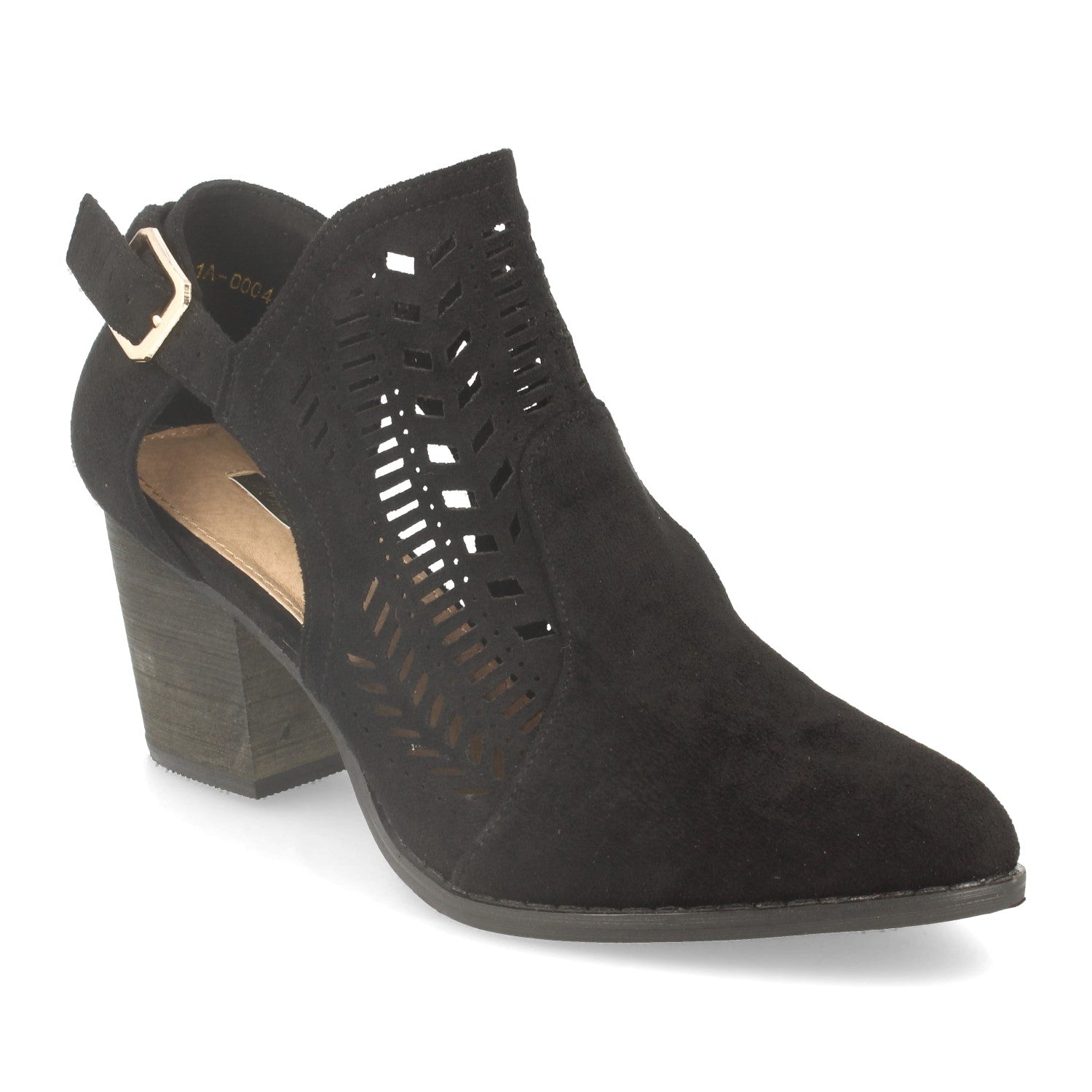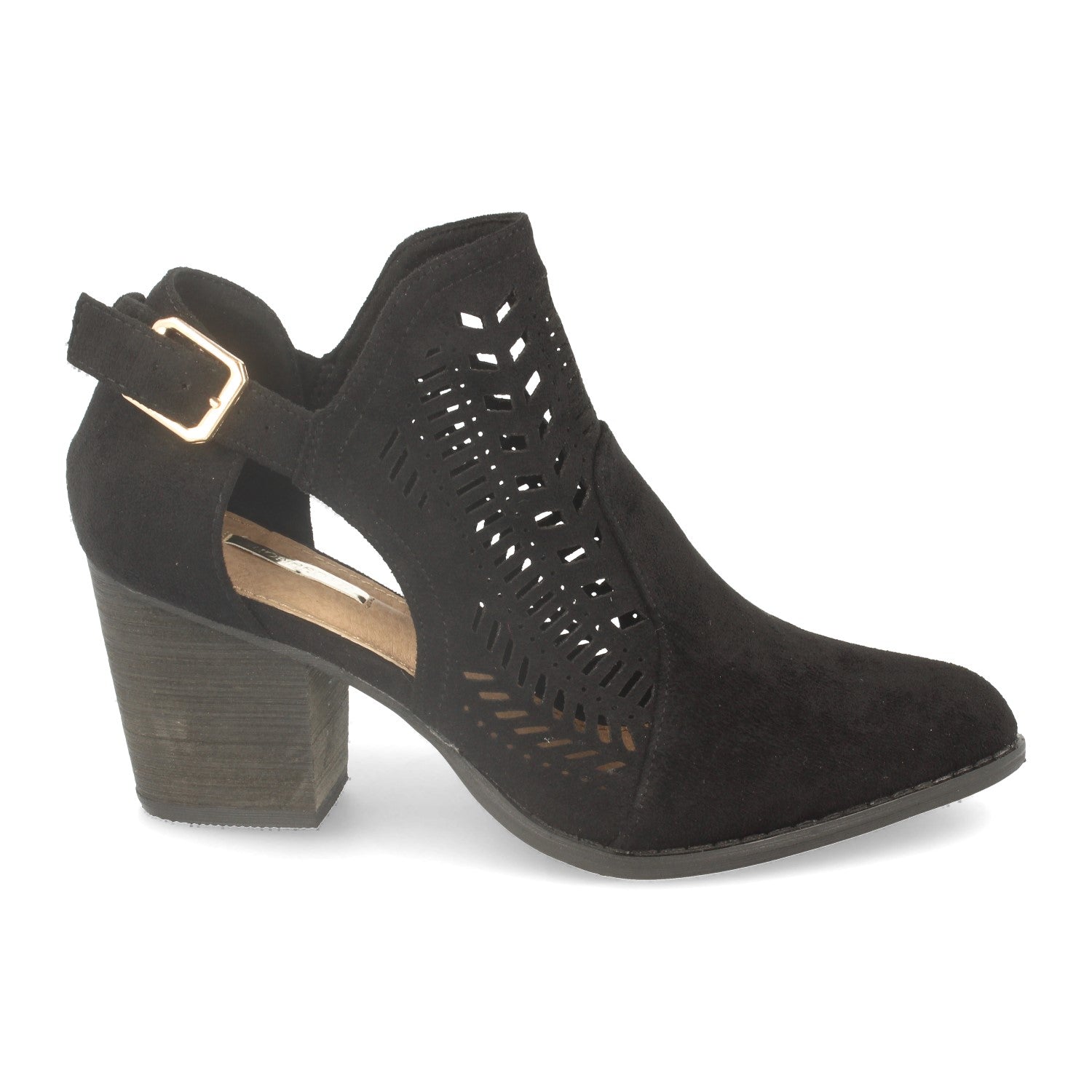Botin de Mujer con Tacon con Calados y Apertura Lateral Cierre de Hebilla Tobillo Abierto Primavera Verano 2020