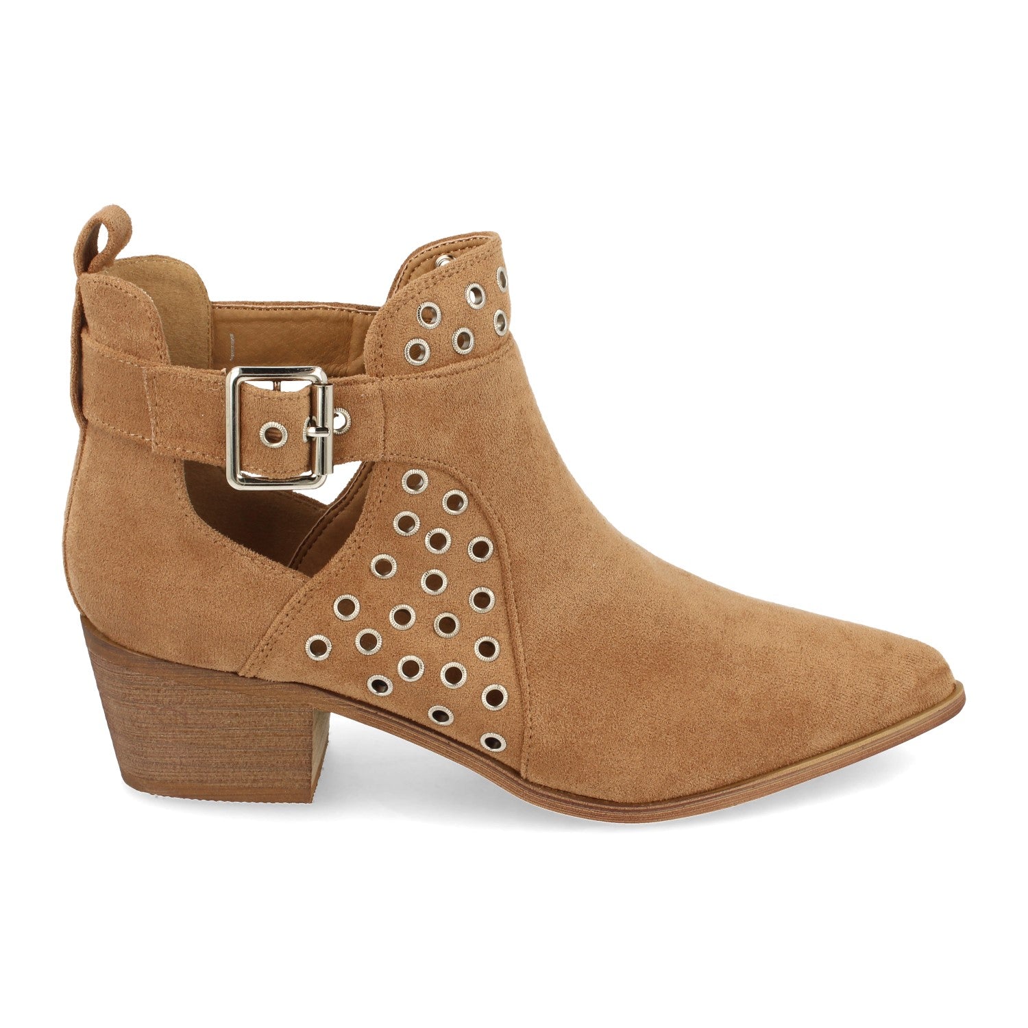 Botín de Mujer con Tacón Estilo Casual con Punta Fina Tobillo Abierto Tachas y Cierre de Hebilla Primavera Verano 2021