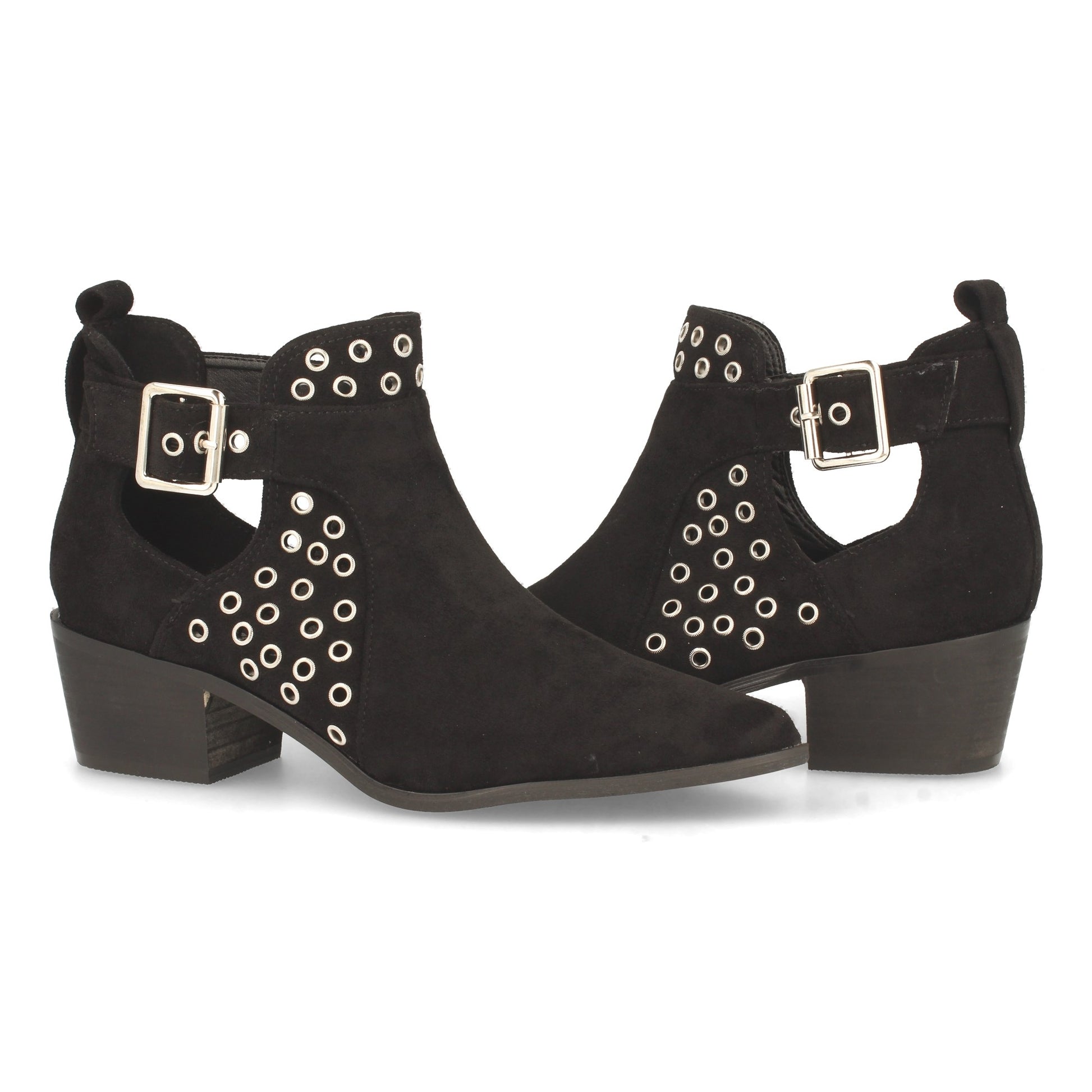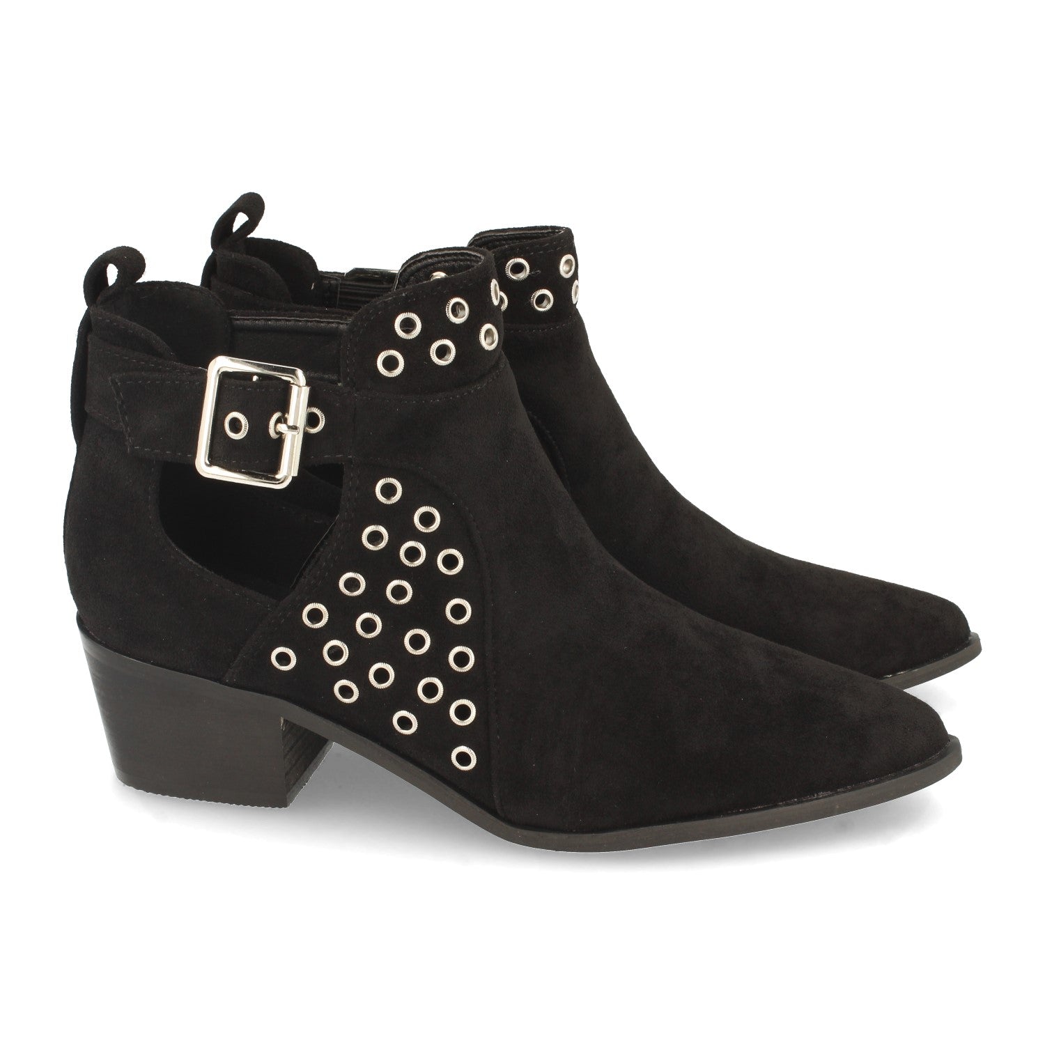 Botín de Mujer con Tacón Estilo Casual con Punta Fina Tobillo Abierto Tachas y Cierre de Hebilla Otoño Invierno 2021