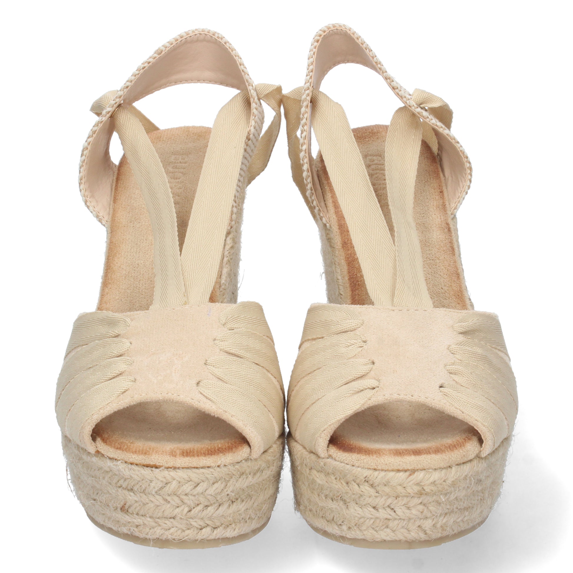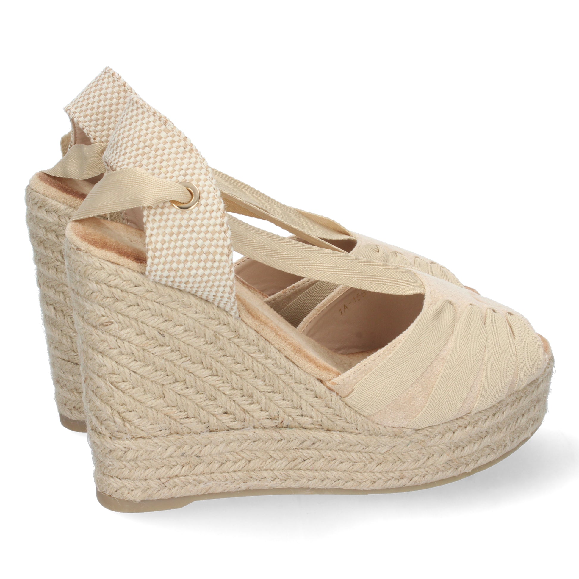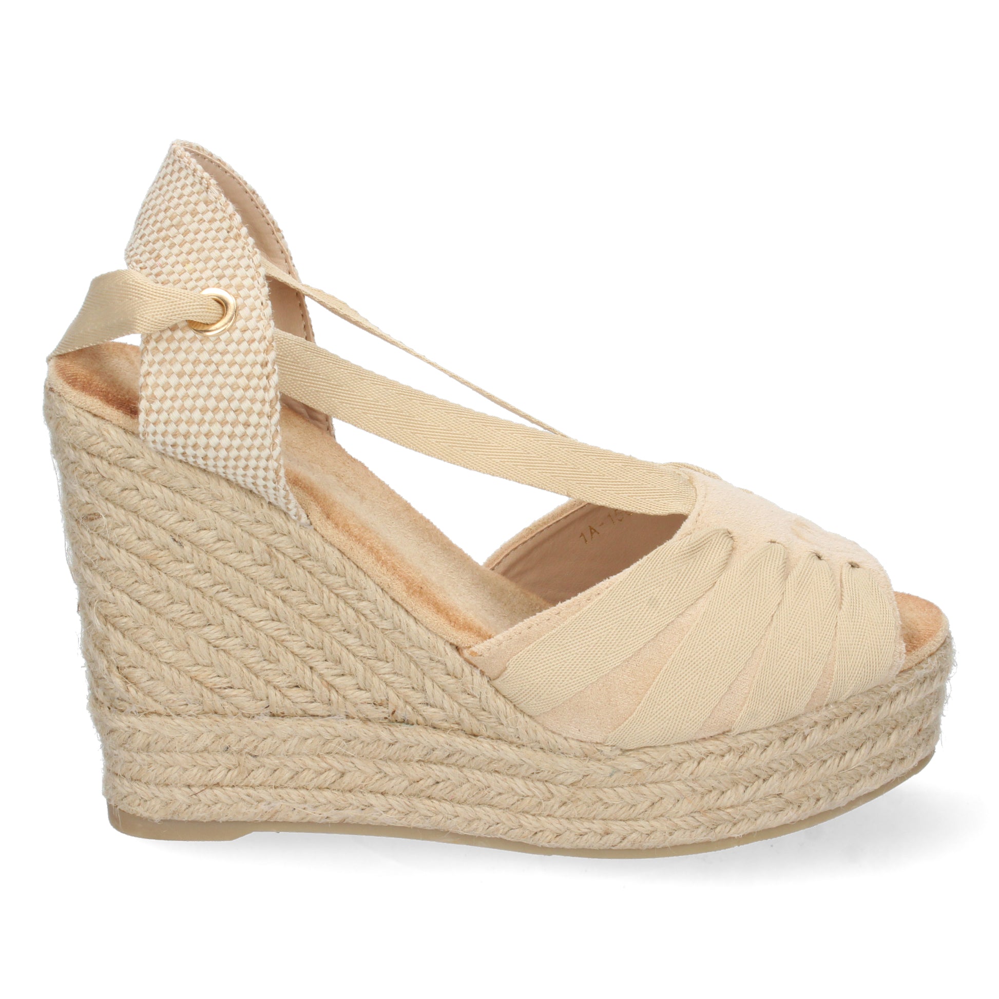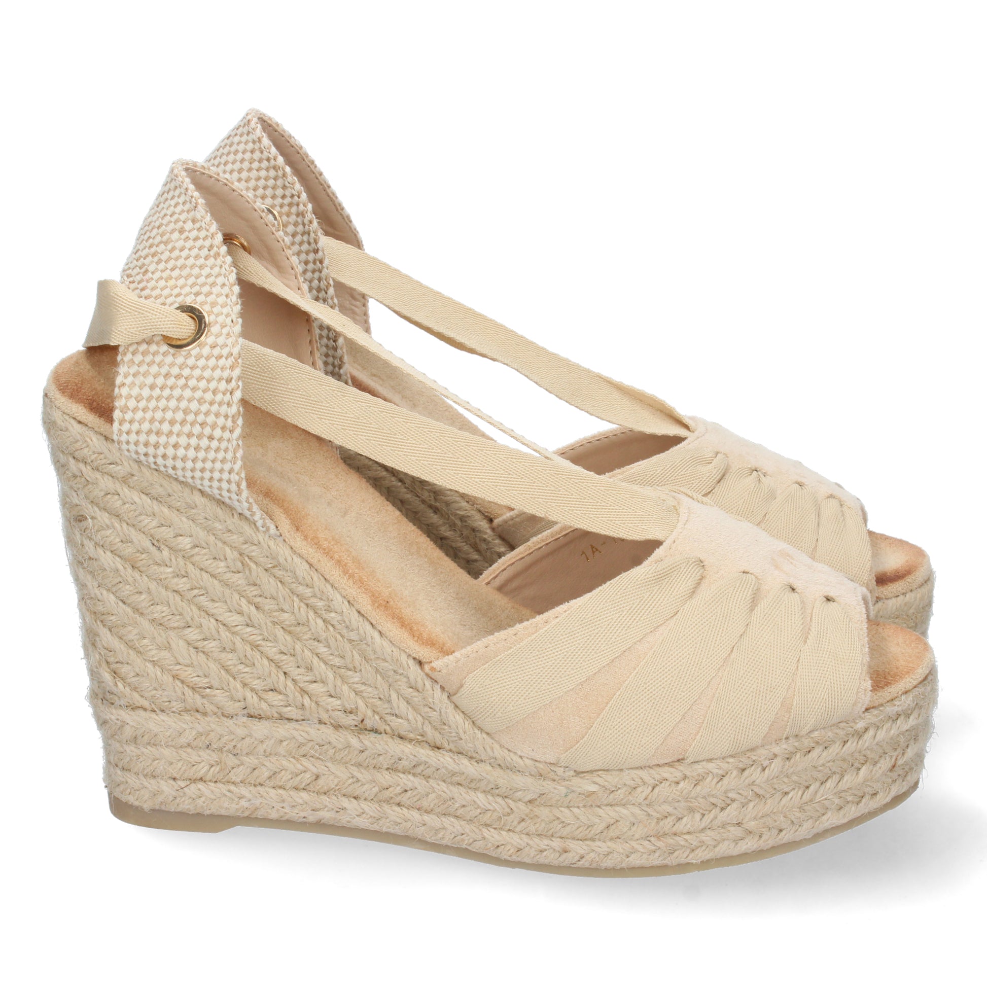 Sandalia de Cuña para Mujer Forrada de Yute con Pala Abierta y Cierre de Cordones Primavera Verano 2024
