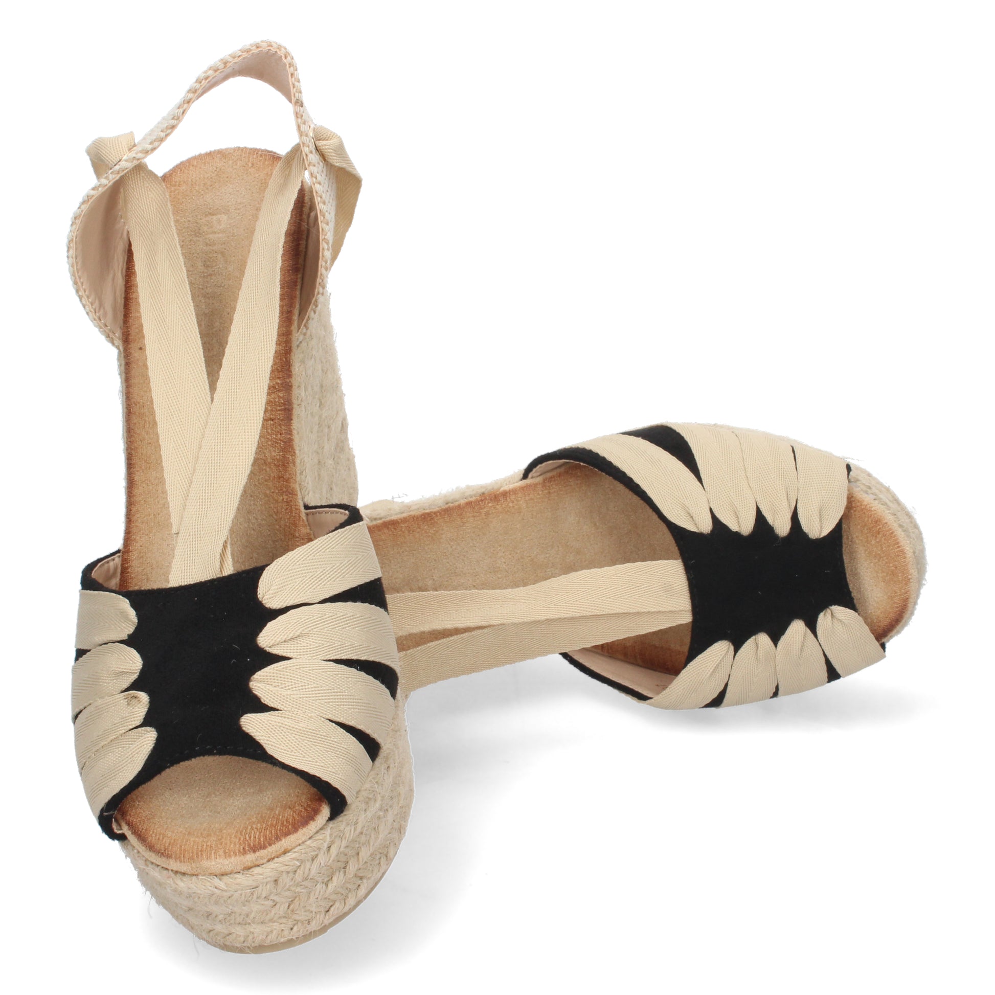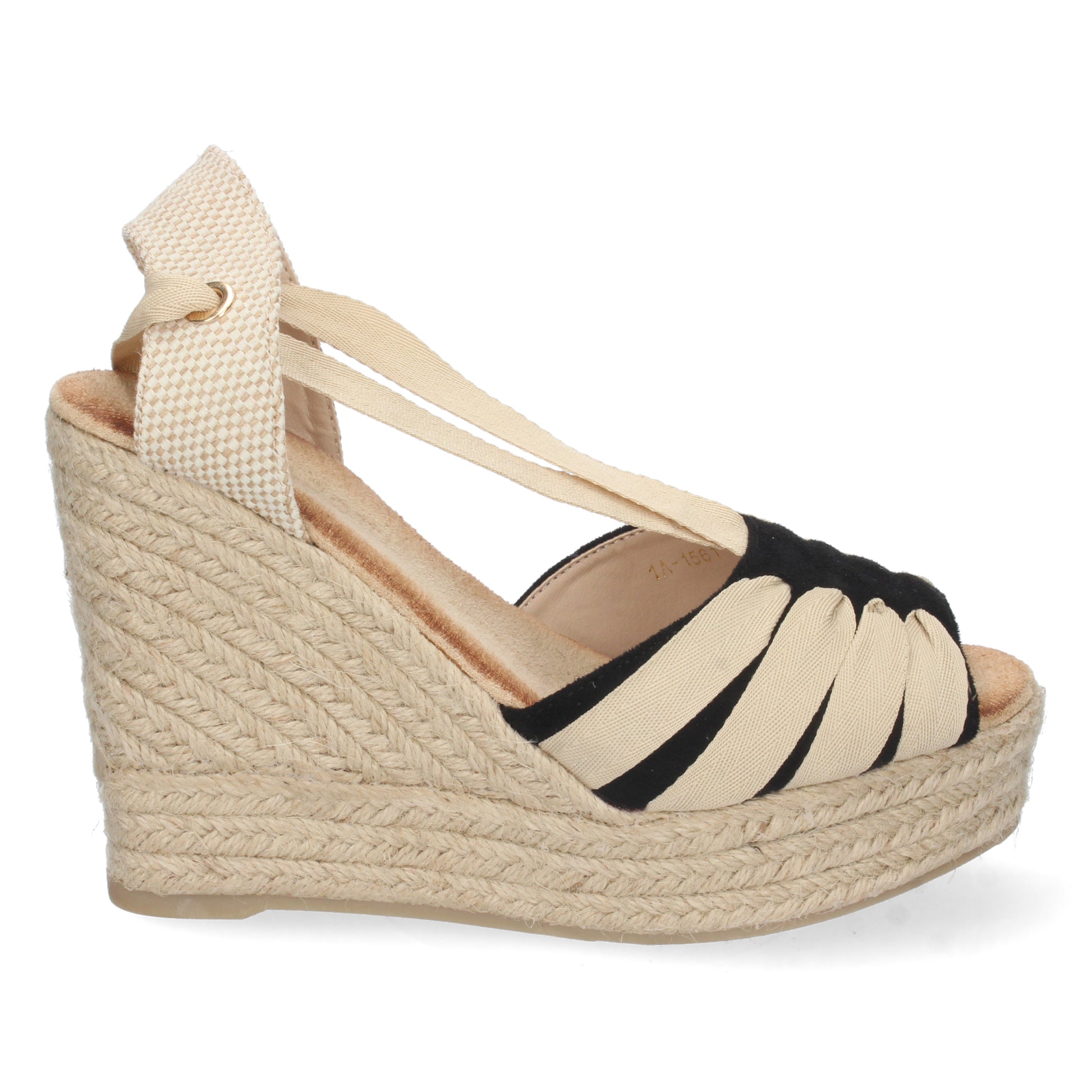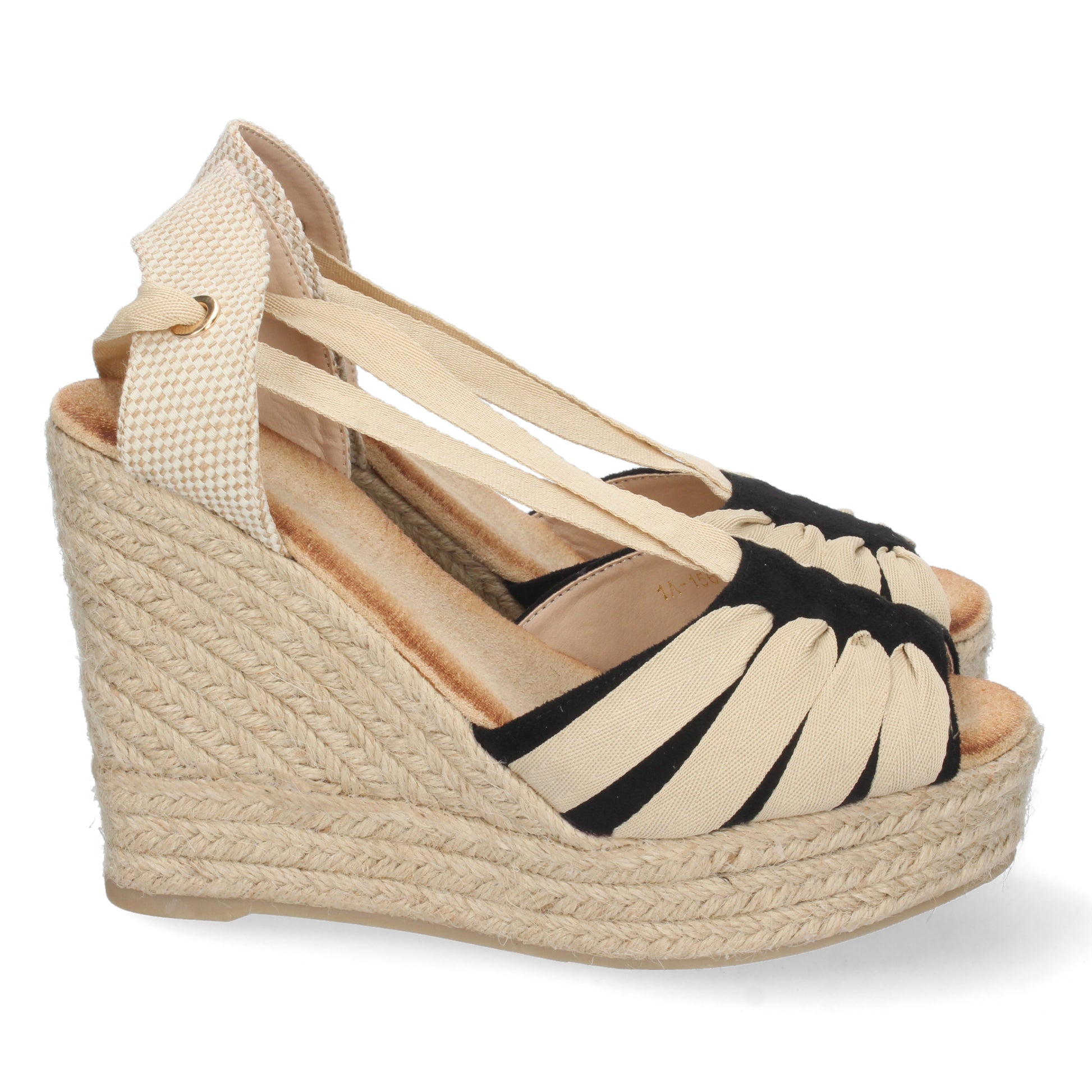 Sandalia de Cuña para Mujer Forrada de Yute con Pala Abierta y Cierre de Cordones Primavera Verano 2024