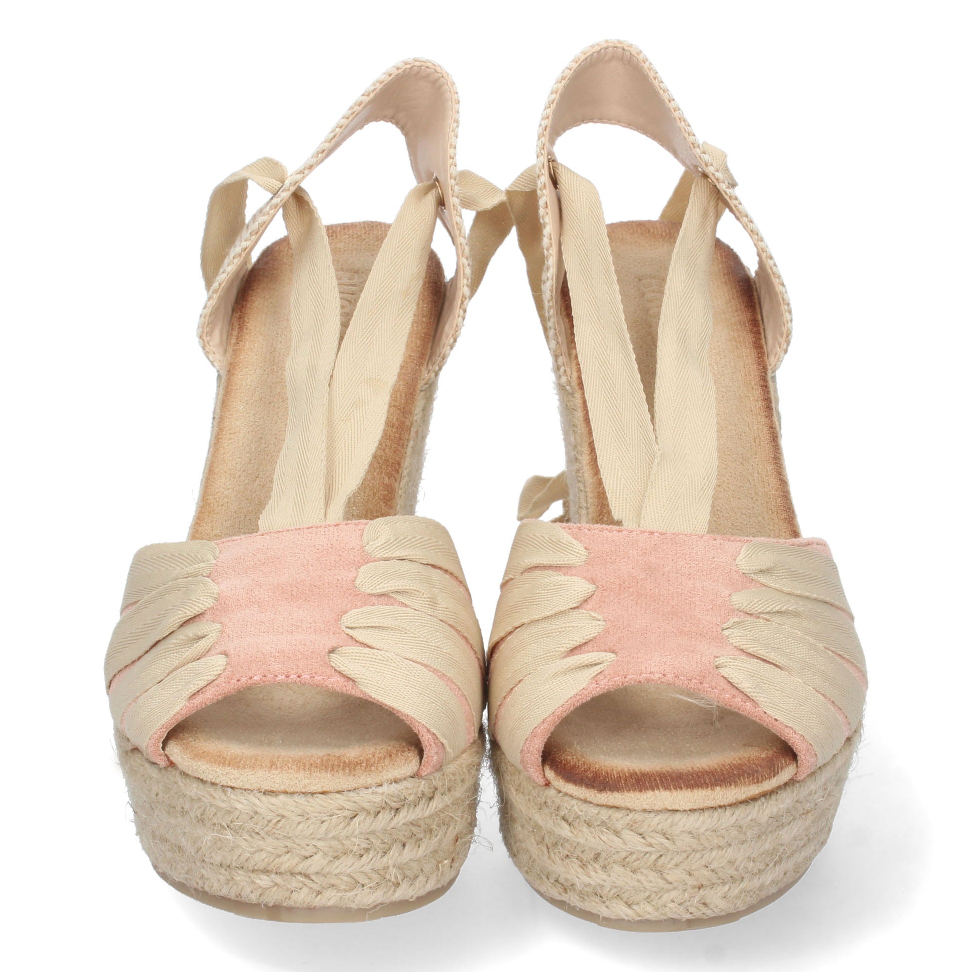 Sandalia de Cuña para Mujer Forrada de Yute con Pala Abierta y Cierre de Cordones Primavera Verano 2024