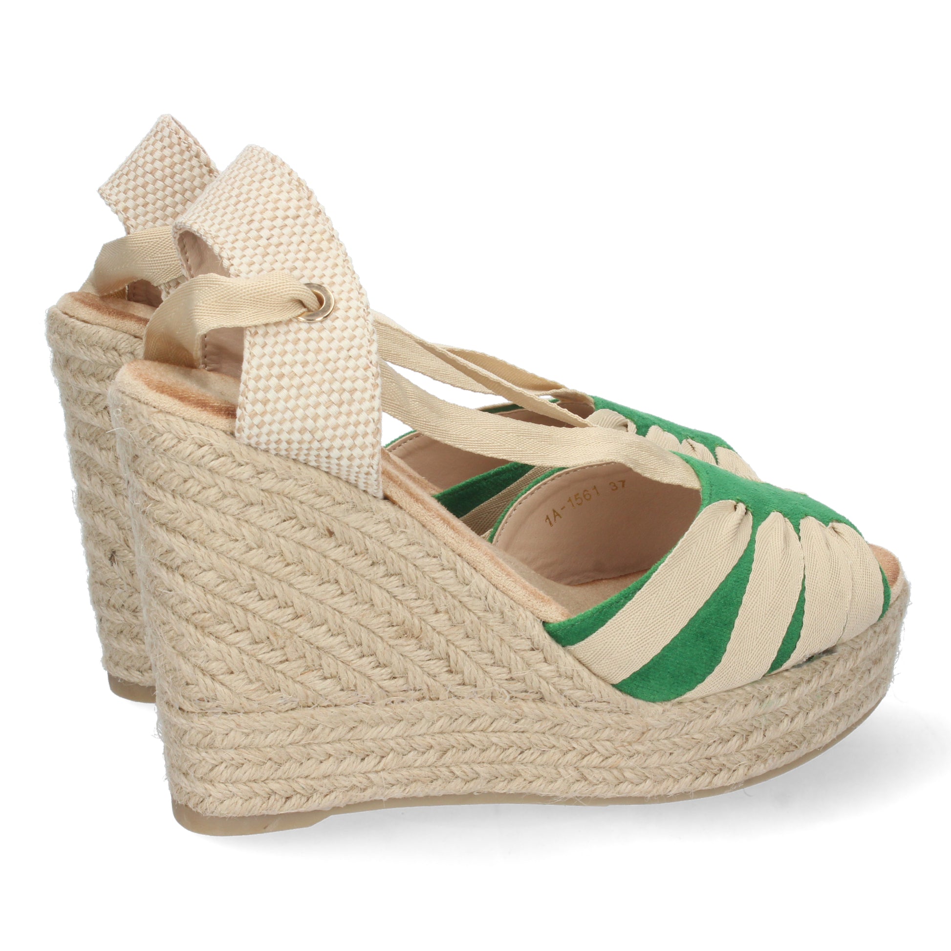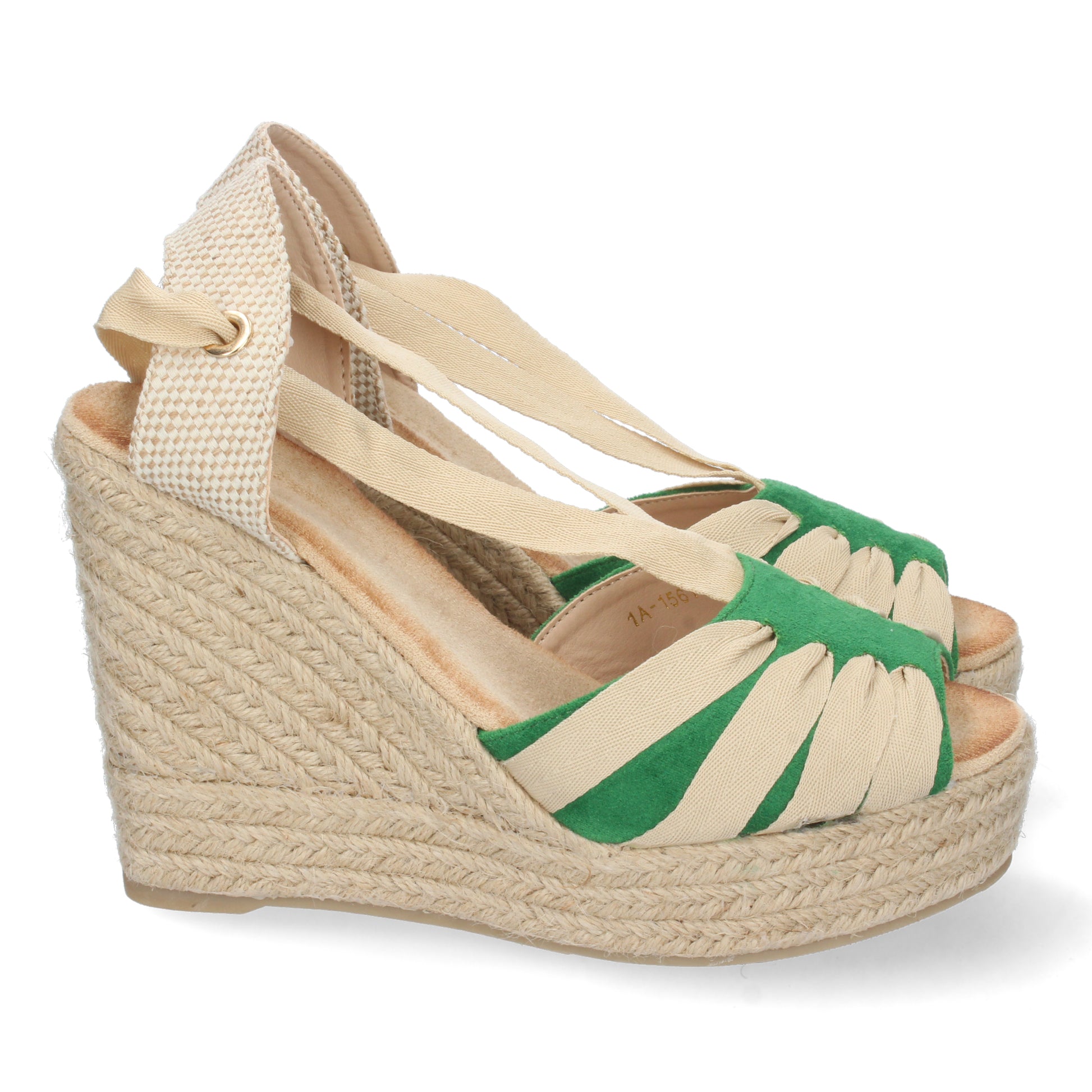 Sandalia de Cuña para Mujer Forrada de Yute con Pala Abierta y Cierre de Cordones Primavera Verano 2024