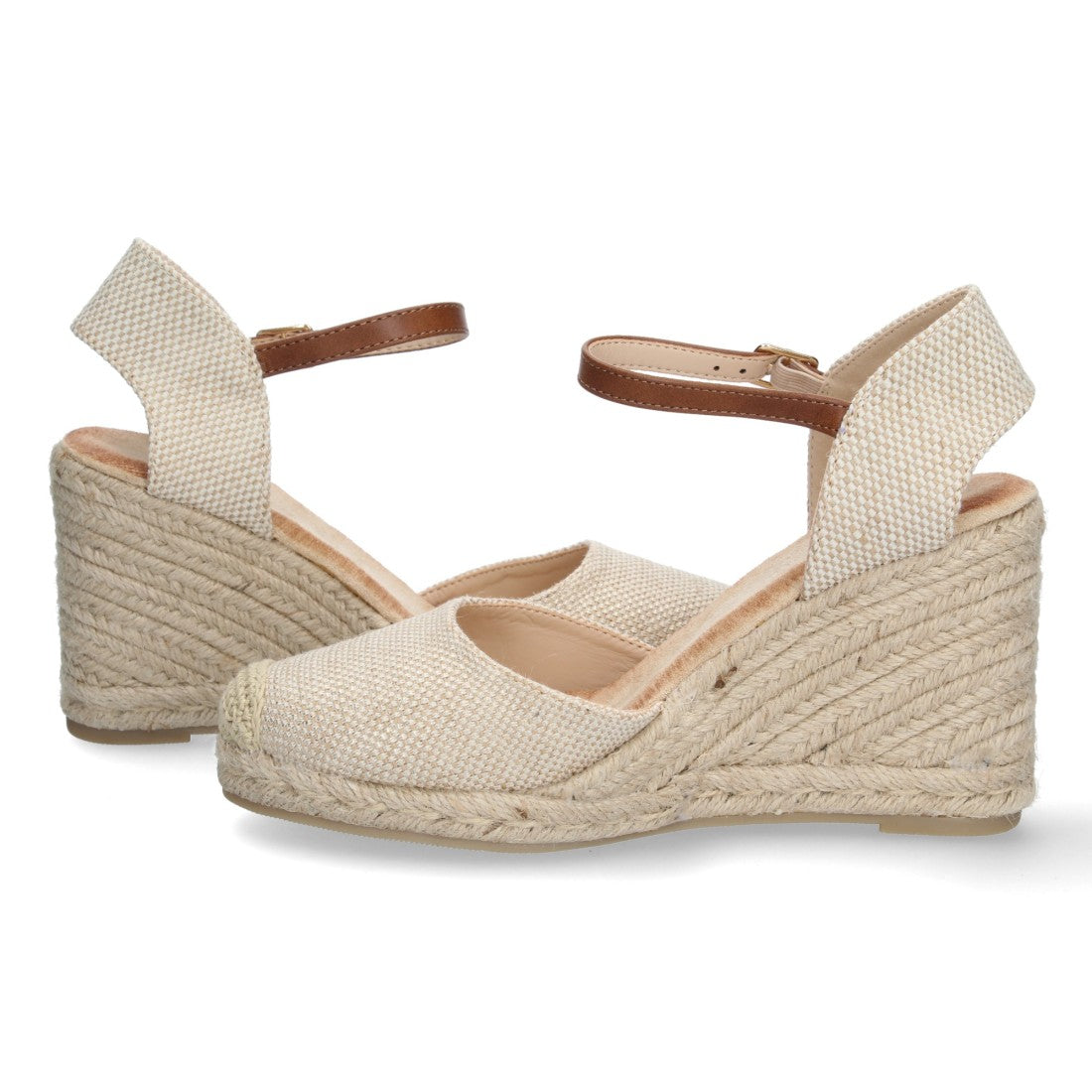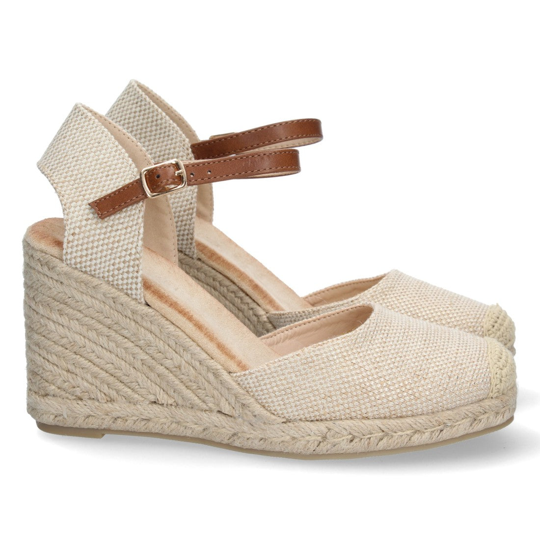 Sandalia de Cuña para Mujer Comodas Forrado de Yute Pala Cerrada y Cierre de Hebilla Primavera Verano 2022