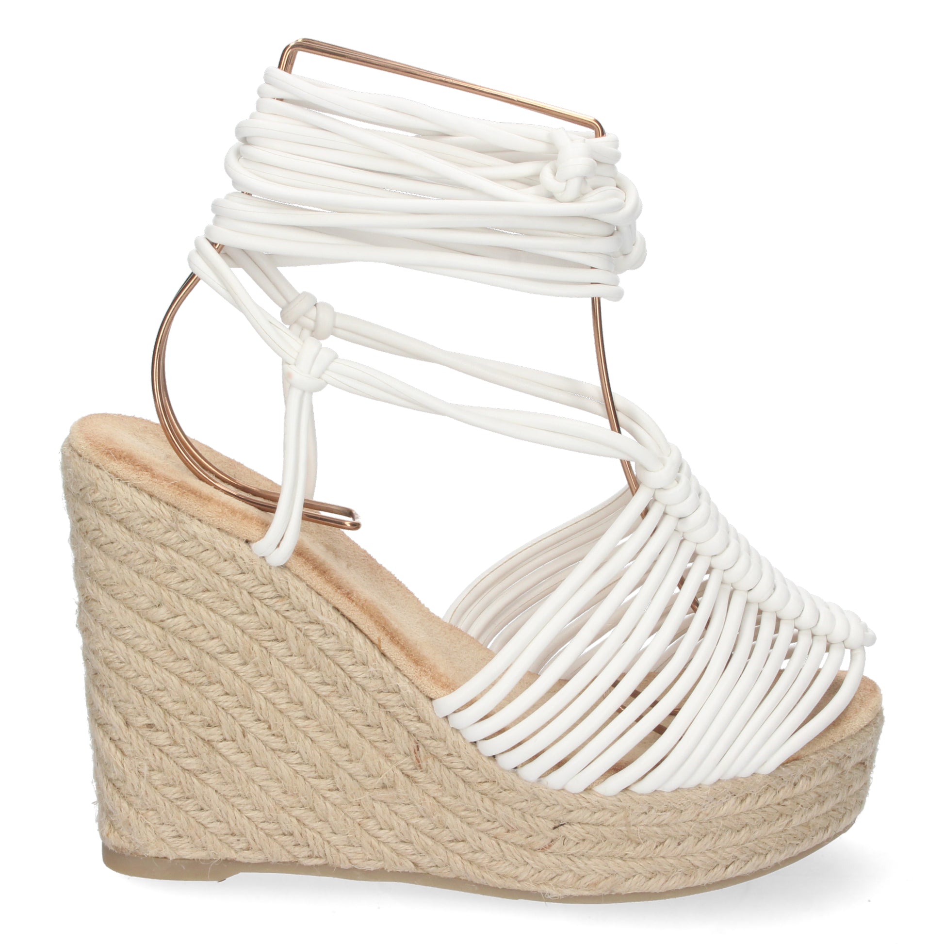 Sandalia de Cuña para Mujer Forrada de Yute con Pala de Tiras y Cierre de Cordones Primavera Verano 2022