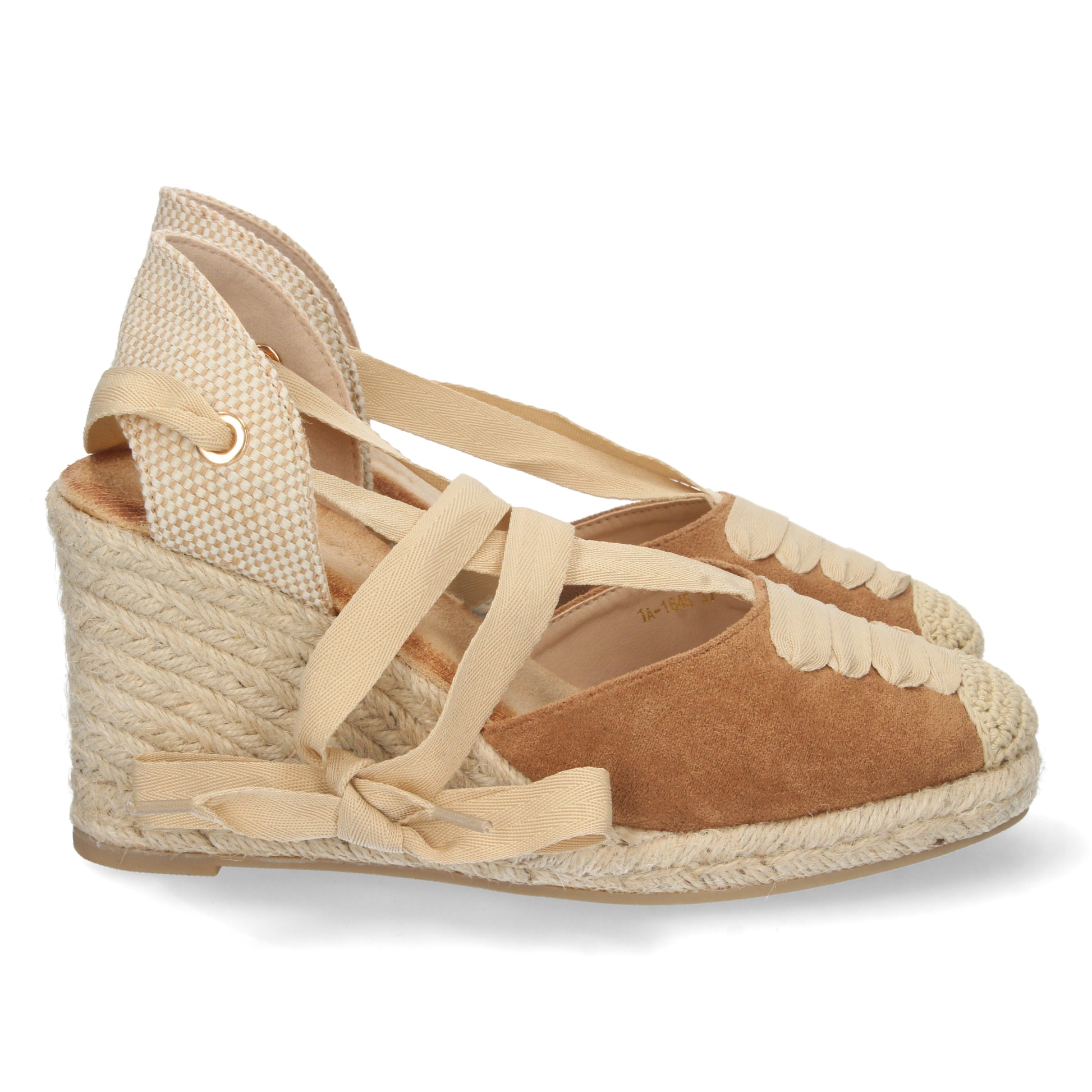 Sandalia de Cuña para Mujer Forrado de Yute con Pala Cerrada y Cierre de Cordones Primavera Verano 2022