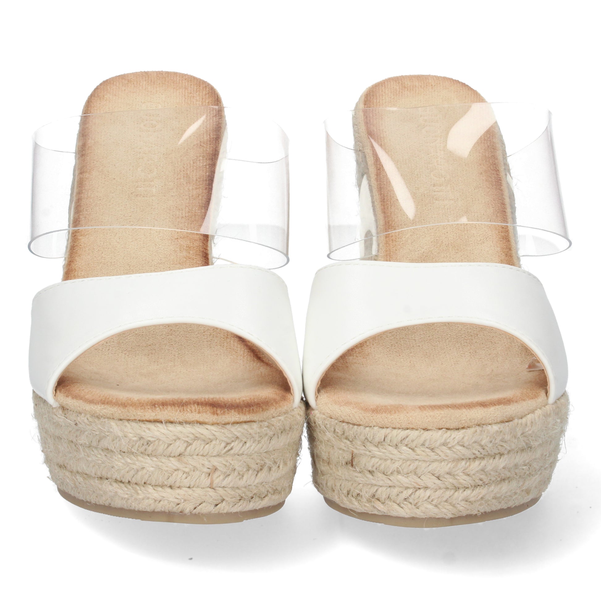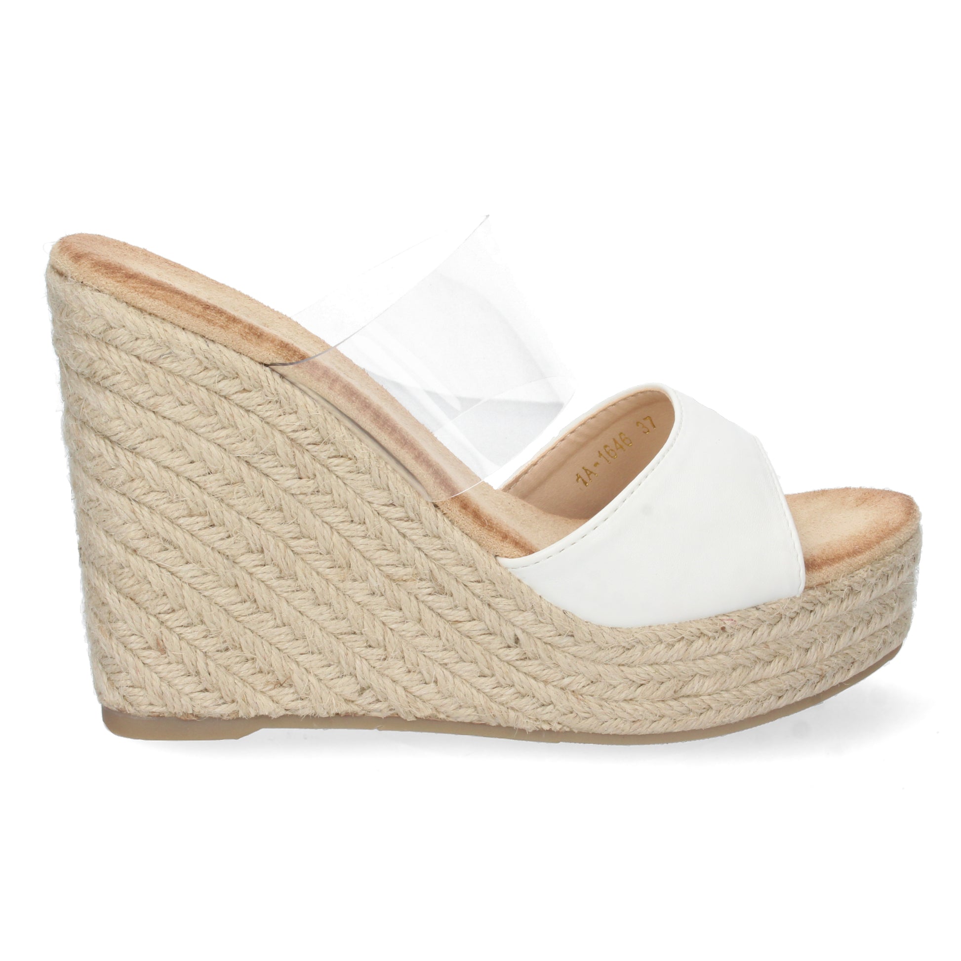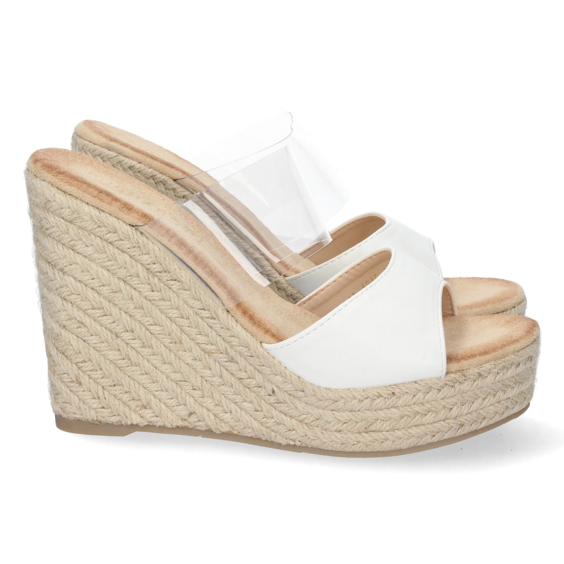 Sandalia de Cuña para Mujer Comodas Pala con Vinilo Transparente y Talón Abierto Primavera Verano 2022