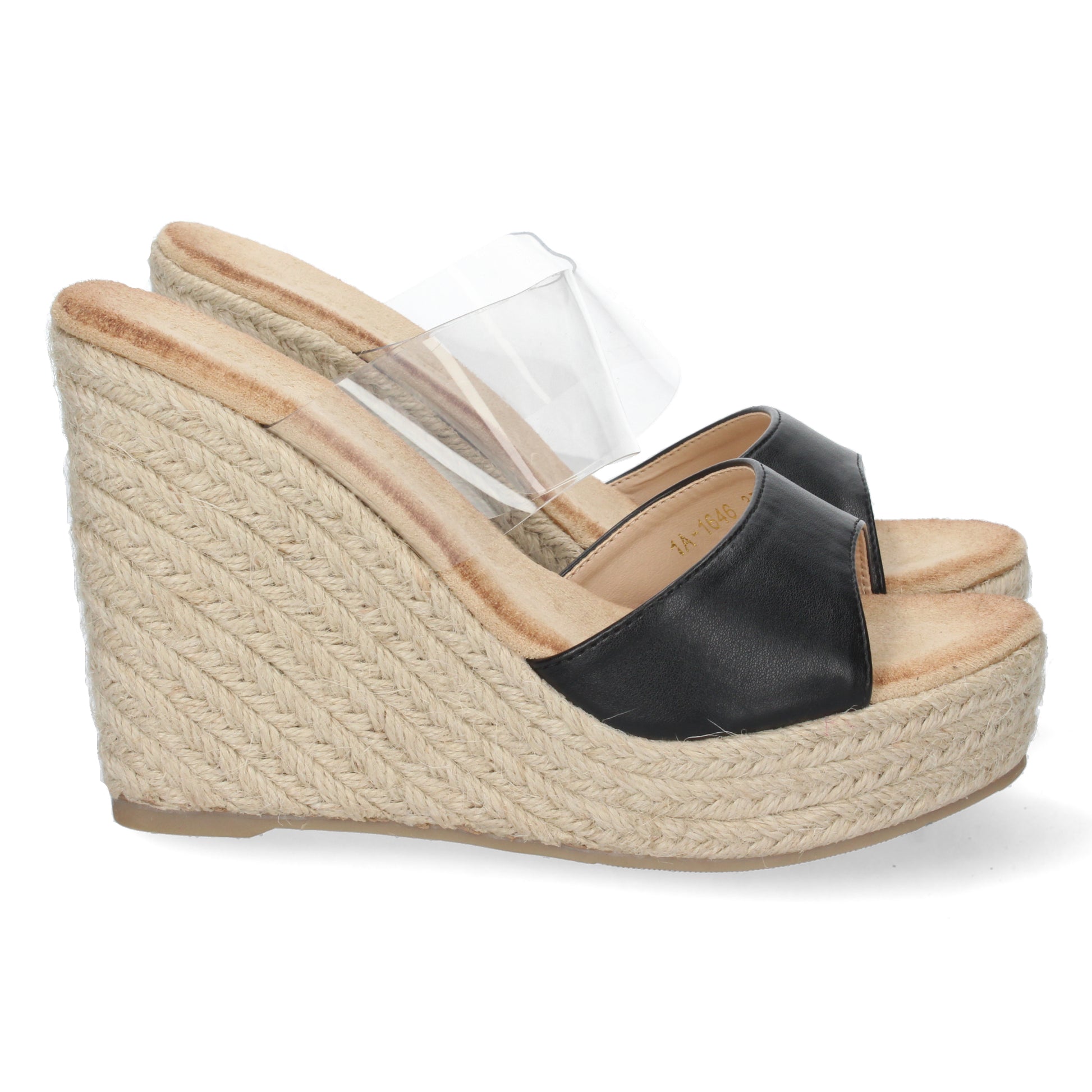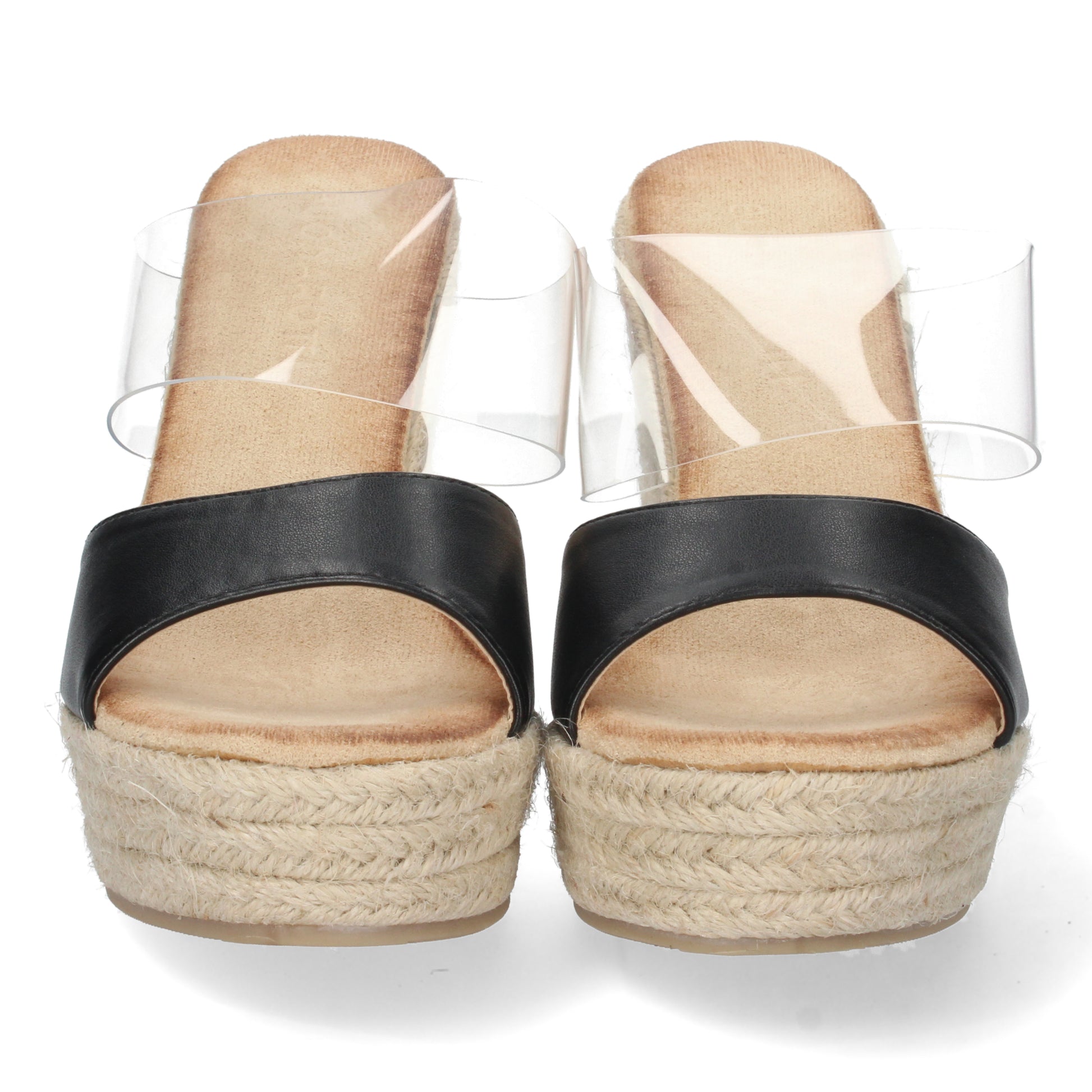 Sandalia de Cuña para Mujer Comodas Pala con Vinilo Transparente y Talón Abierto Primavera Verano 2022