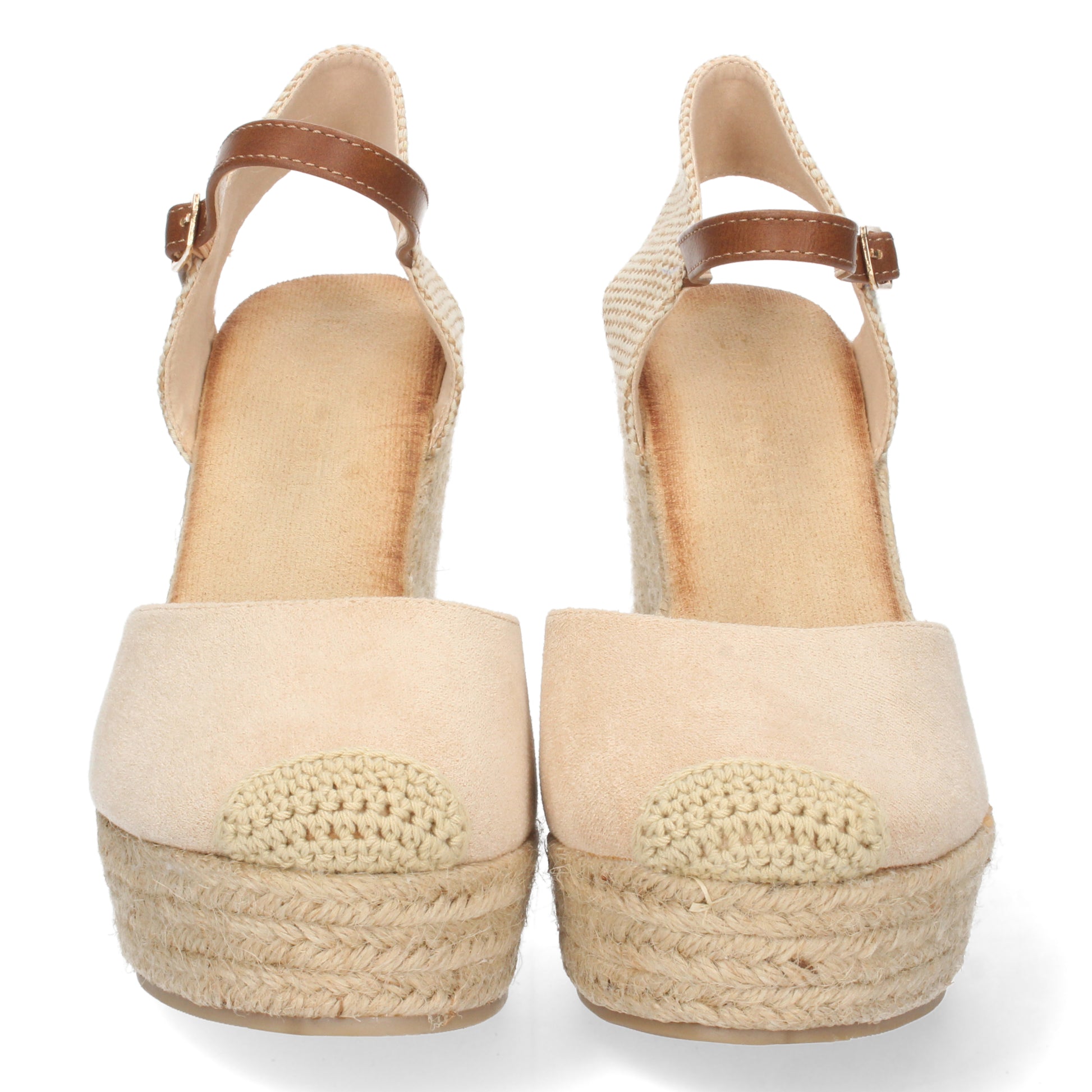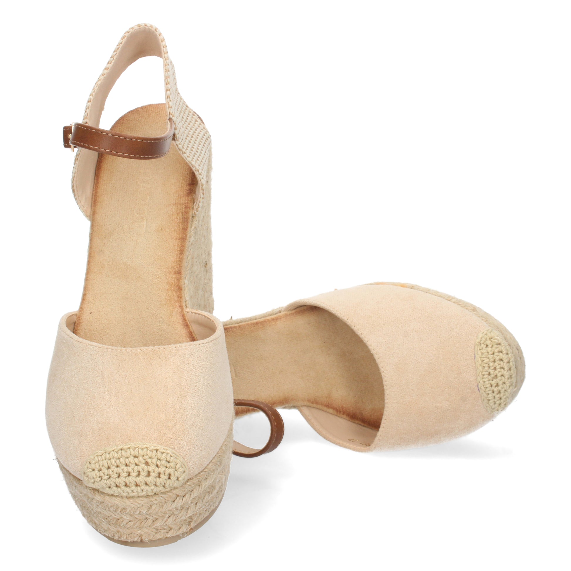 Sandalia de Cuña para Mujer Forrada de Yute con Pala Cerrada y Cierre de Hebilla Primavera Verano 2022