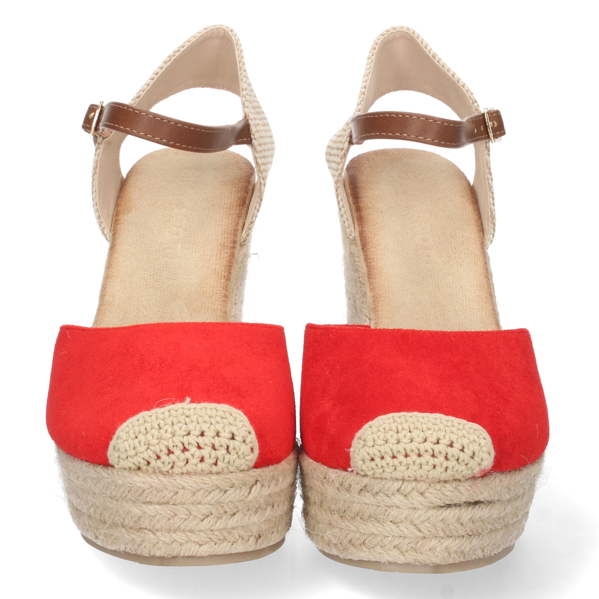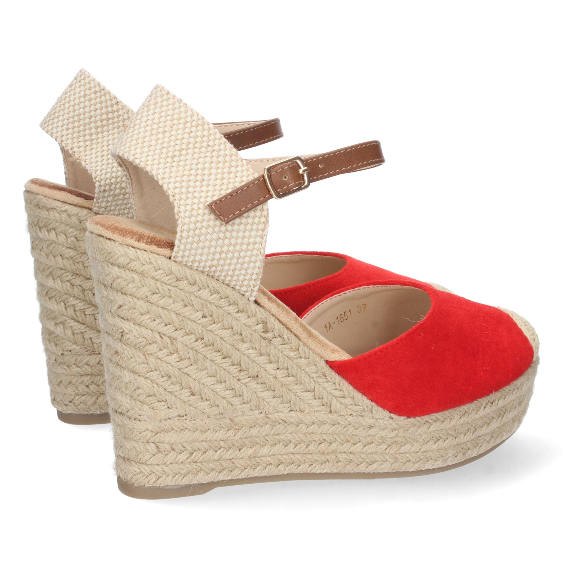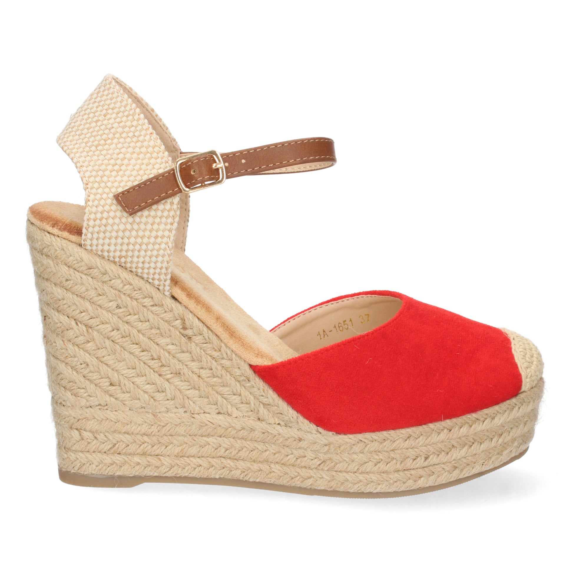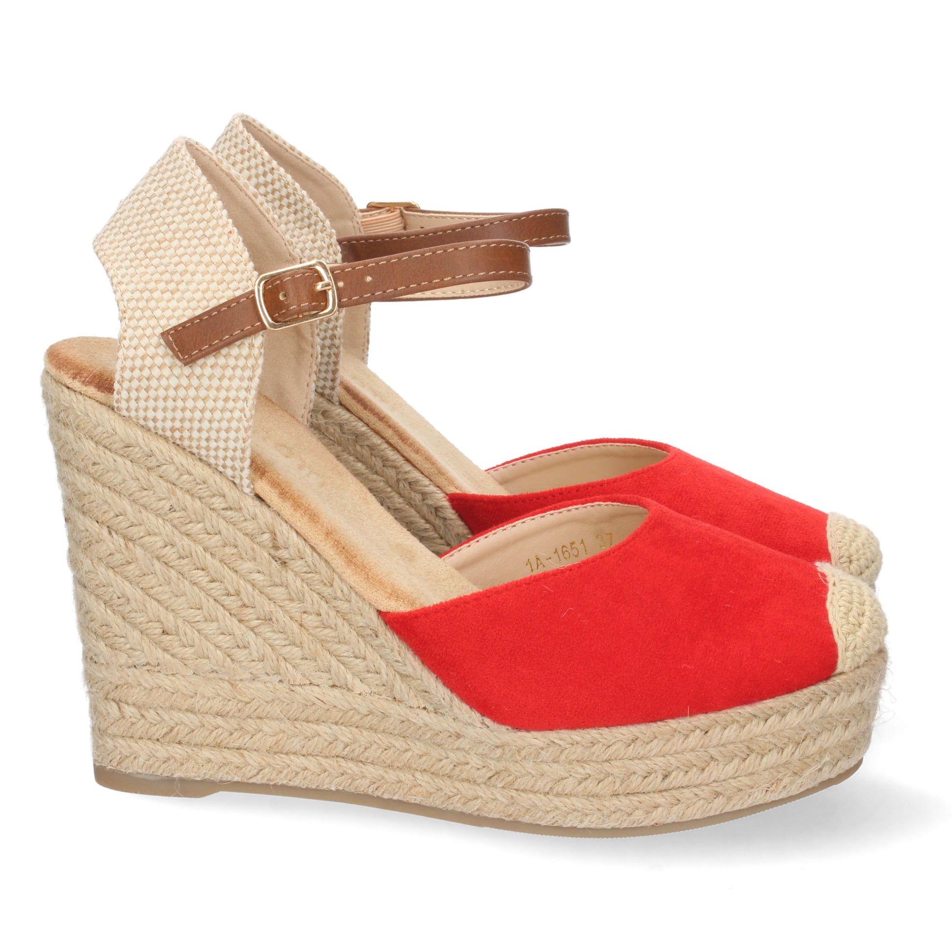 Sandalia de Cuña para Mujer Forrada de Yute con Pala Cerrada y Cierre de Hebilla Primavera Verano 2022