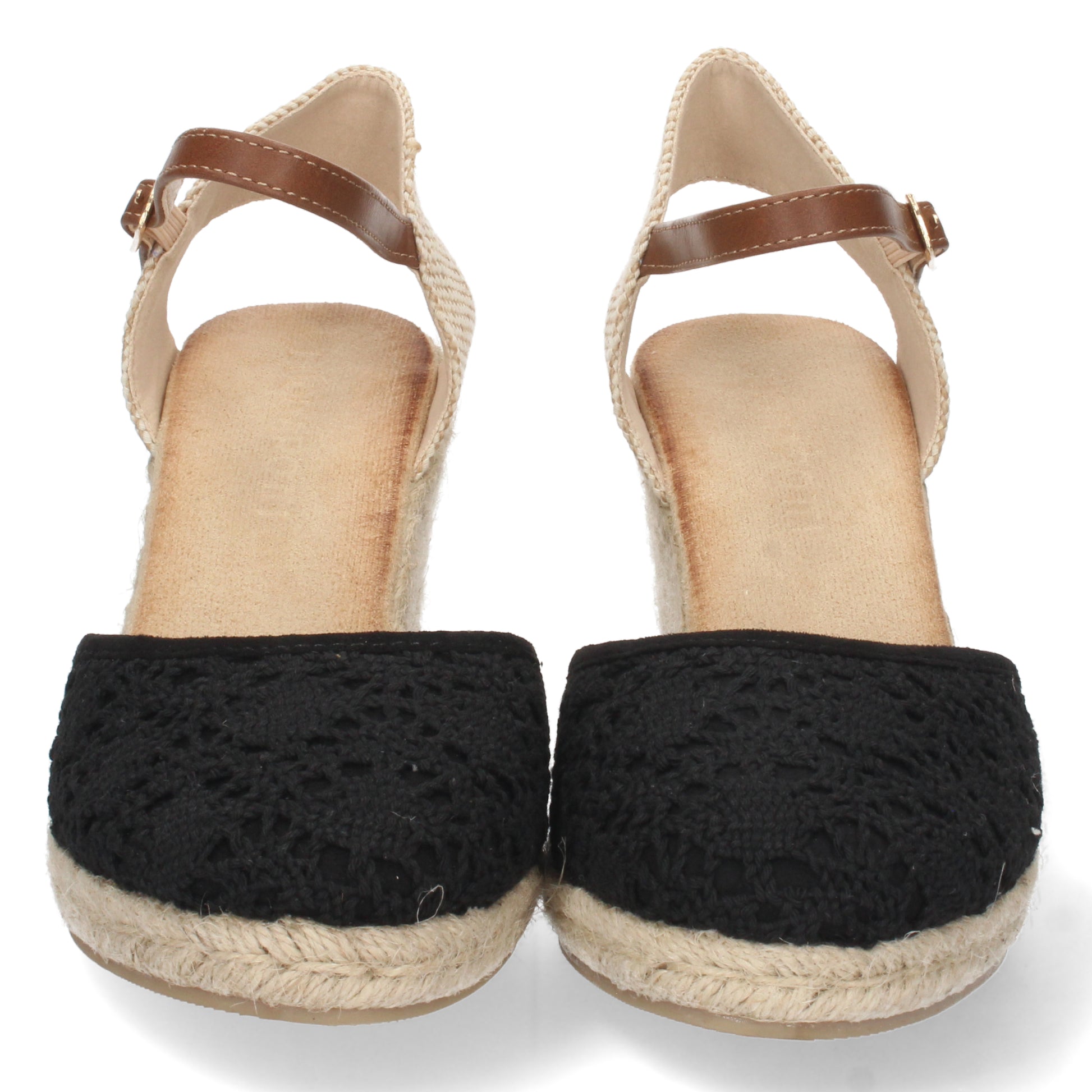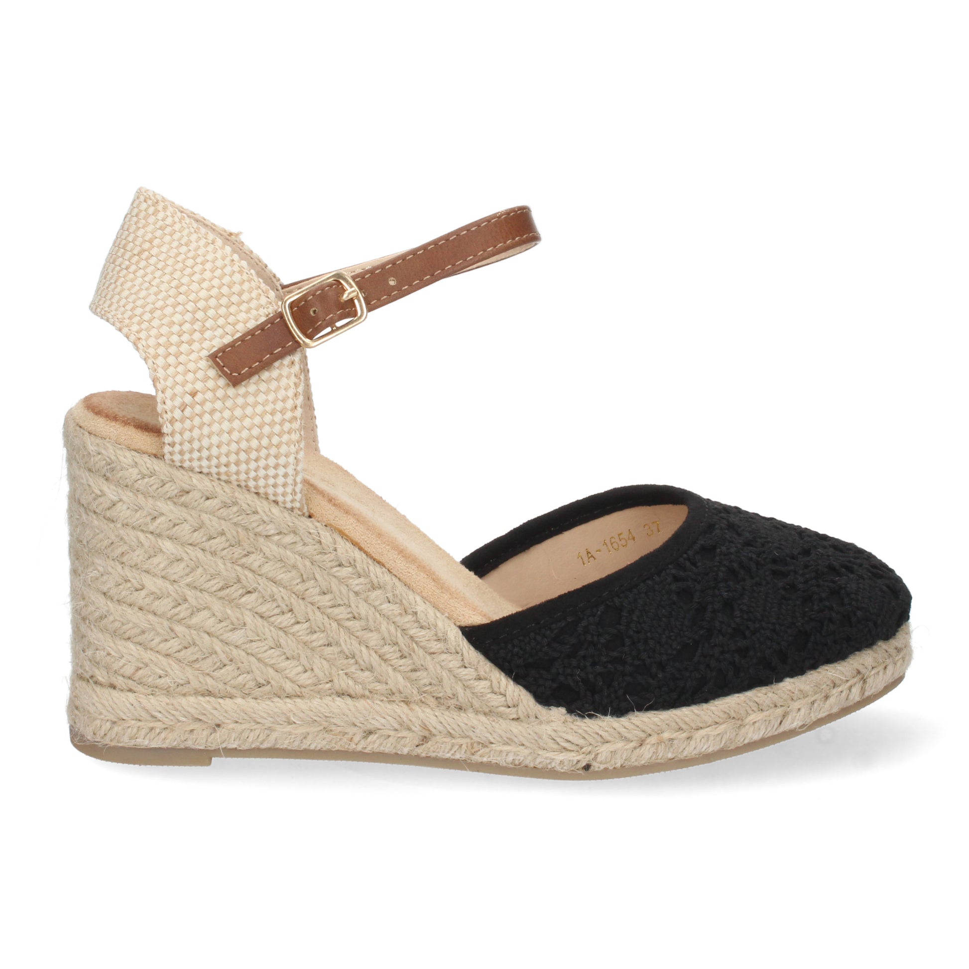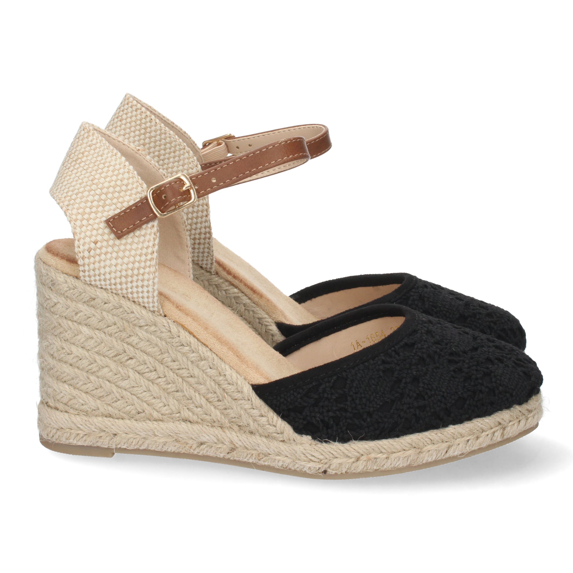 Sandalia de Cuña para Mujer Forrada de Yute con Pala Cerrada y Cierre de Hebilla Primavera Verano 2022