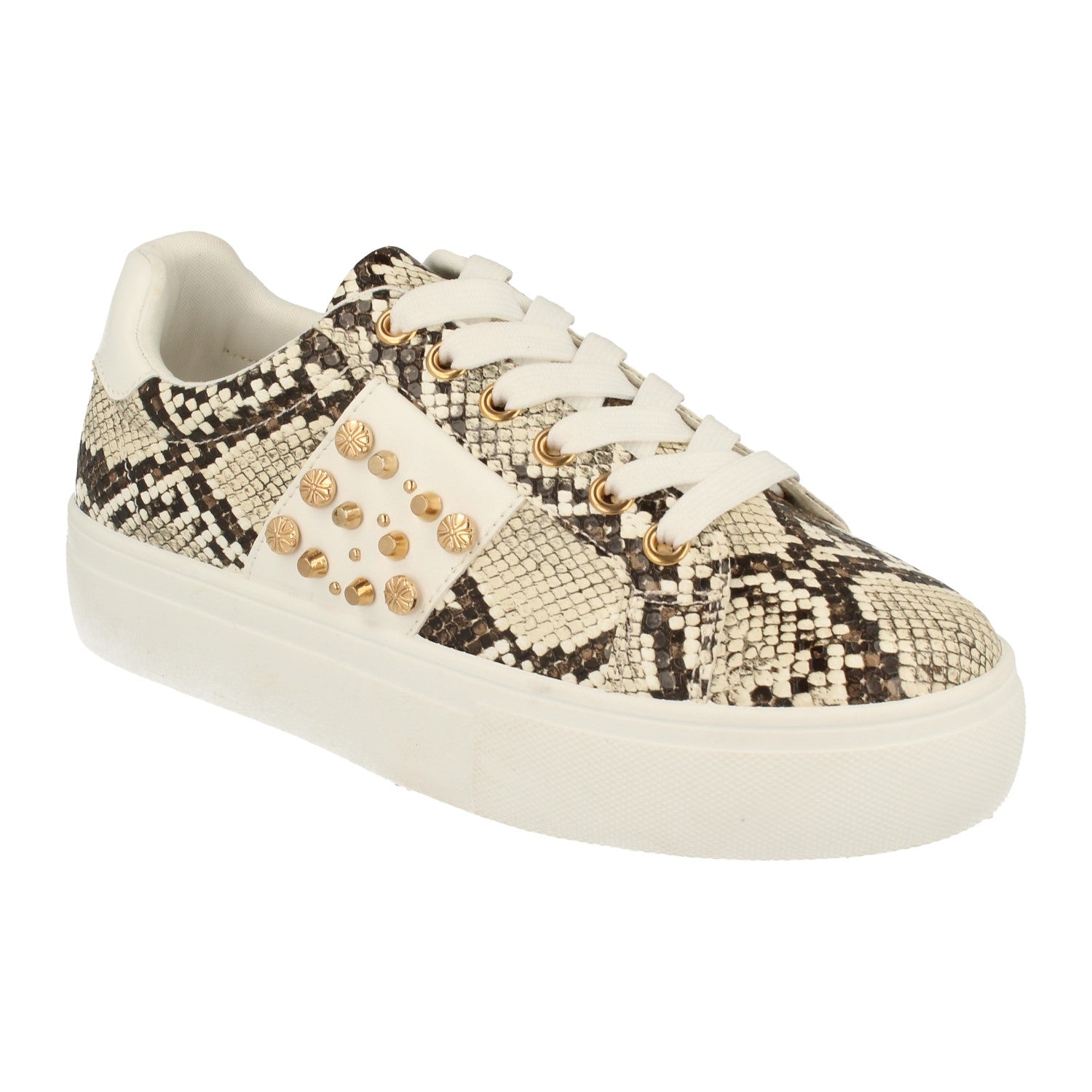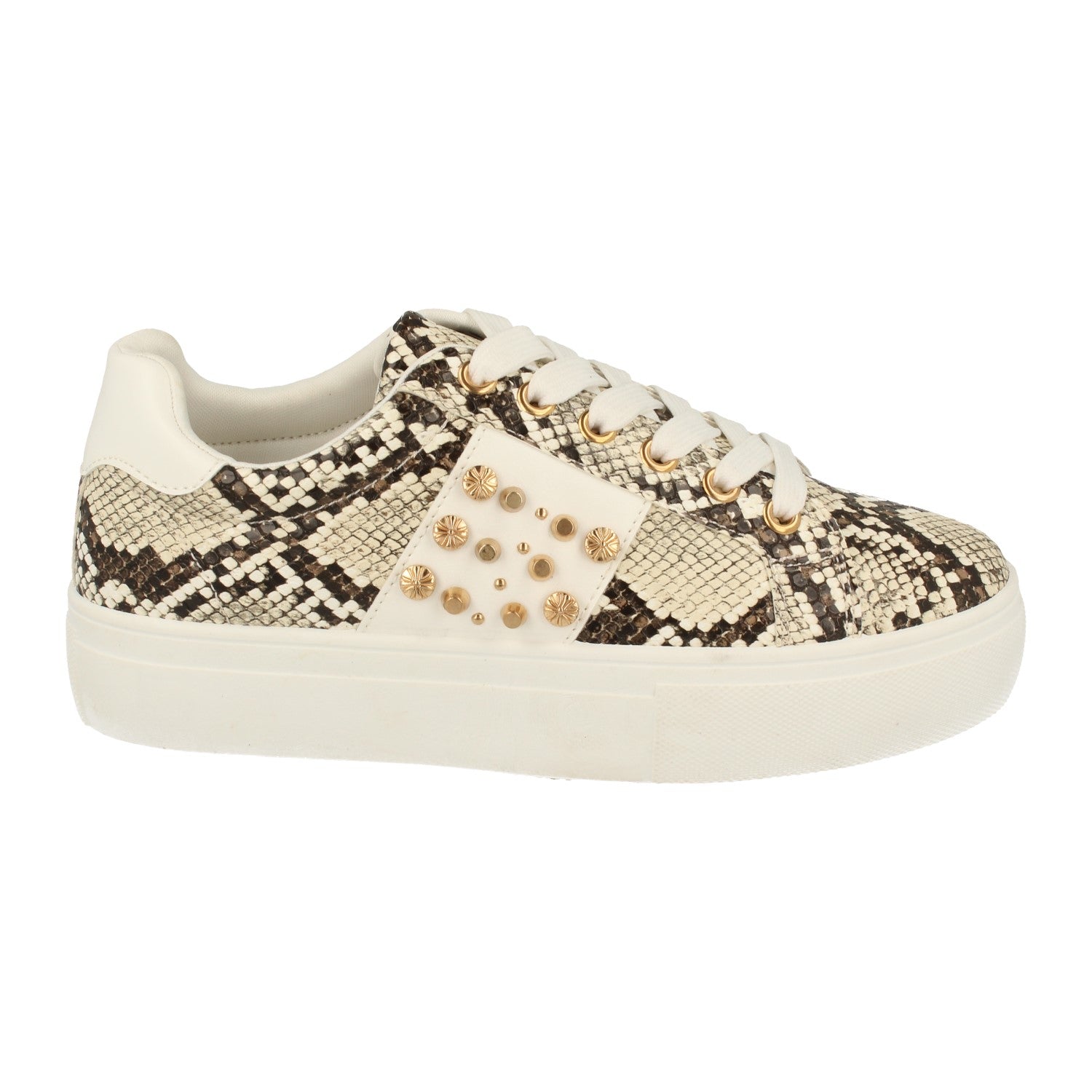 Zapatillas de Mujer con Estampado de Serpiente Adornos Metalicos en el Costado y Cierre de Cordones Otoño Invierno 2020