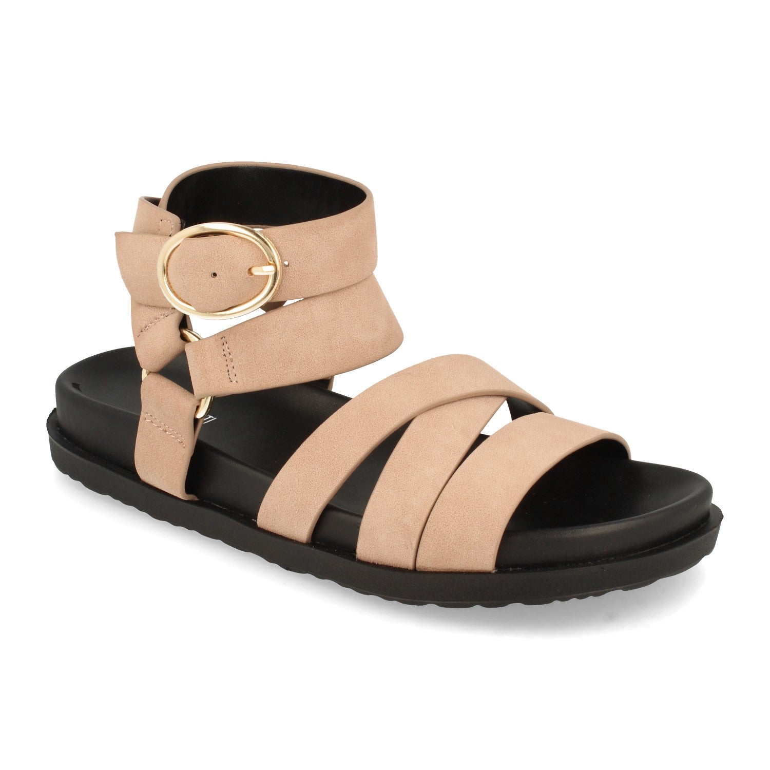 Sandalia Plana para Mujer de Estilo Romana con Palas Cruzadas y Cierre de Hebilla Primavera Verano 2021