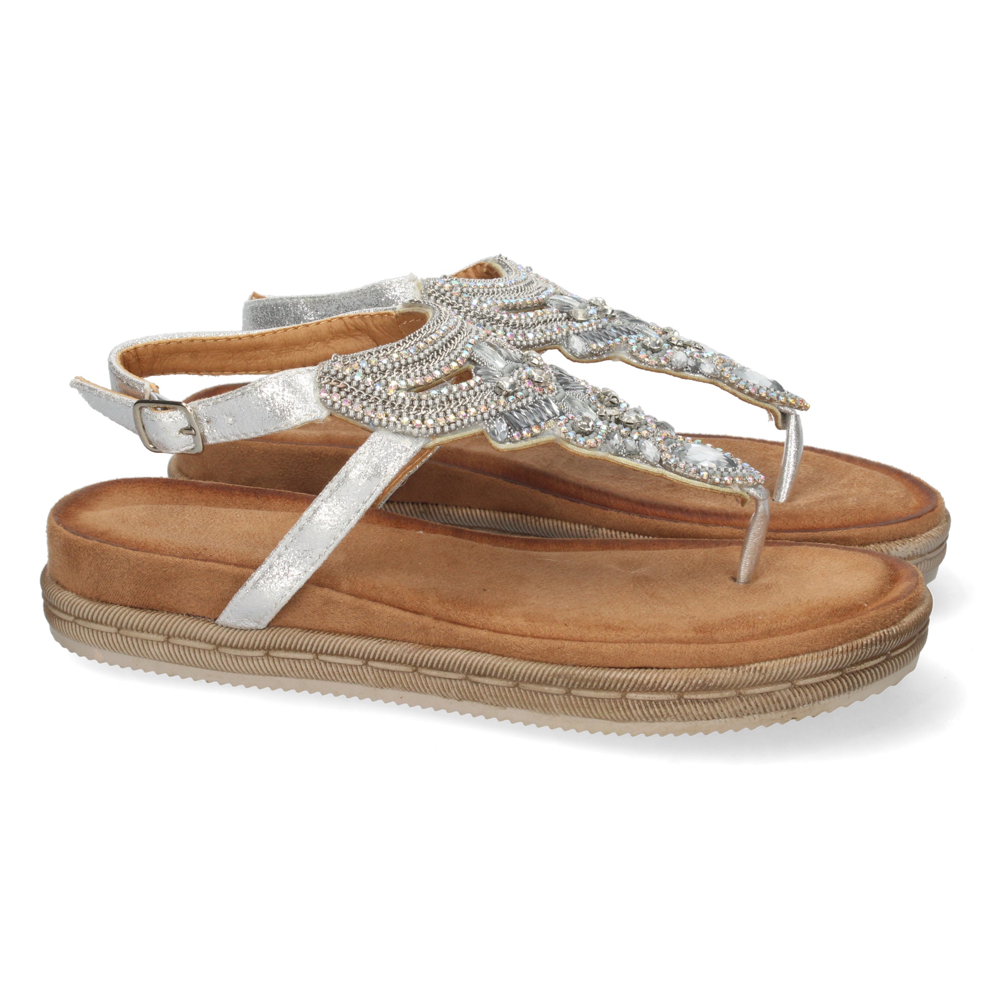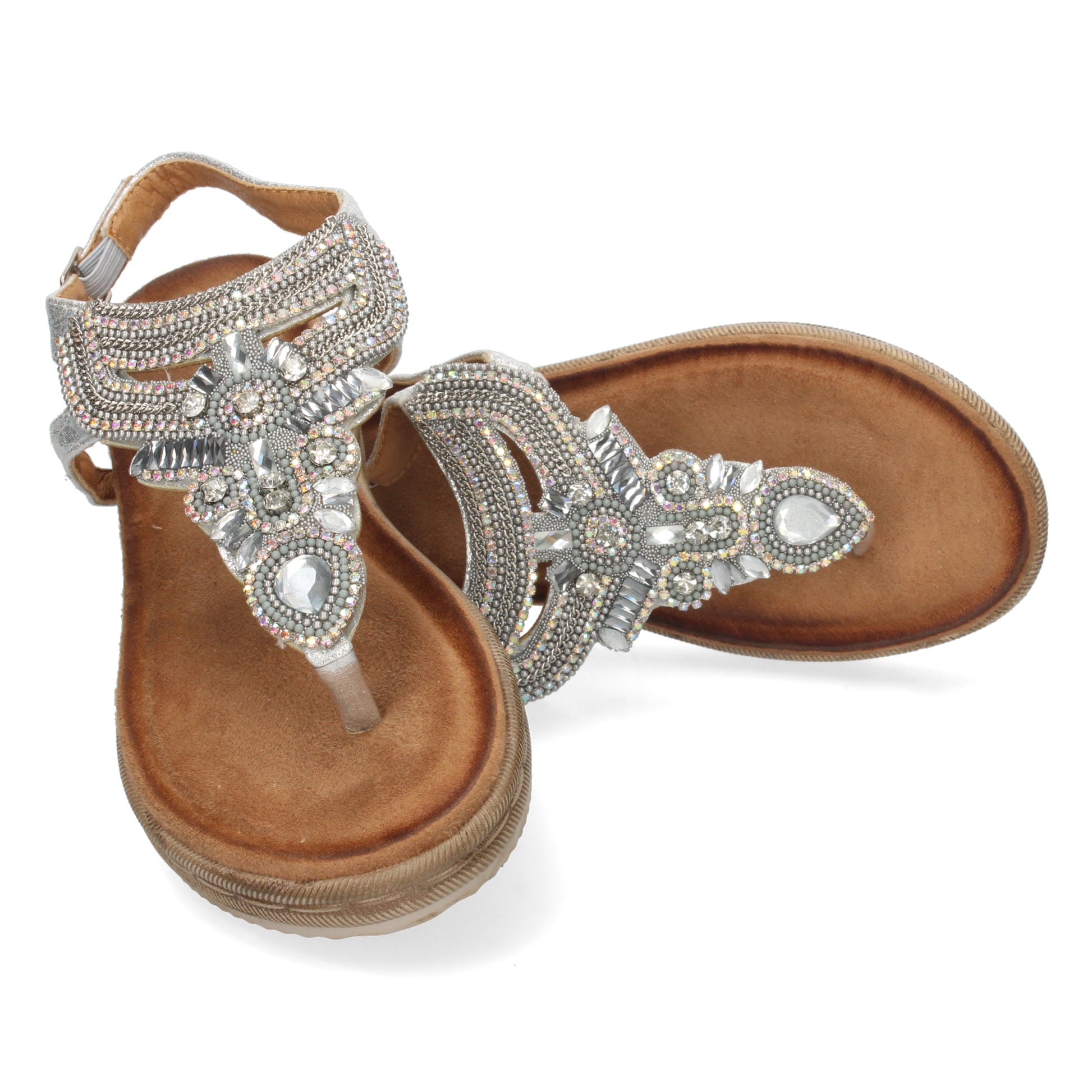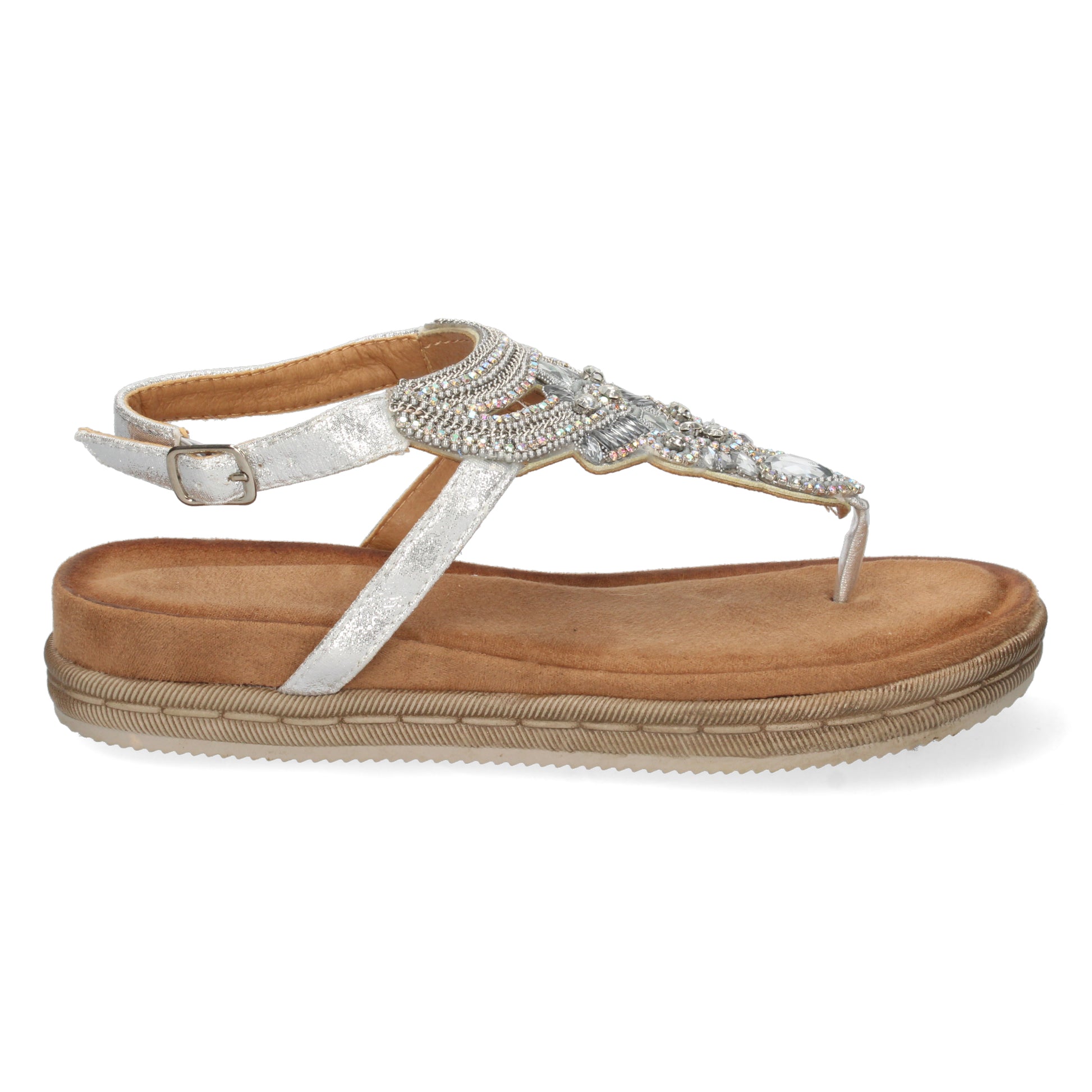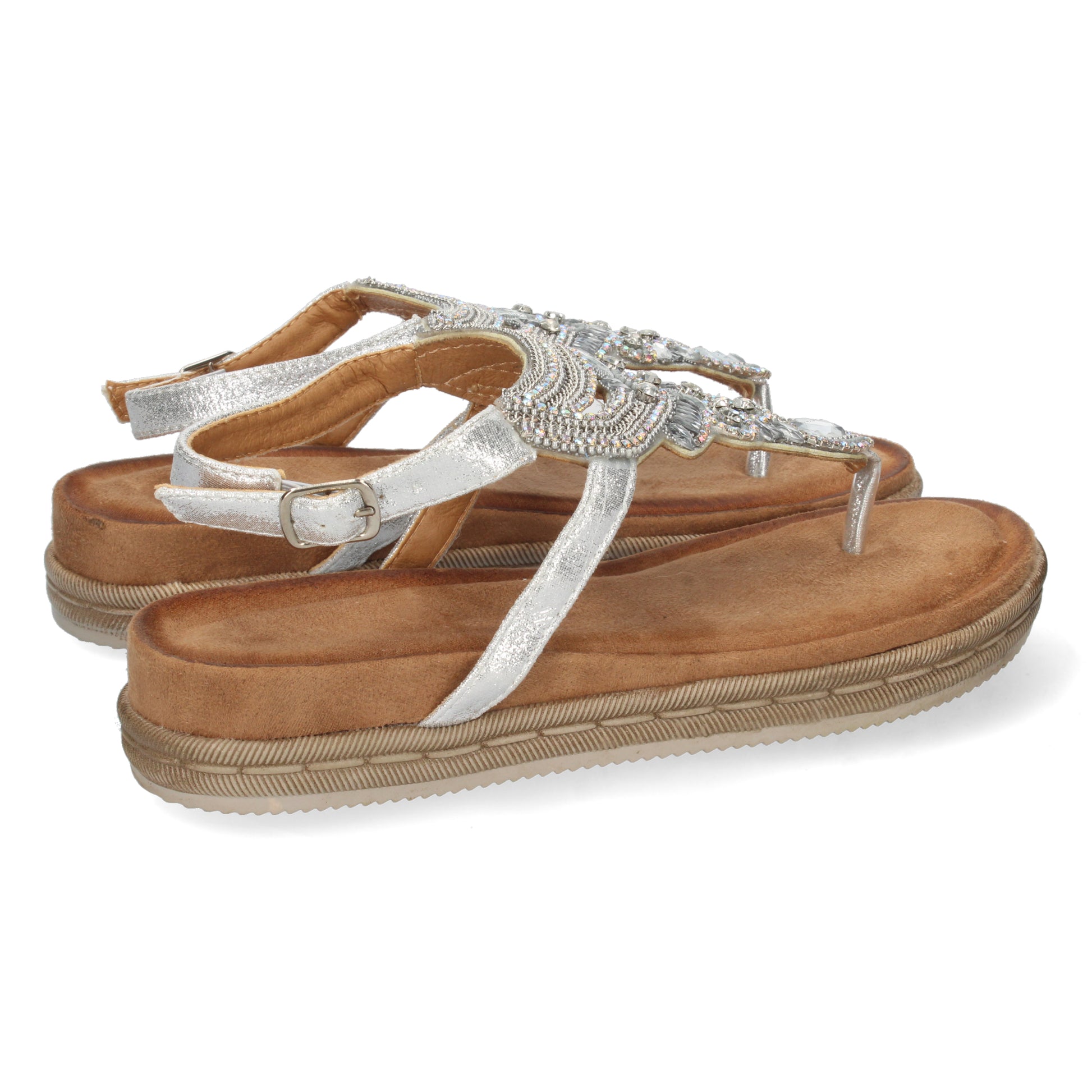Sandalia para Mujer Estilo Esclava con Piedras Brillantes en la Pala y Cierre de Hebilla Primavera Verano 2022