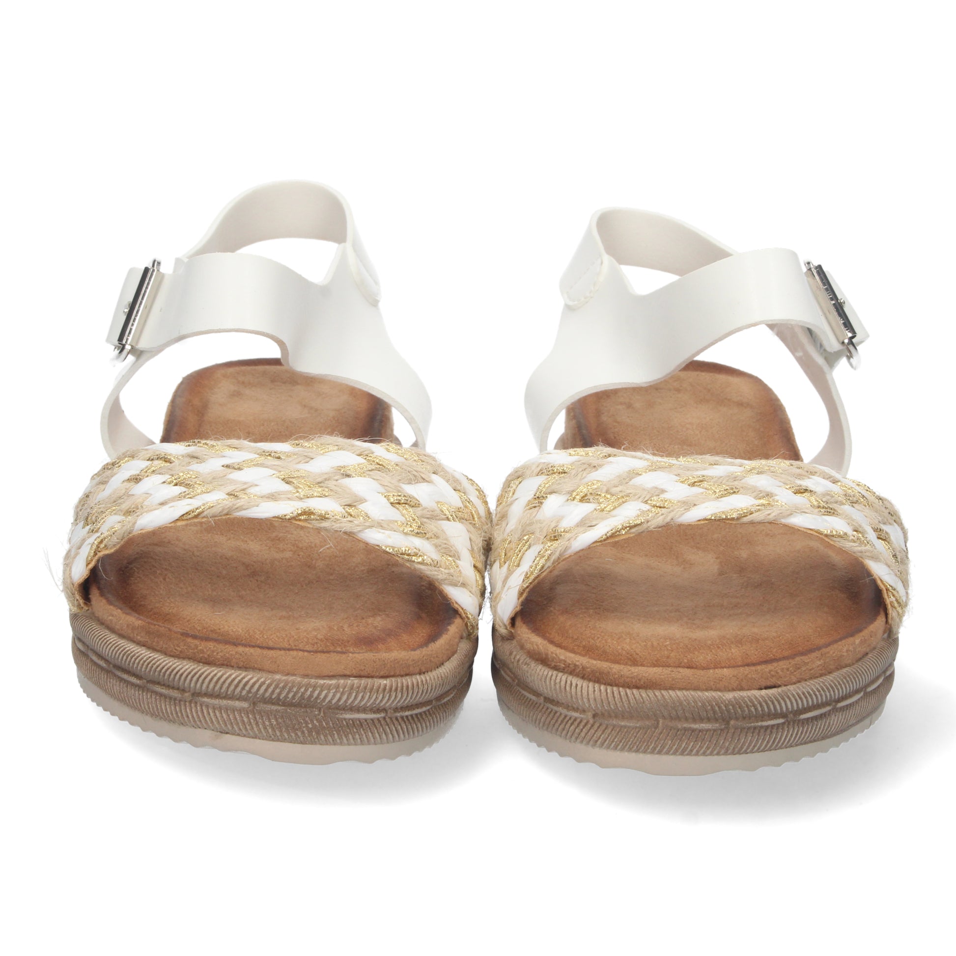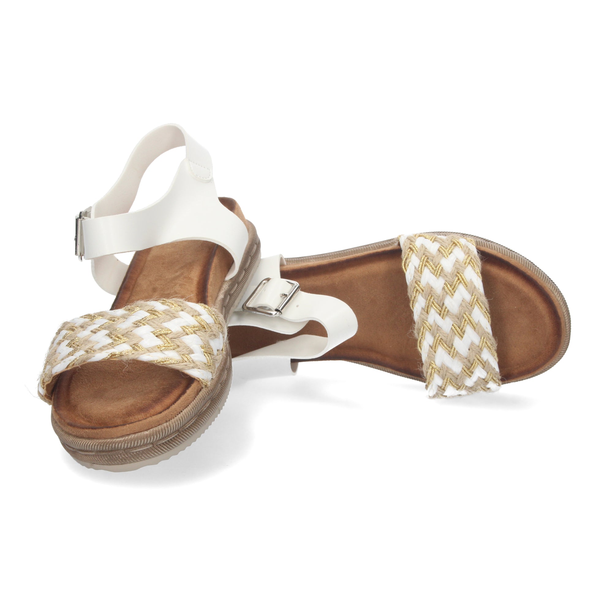 Sandalia Plana para Mujer Comoda con Pala de Rafia Multicolor y Cierre de Hebilla Primavera Verano 2022