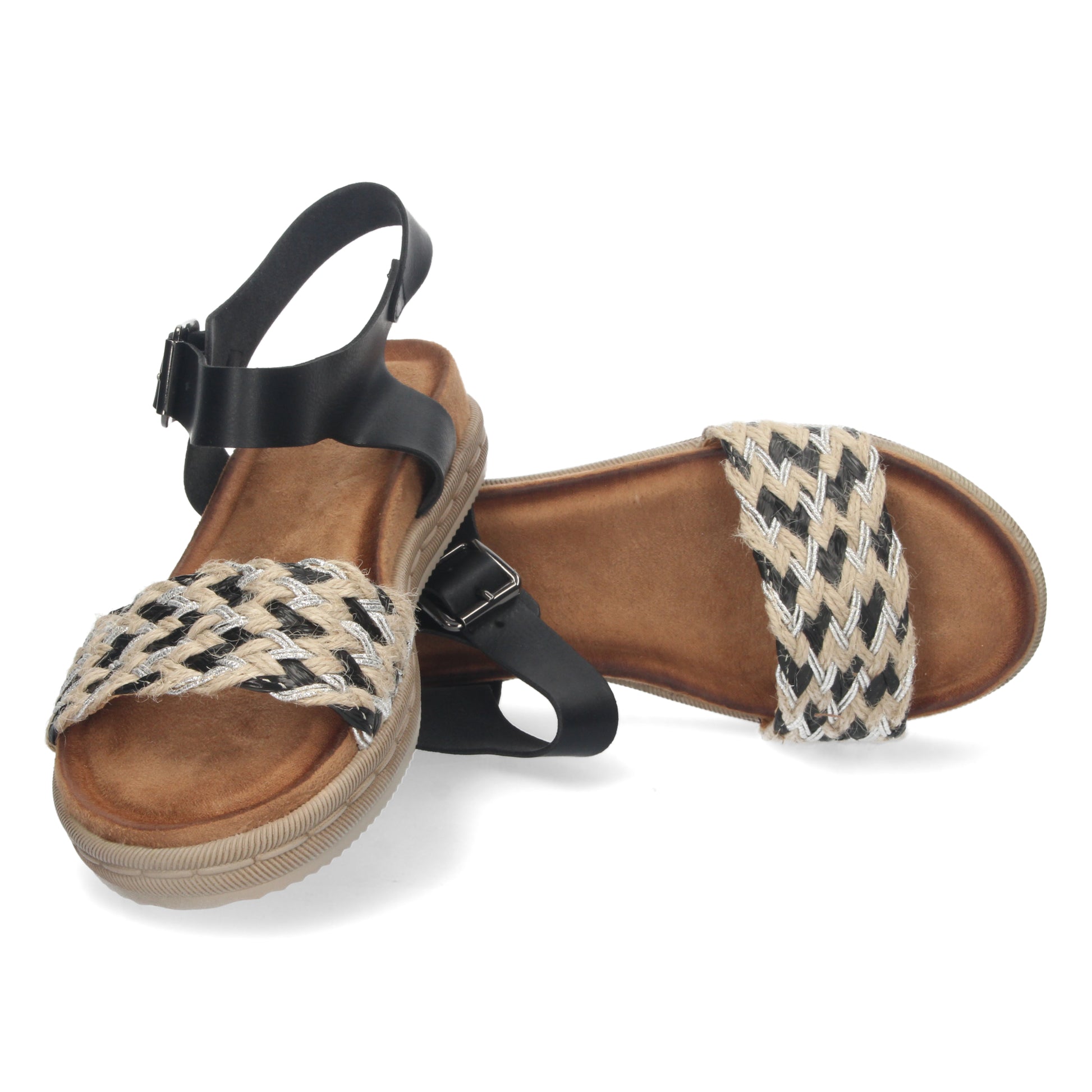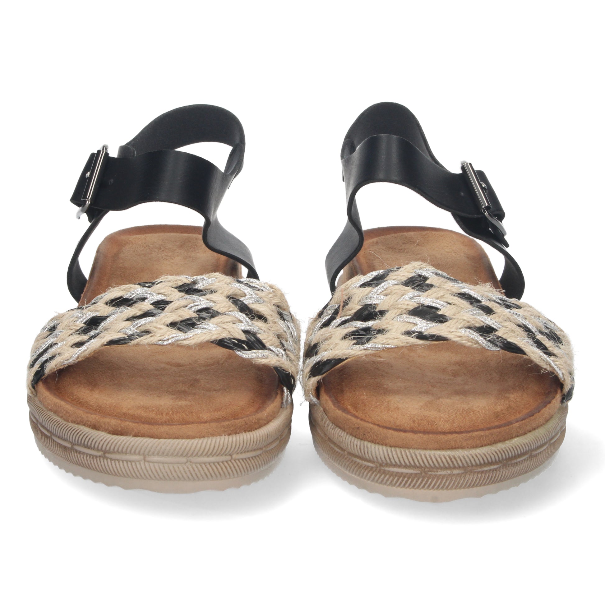 Sandalia Plana para Mujer Comoda con Pala de Rafia Multicolor y Cierre de Hebilla Primavera Verano 2022