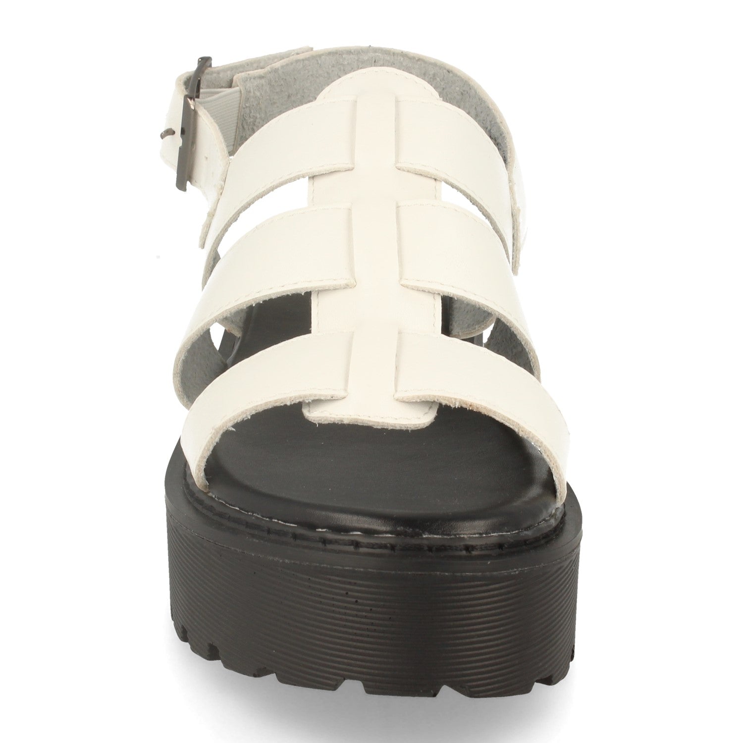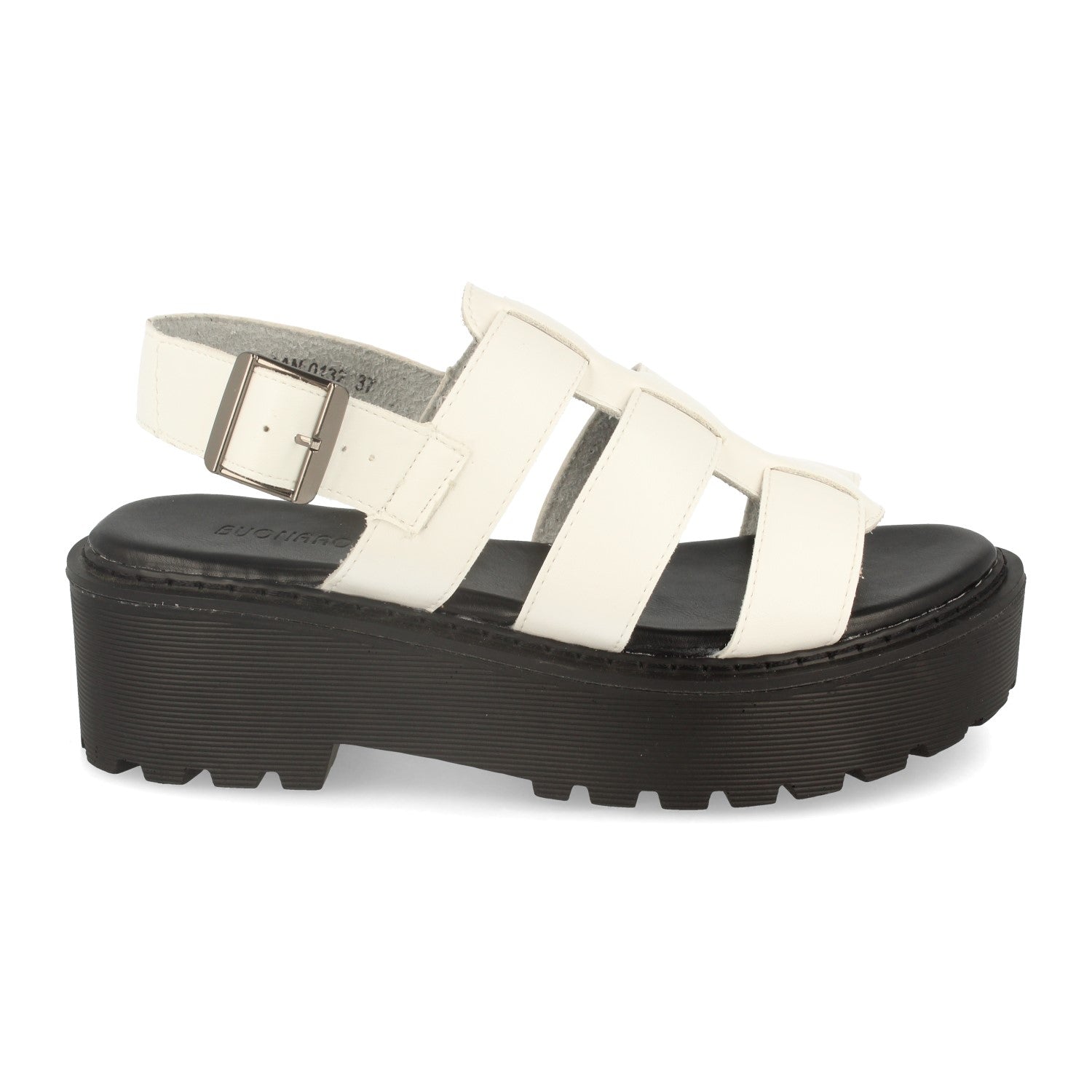 Sandalia de Mujer estilo Cangrejera con Plataforma Puntera Abierta Correa en T y Hebilla. Primavera Verano 2020.