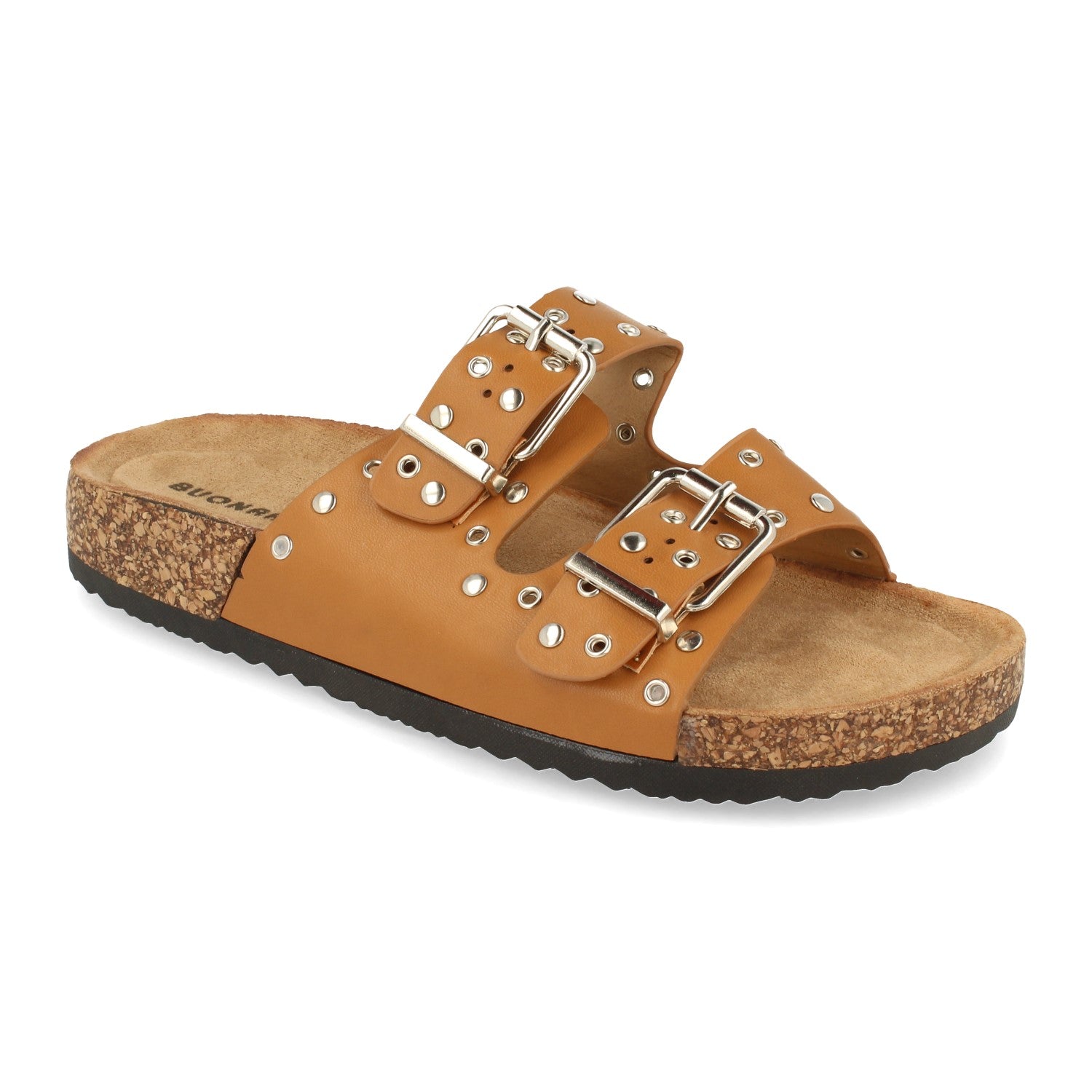 Sandalia Plana para Mujer Comodas Planta Anatomica con Tachas y Hebillas en la Pala Primavera Verano 2021