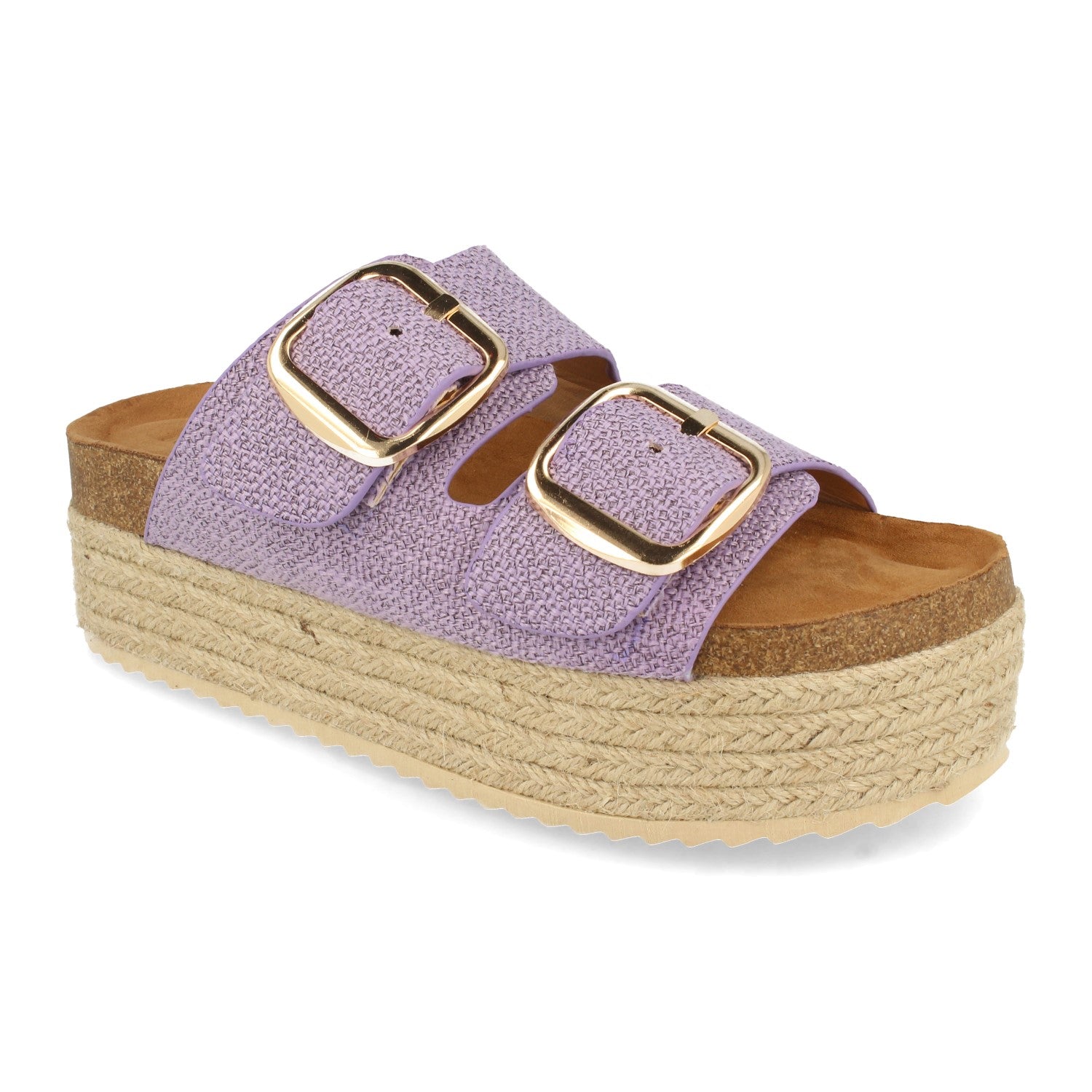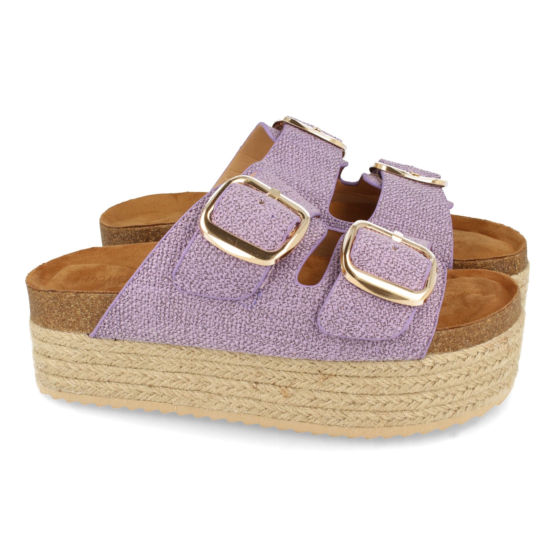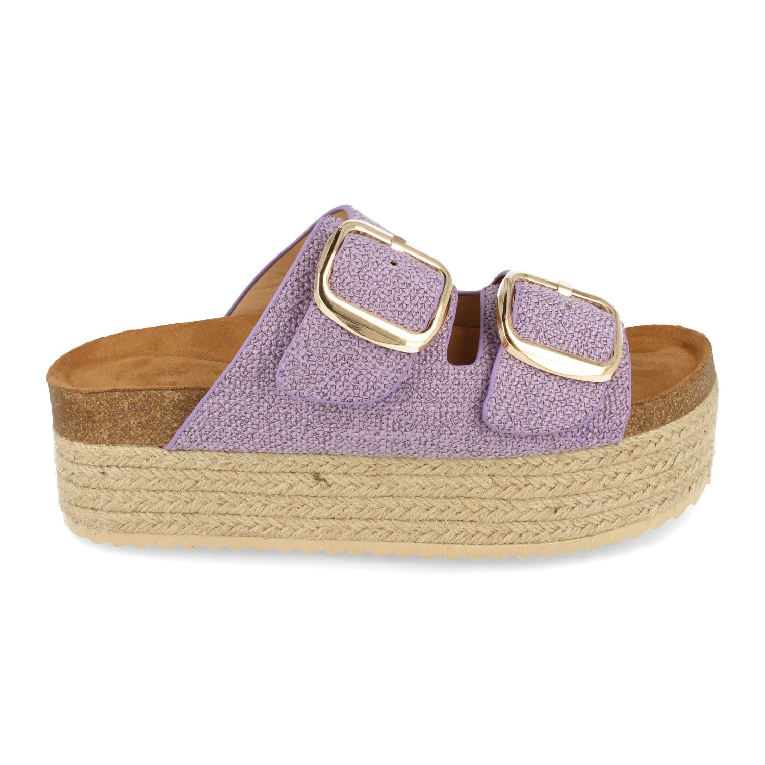 Sandalia de Plataforma para Mujer Forrado de Yute con Planta Anatomica y Hebillas en la Pala de Rafia Primavera Verano 2021