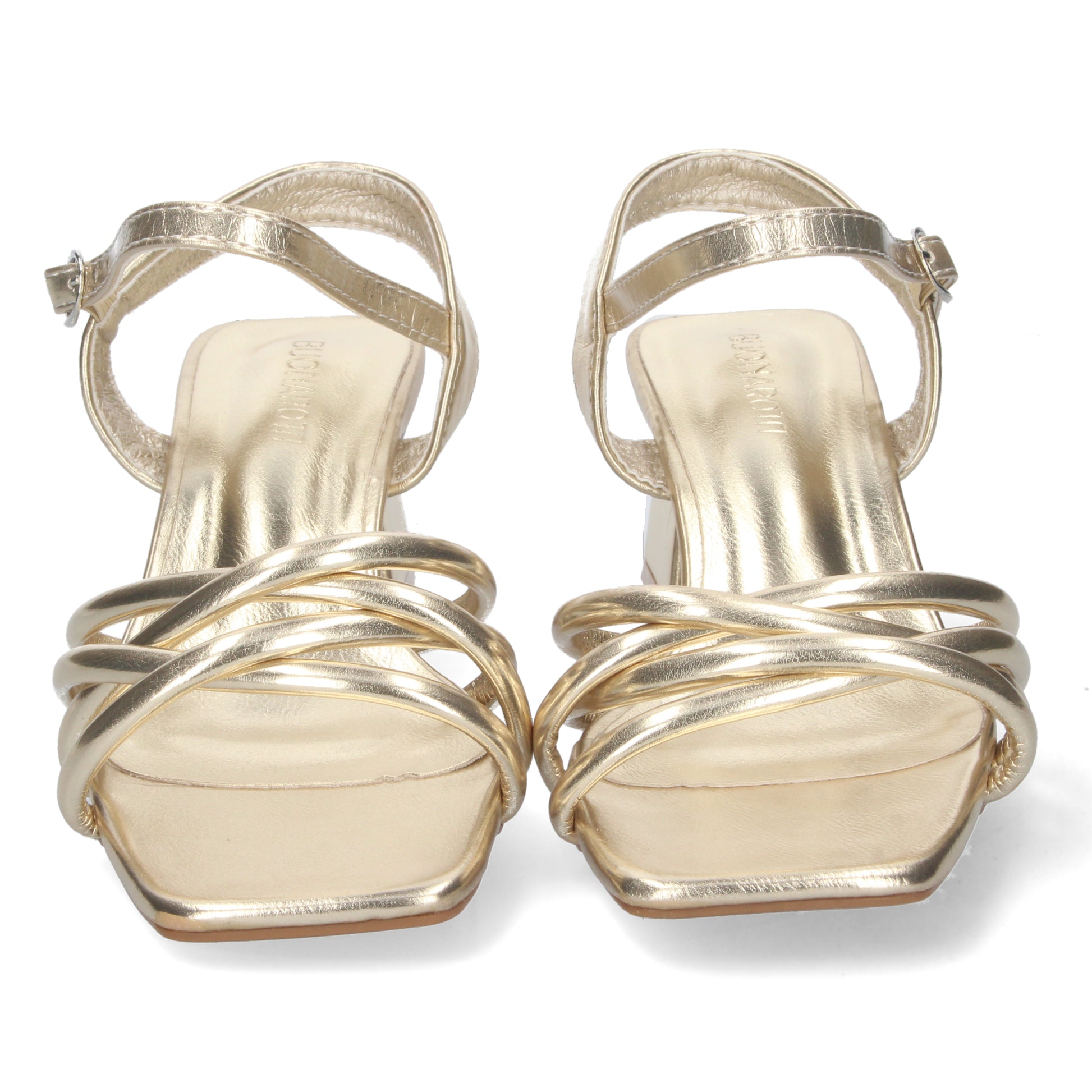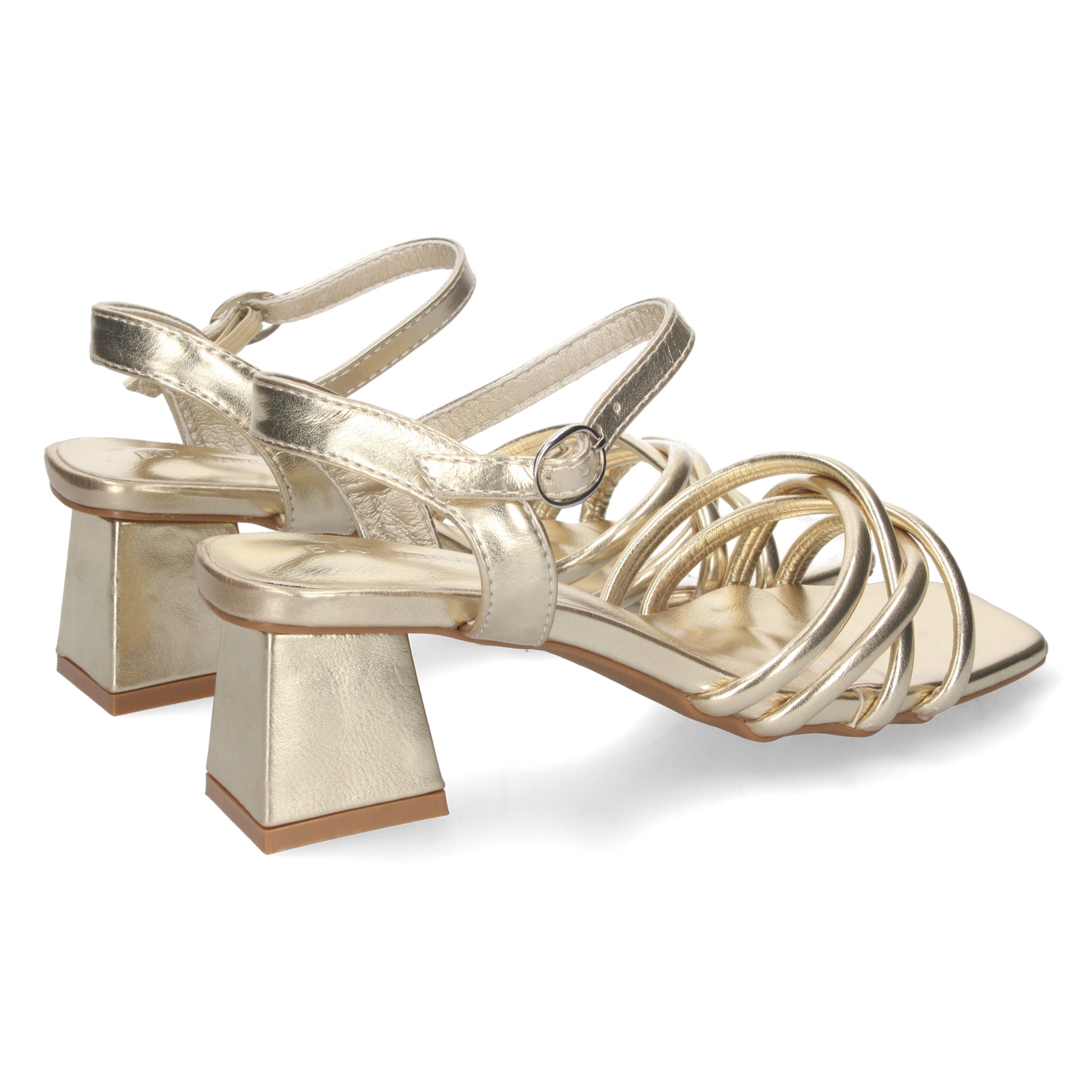 Sandalia de Tacón para Mujer con Palas Finas Cruzadas Tacón Cuadrado y Cierre de Hebilla Primavera Verano 2022