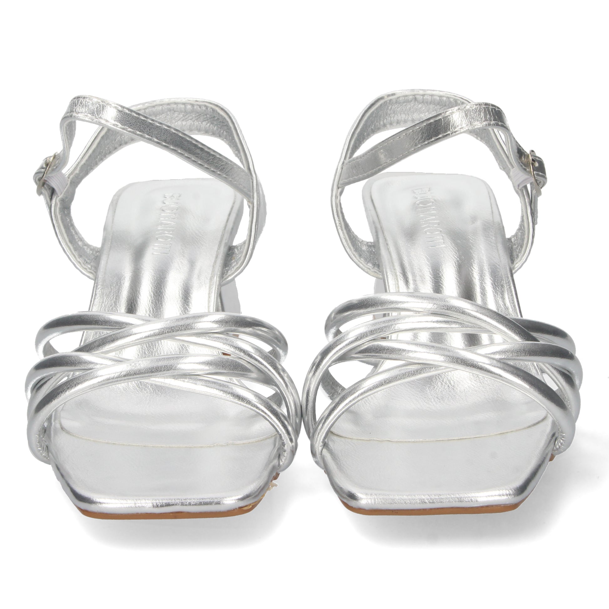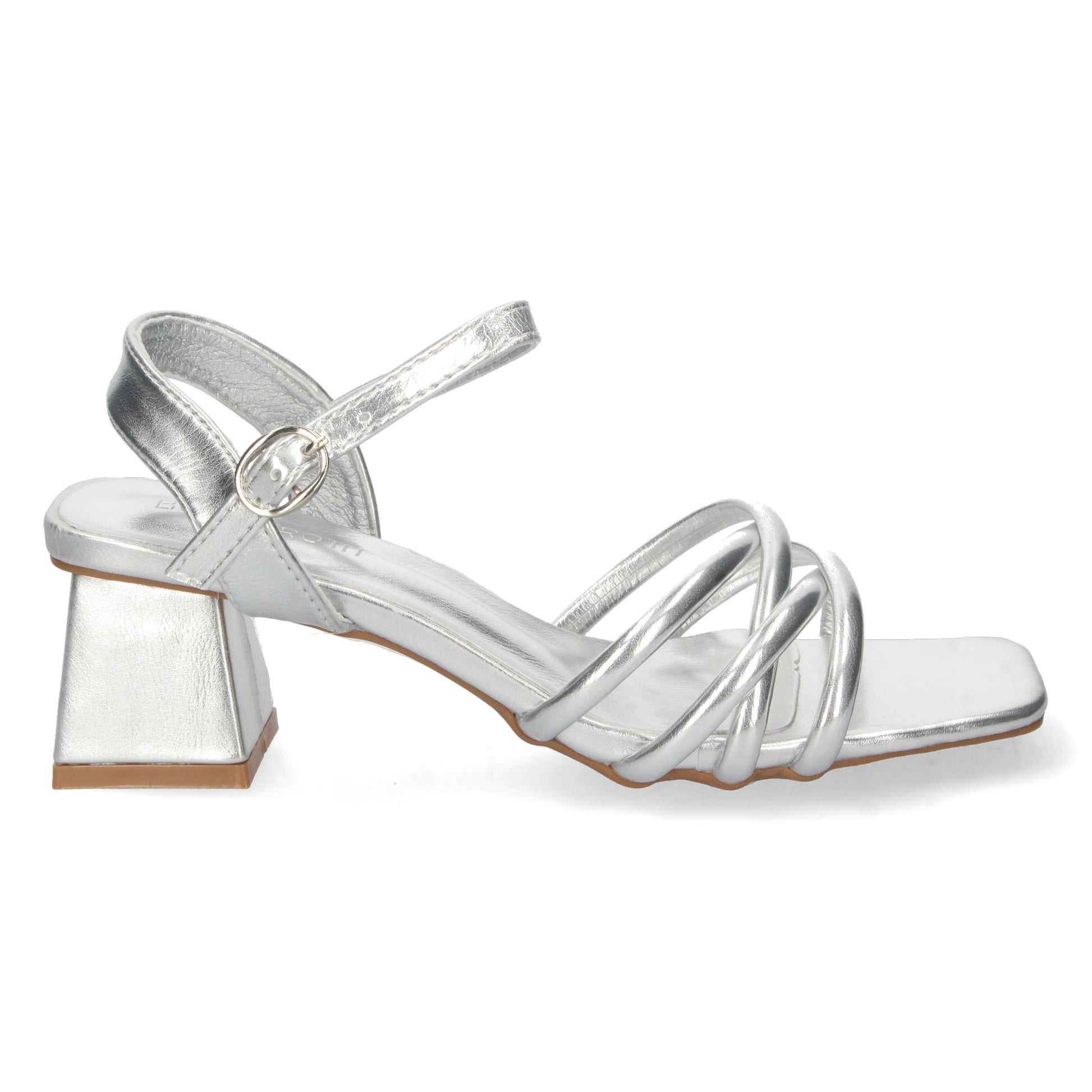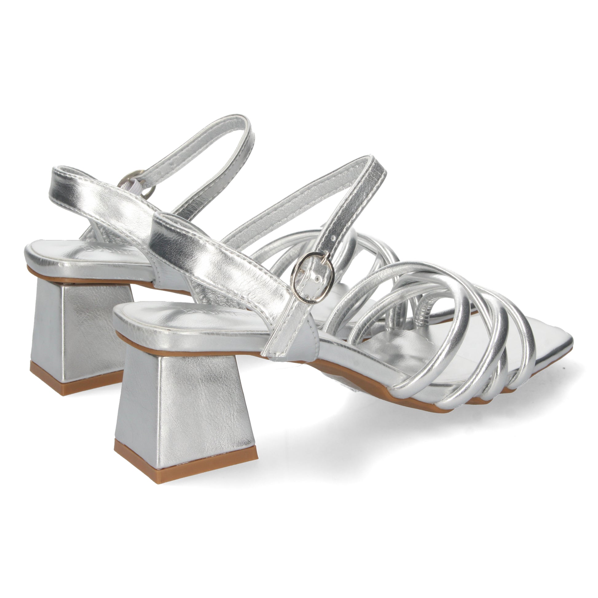 Sandalia de Tacón para Mujer con Palas Finas Cruzadas Tacón Cuadrado y Cierre de Hebilla Primavera Verano 2022