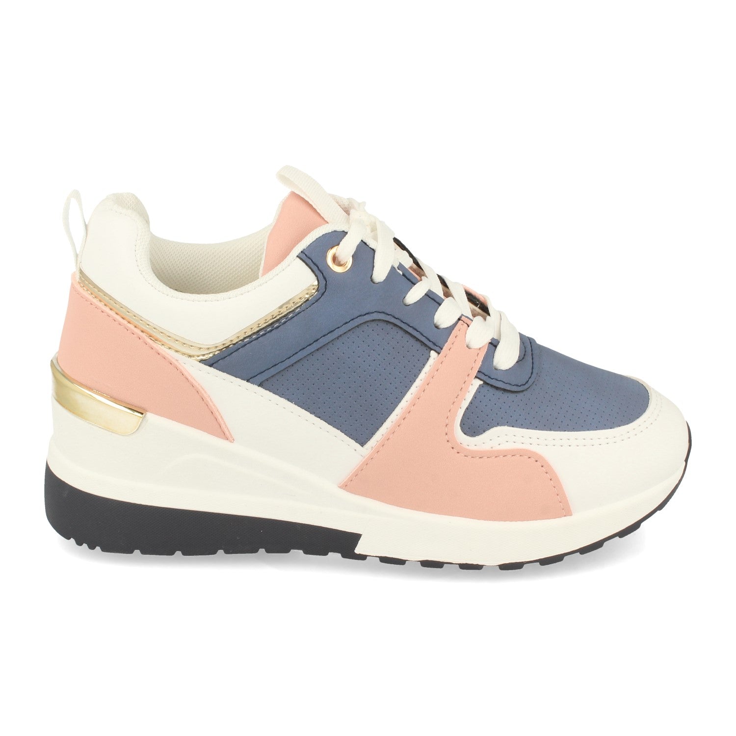 Zapatilla de Cuña para Mujer Comodas con Detalle Metalico en el Talón y Cierre de Cordones Primavera Verano 2021