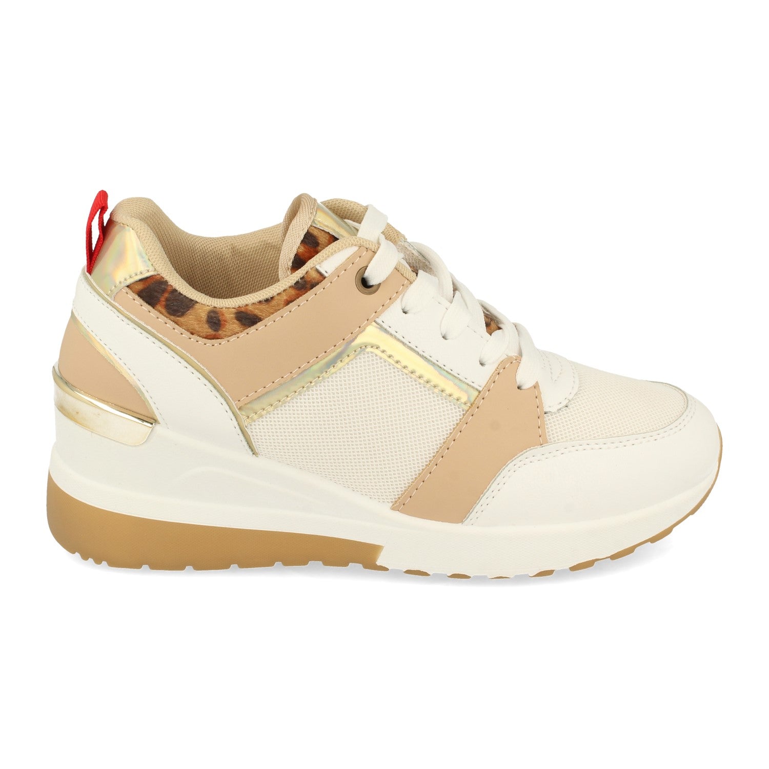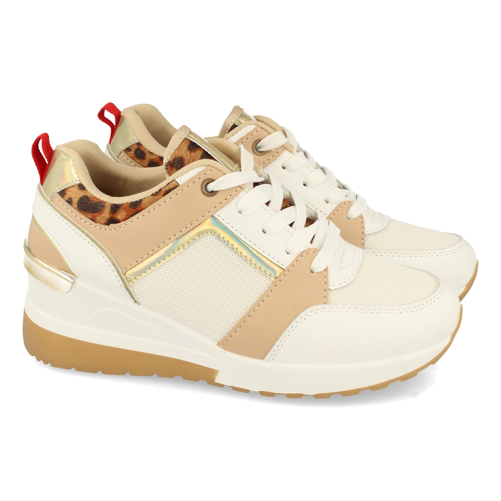 Zapatilla de Cuña para Mujer Comodas con Detalle Metalico en el Talón Estampado Multicolor y Cierre de Cordones Primavera Verano 2021