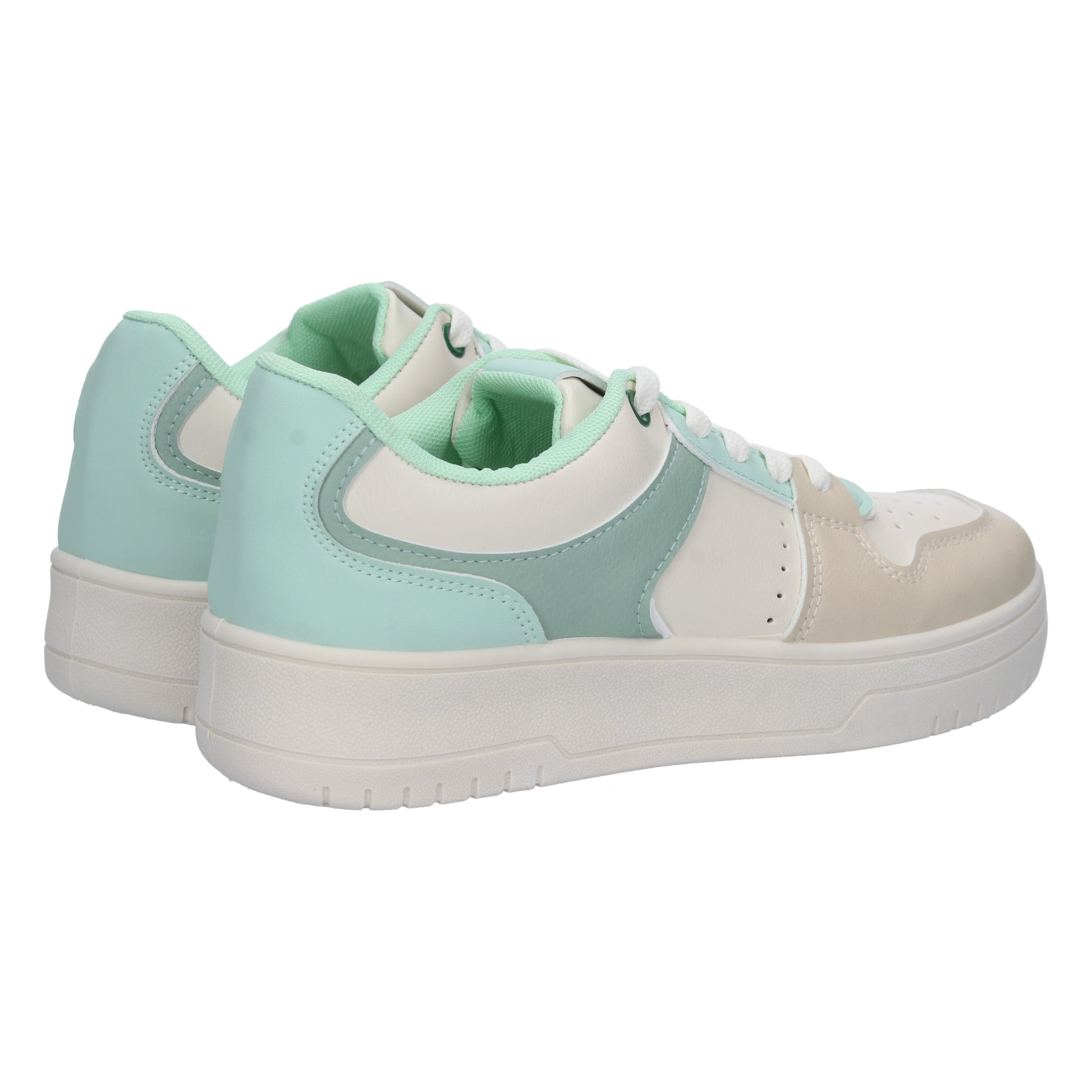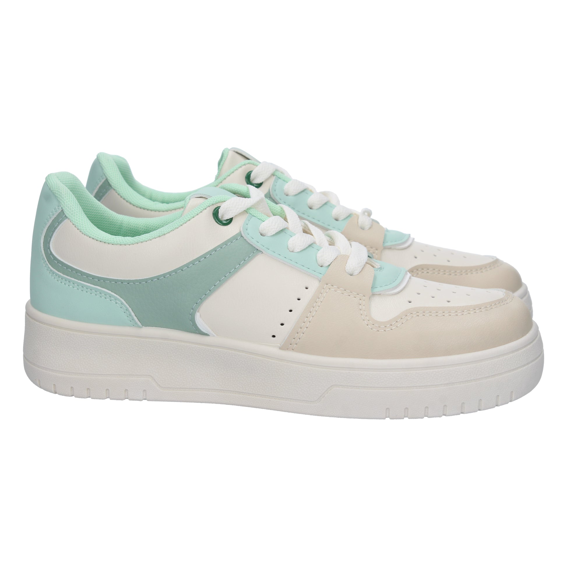 Deportiva plana para mujer con cierre de cordones y colores claros. Temporada otoño invierno 2023