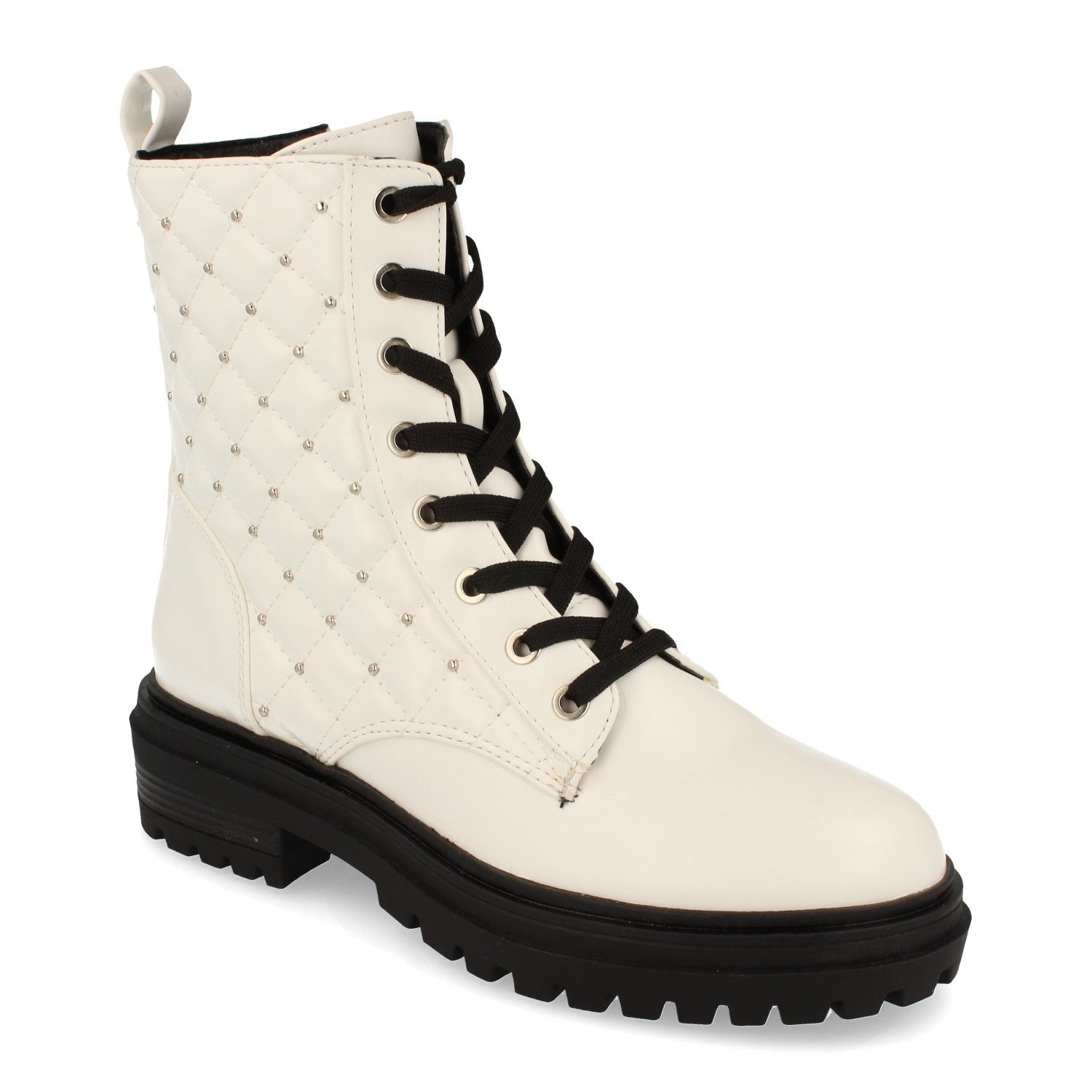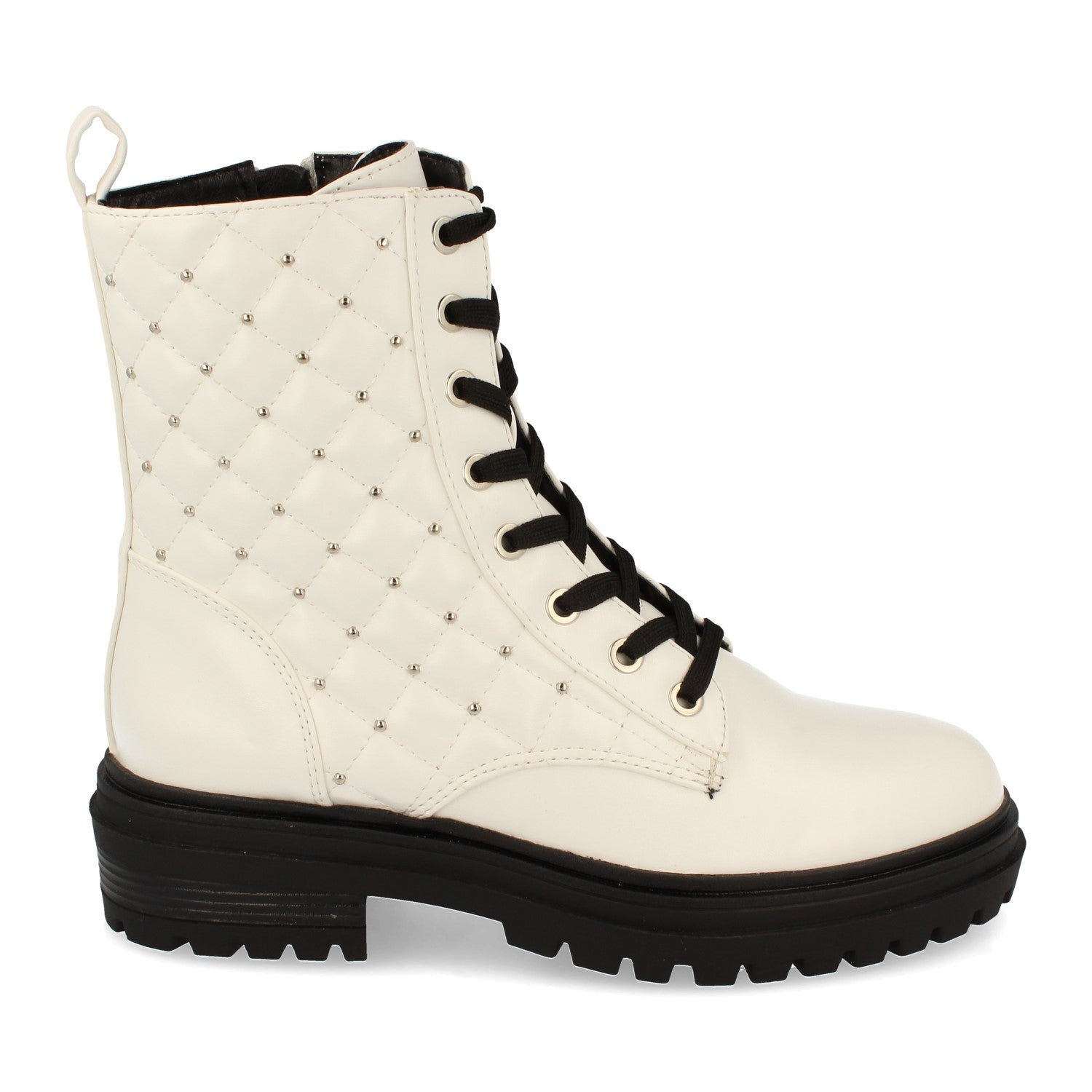Botín de Mujer Suela Plana con Estampado Acolchado y Piedras de Strass Cierre de Cordones y Cremallera Otoño Invierno 2020