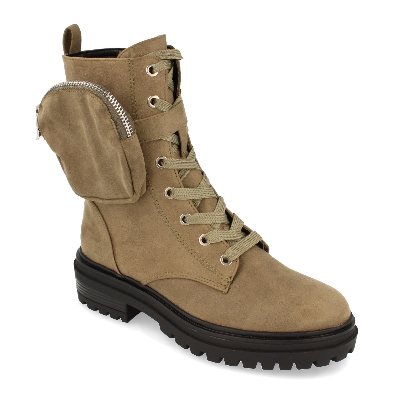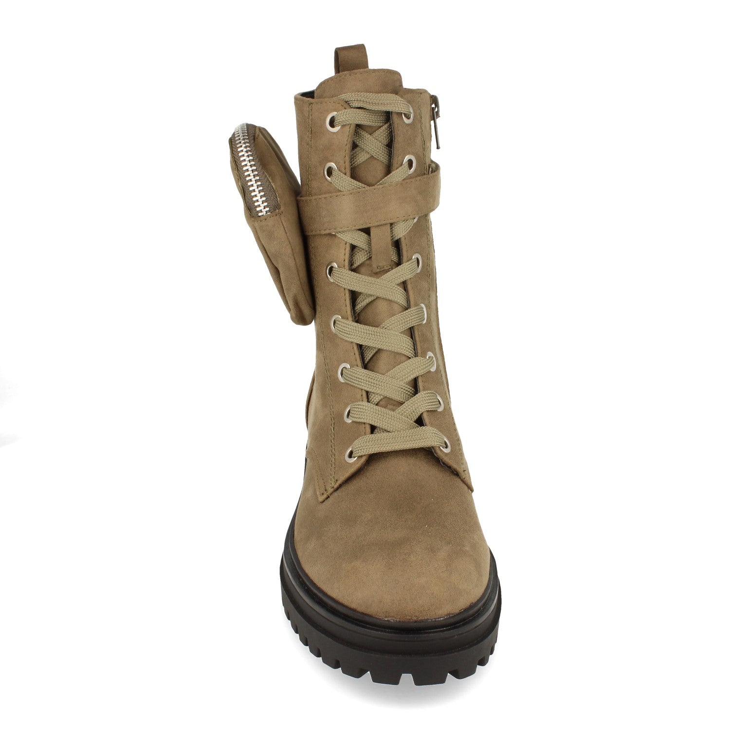 Botín Plano de Mujer con Bolso de Quita y Pon Estampado Liso y Cierre de Cordones Otoño Invierno 2020