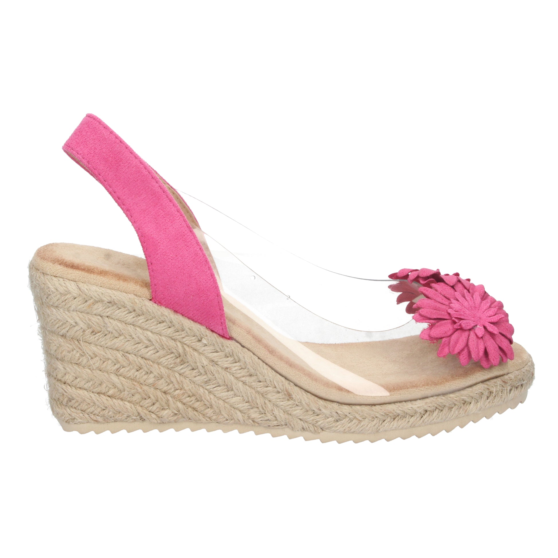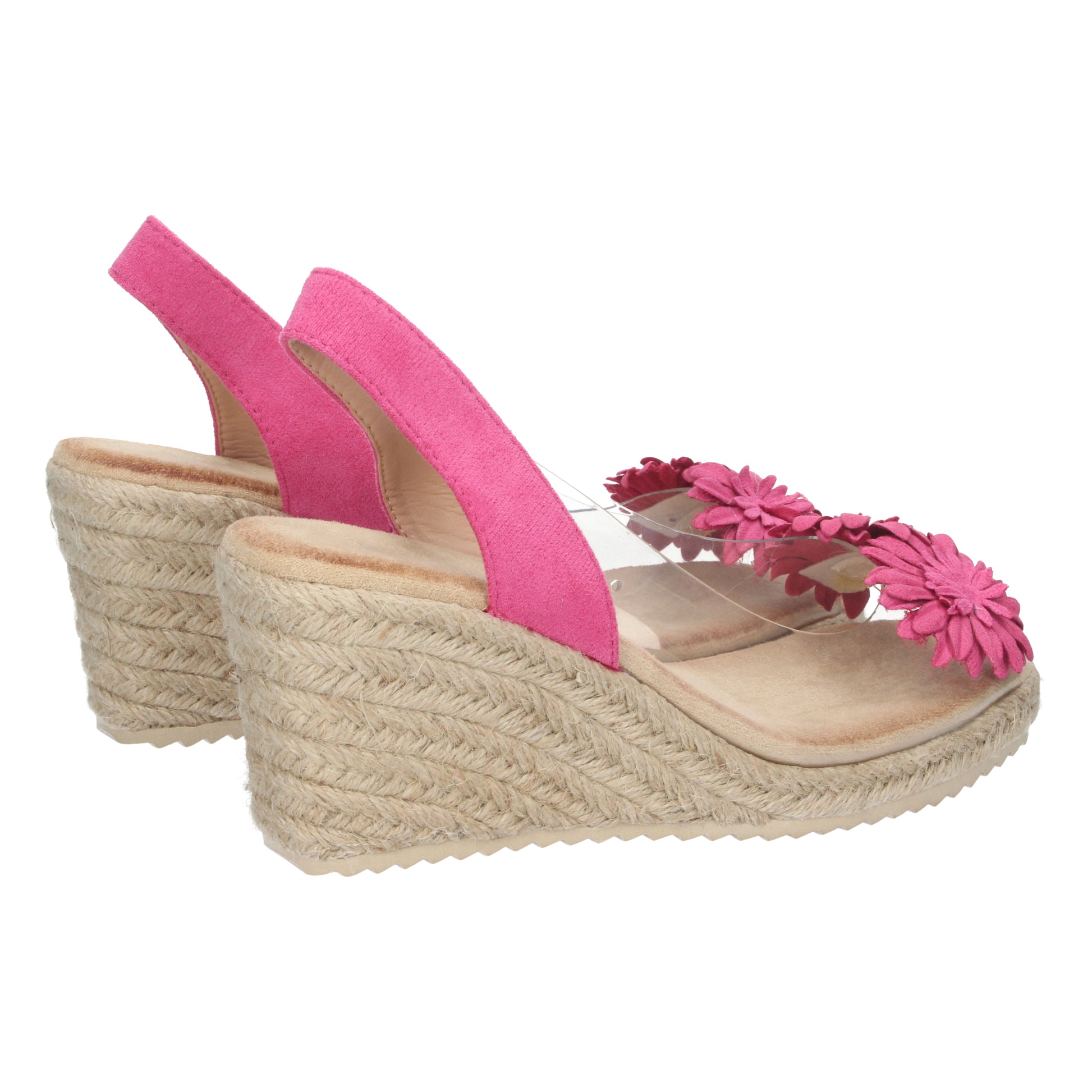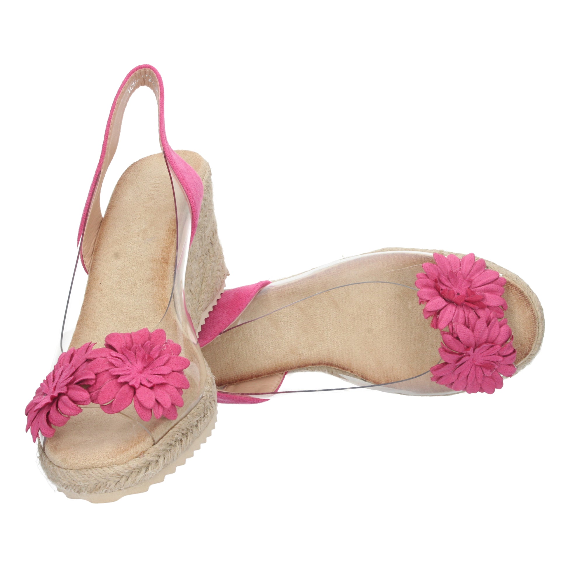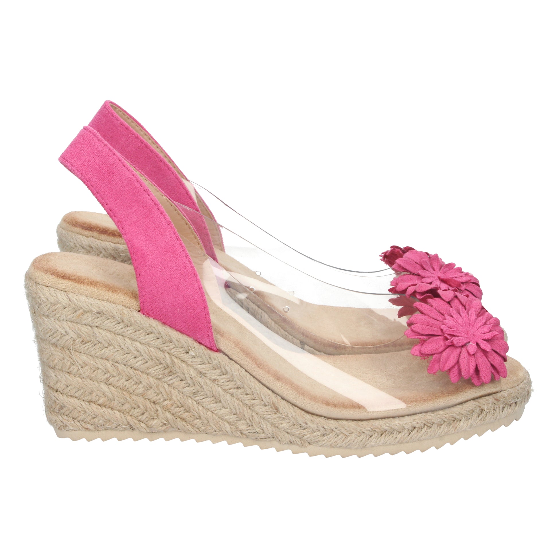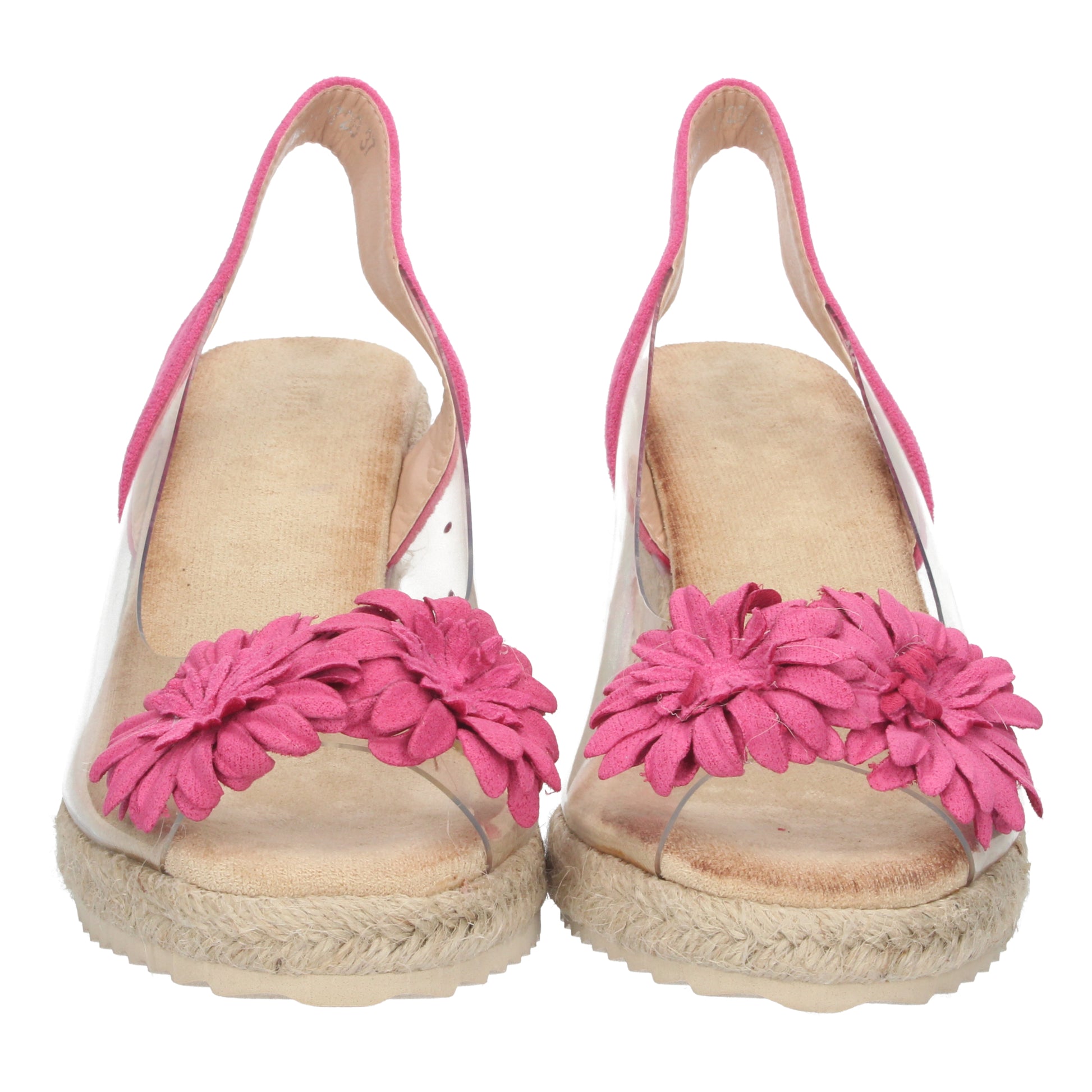 Sandalia de Cuña para Mujer Forrada de Yute con Flores en la Pala y Vinilo Transparente en los Laterales Primavera Verano 2022