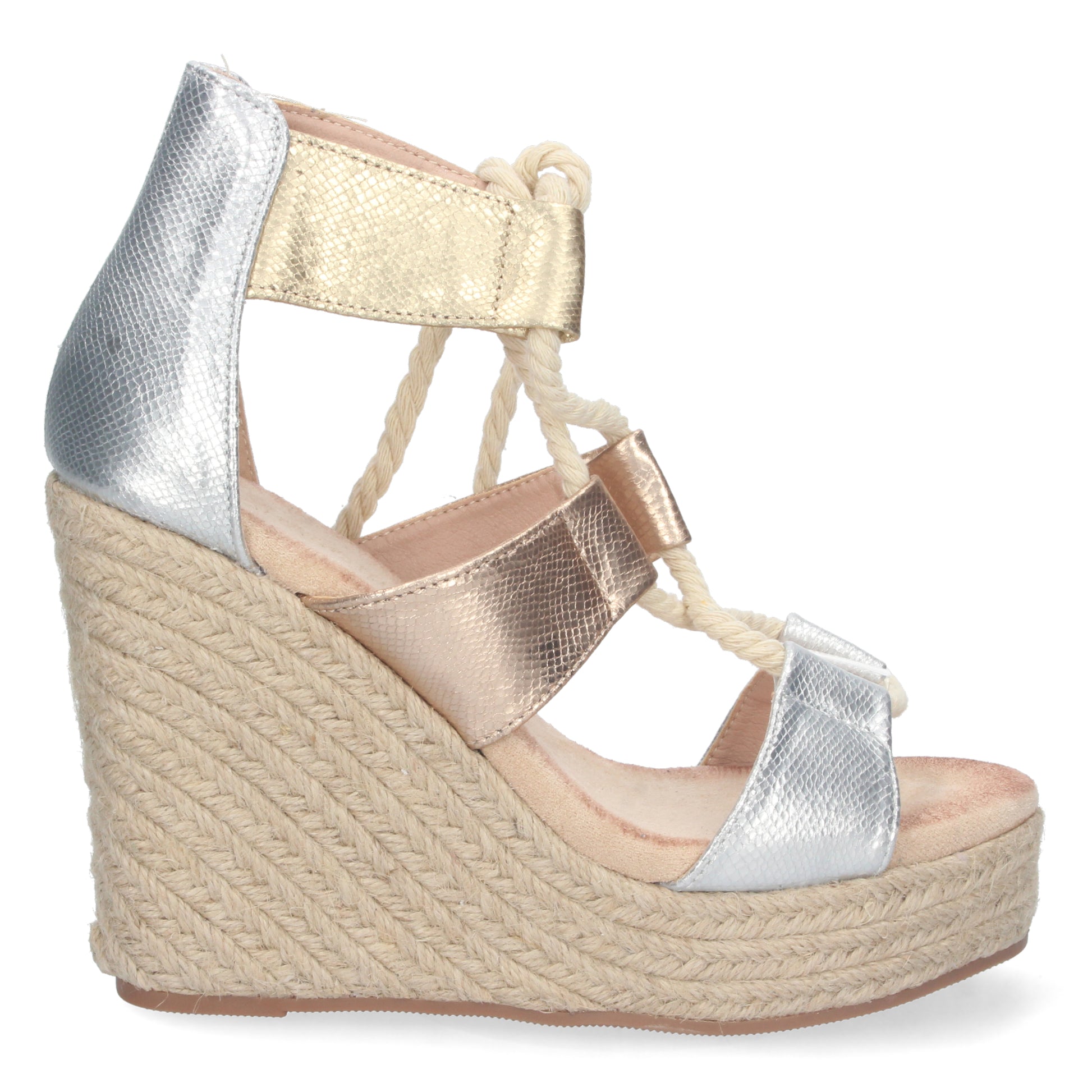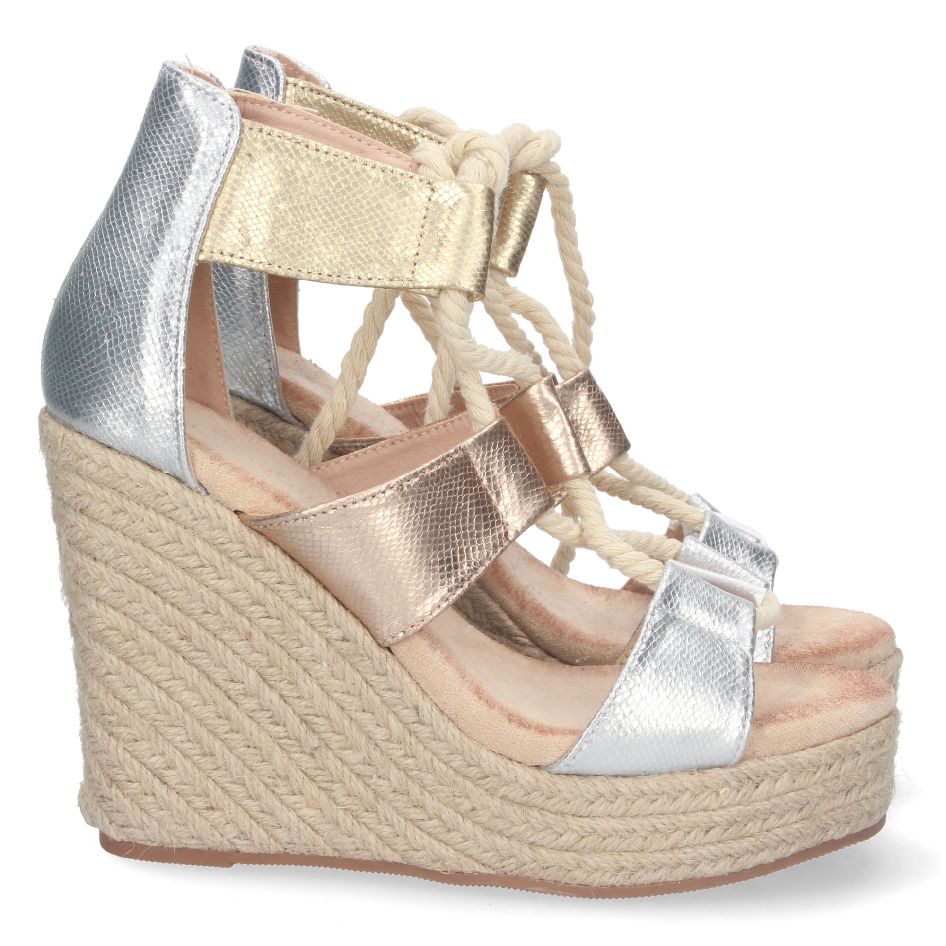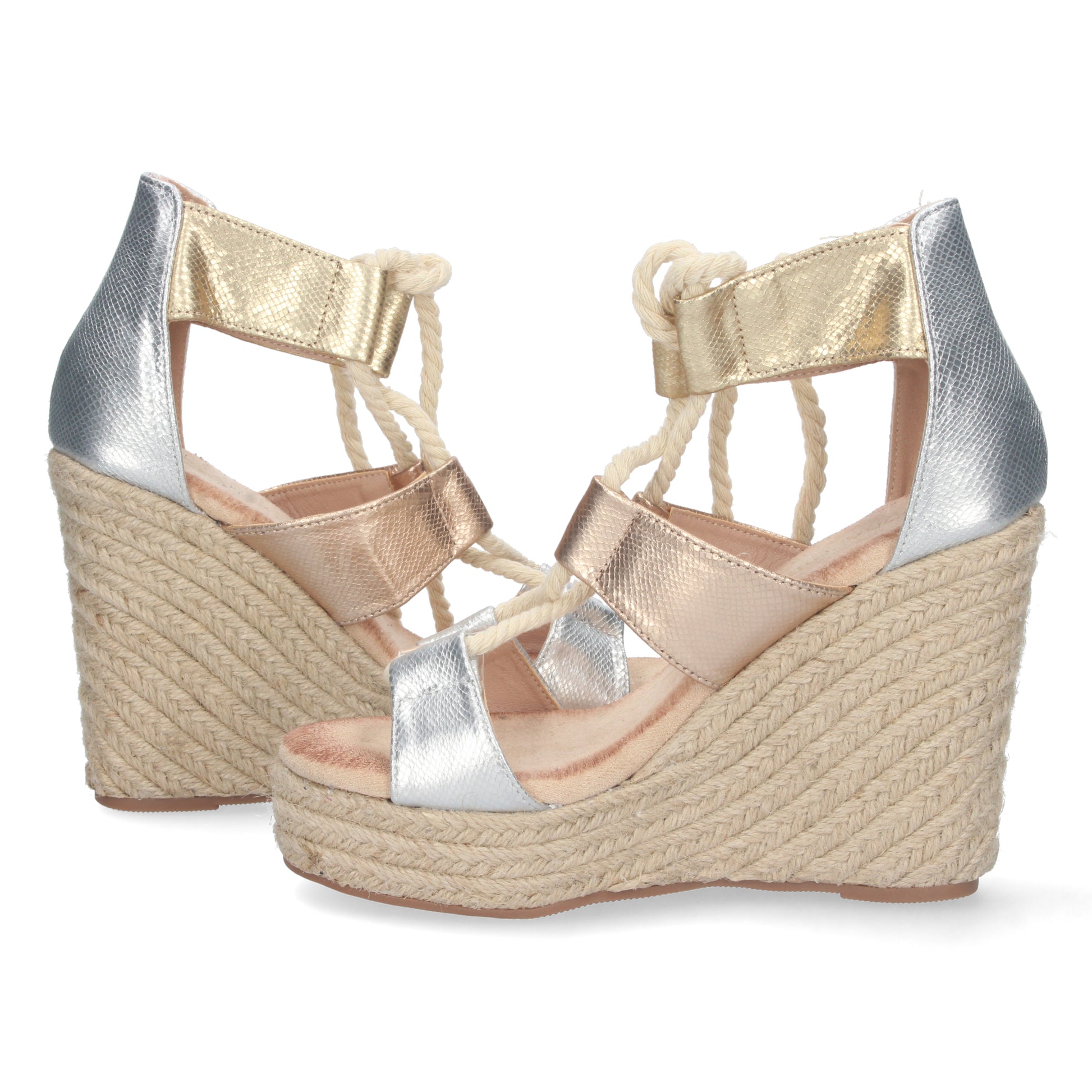 Sandalia de Cuña para Mujer Forrada de Yute con Cierre de Cordones Entrelazados Primavera Verano 2023