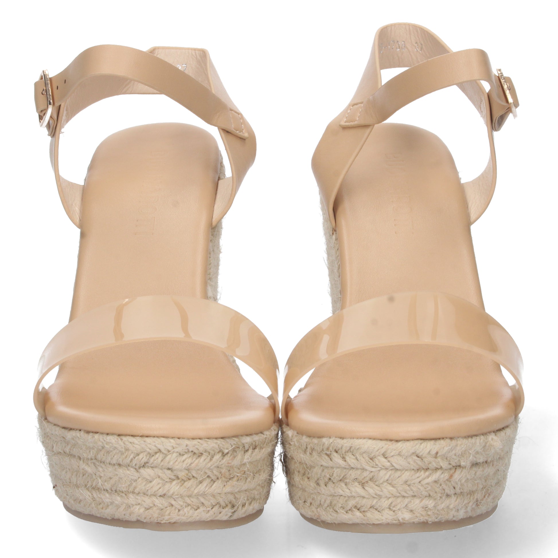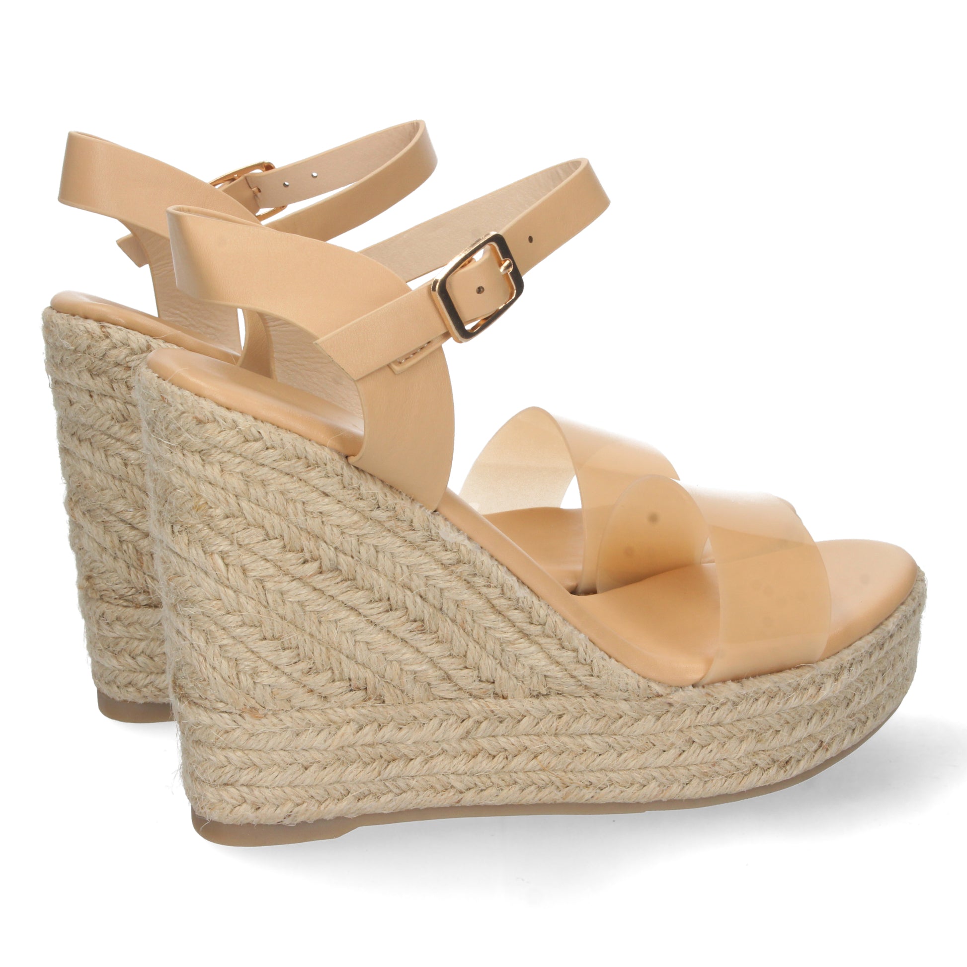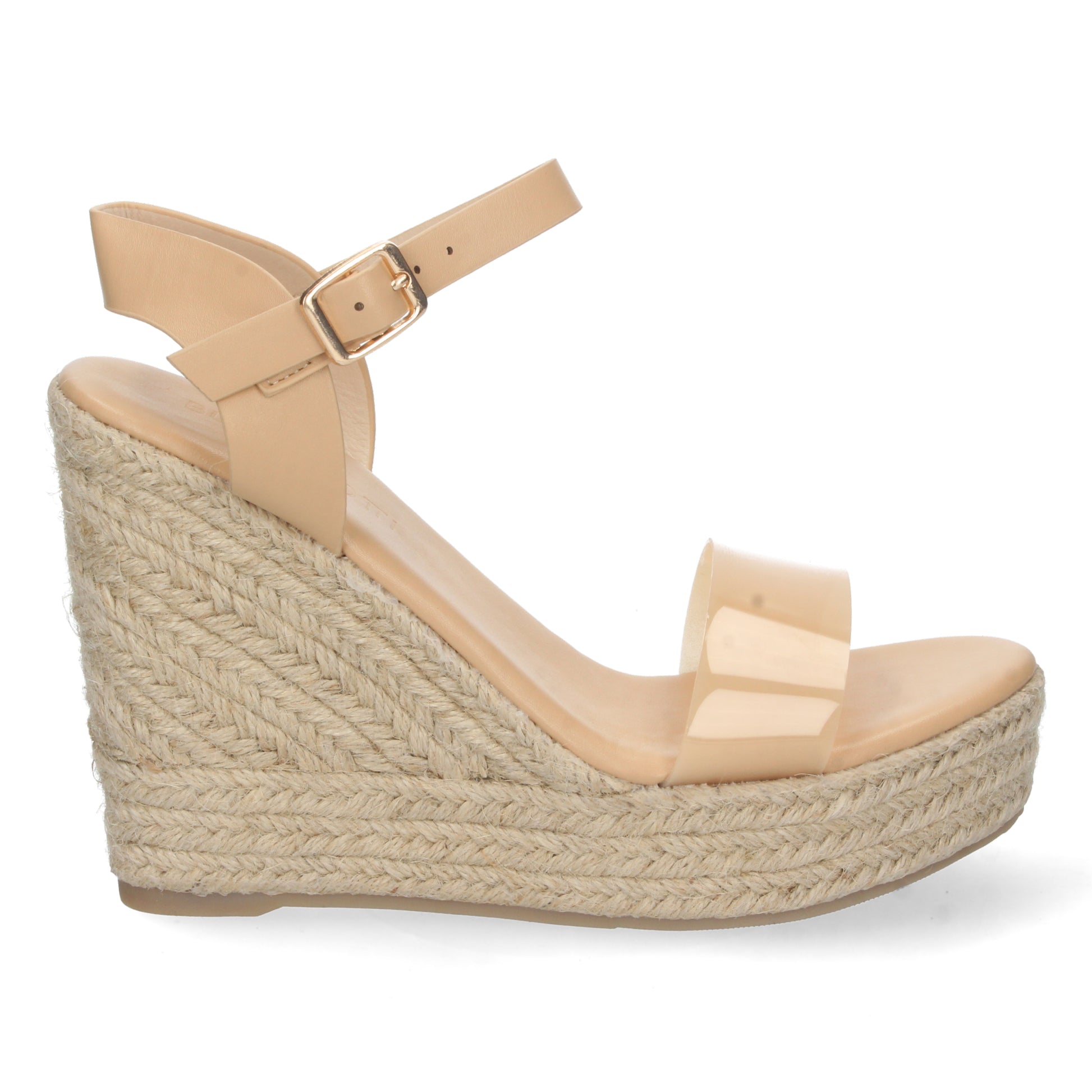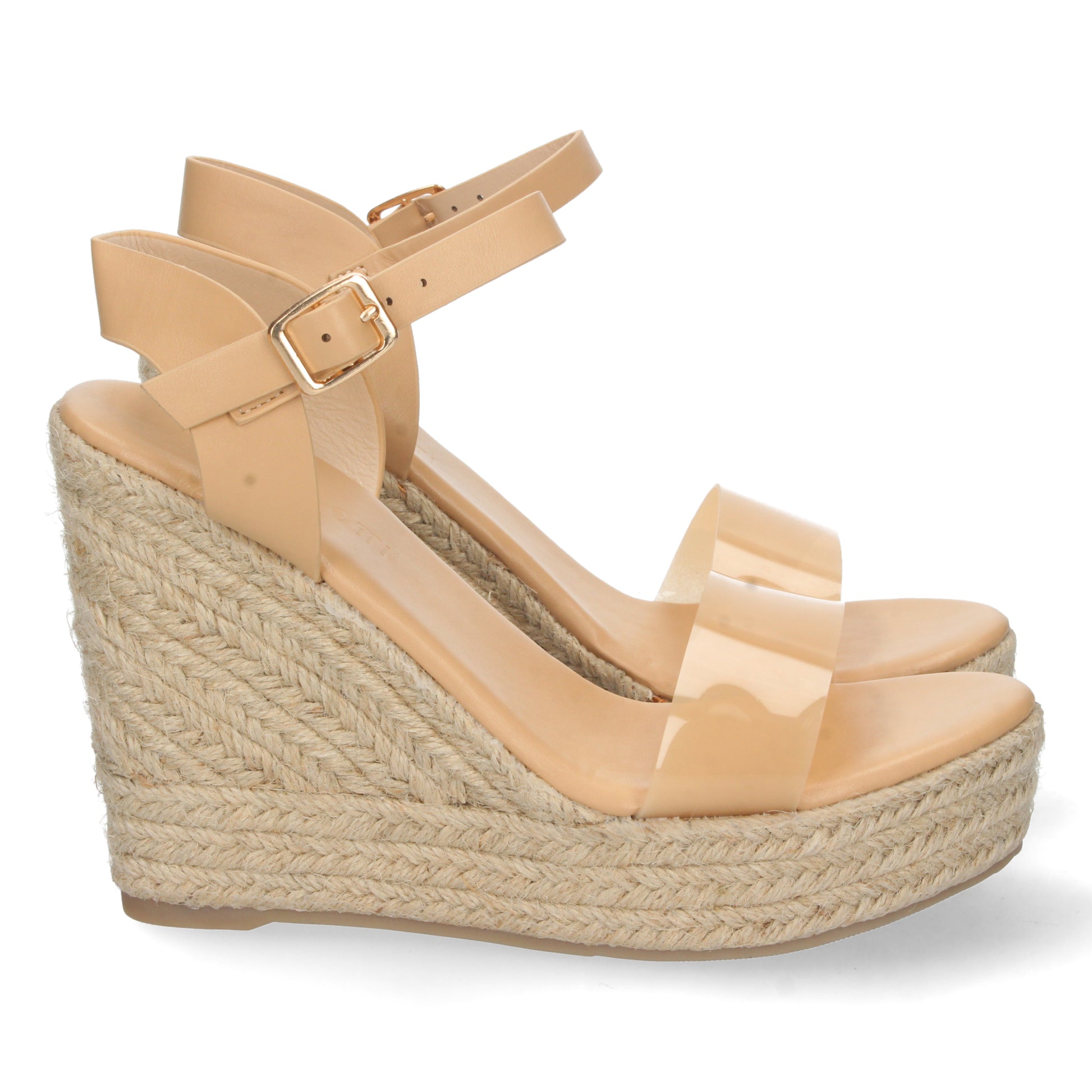Sandalia de Cuña para Mujer Forrada de Yute Pintado Pala de Vinilo Transparente y Cierre de Hebilla Primavera Verano 2022