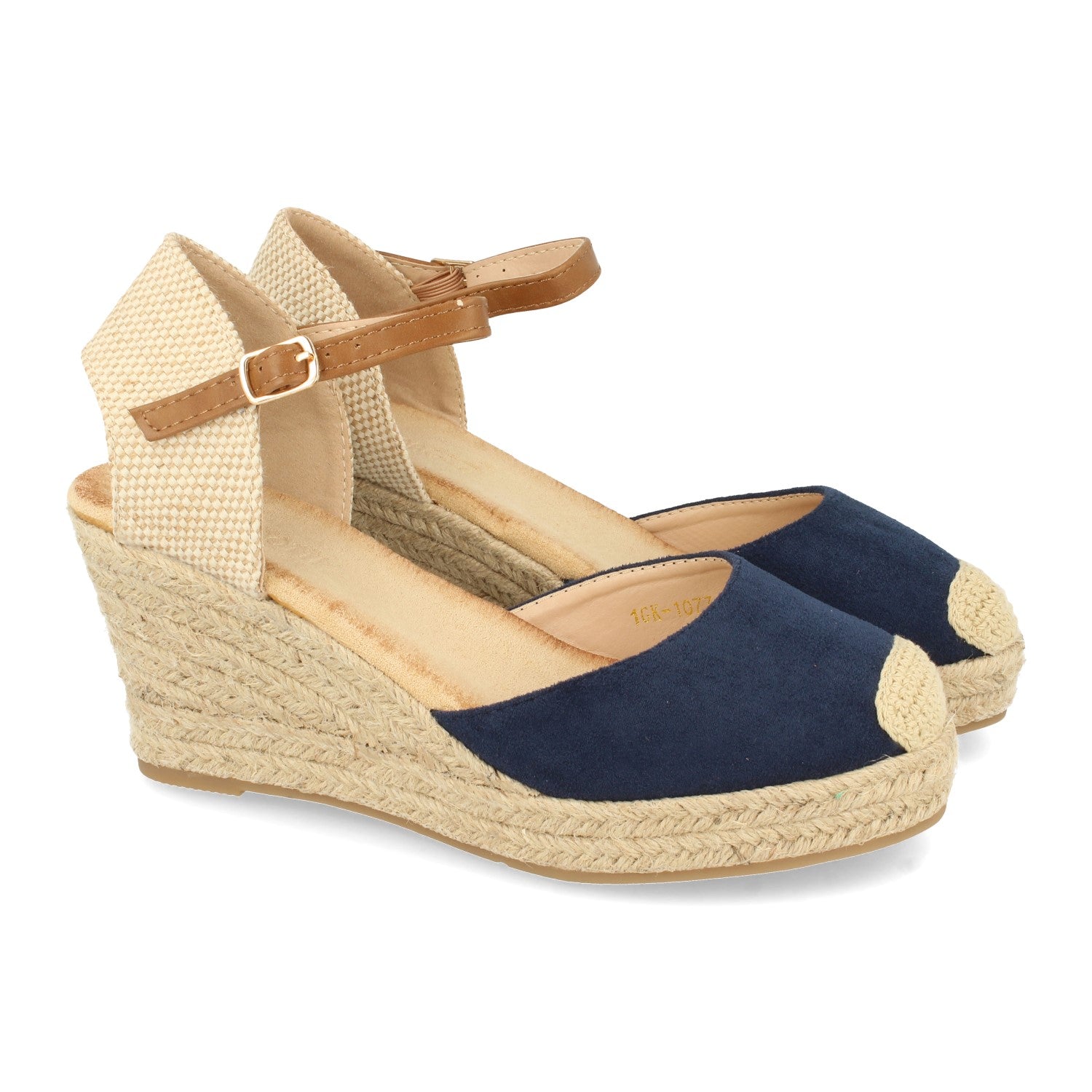 Sandalia de Cuña con Yute Estilo Valenciana Pala Cerrada Talon de Rafia y Cierre de Hebilla en el Tobillo Primavera Verano 2021
