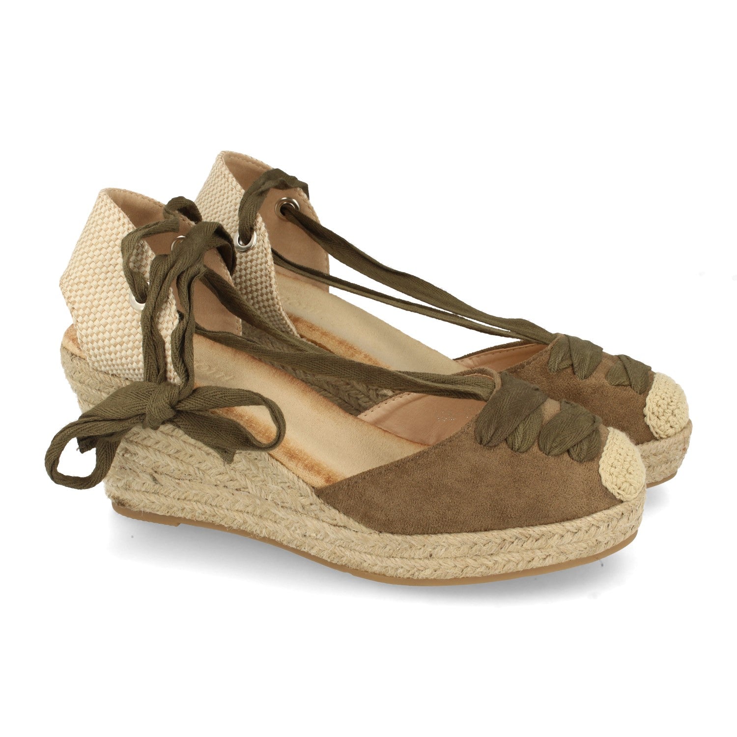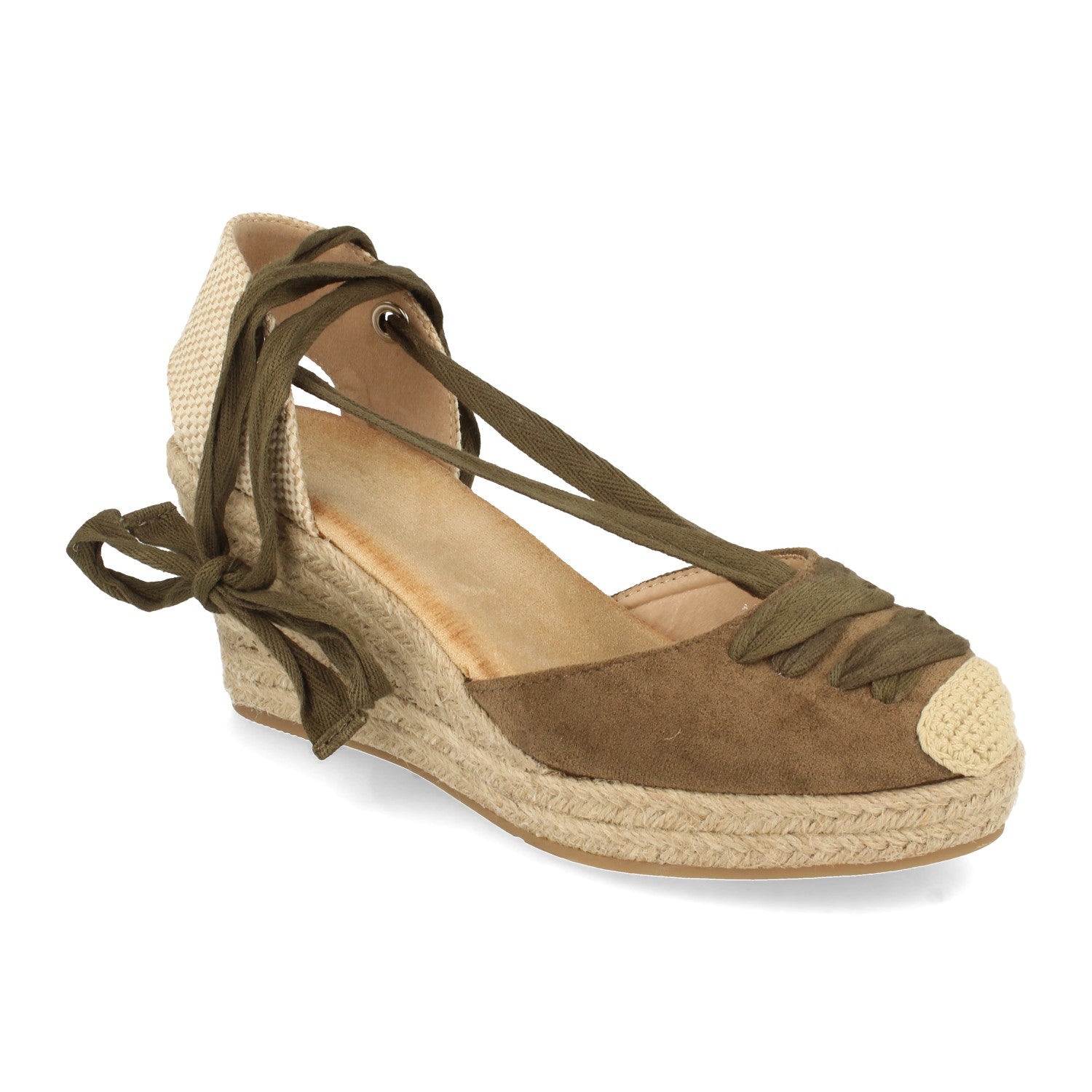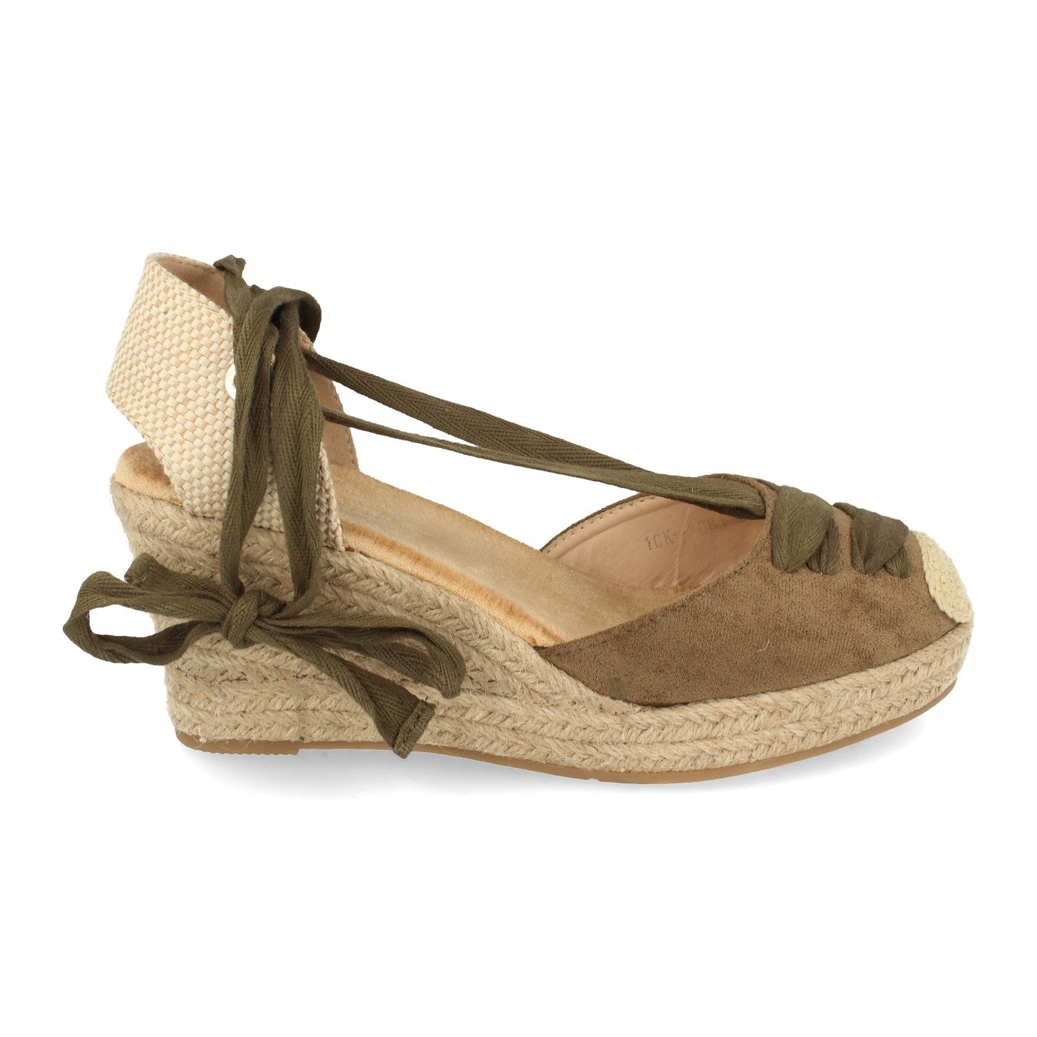 Sandalia de Cuña con Yute Estilo Valenciana Pala con Tiras y Cierre de Cordones en el Tobillo Primavera Verano 2021