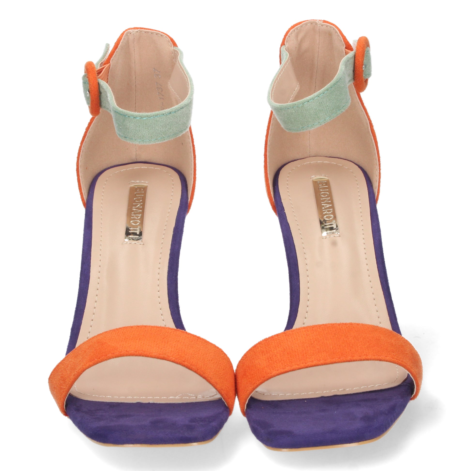 Sandalia con Tacon de Aguja para Mujer Estampado Multicolor y Cierre de Hebilla Primavera Verano 2022