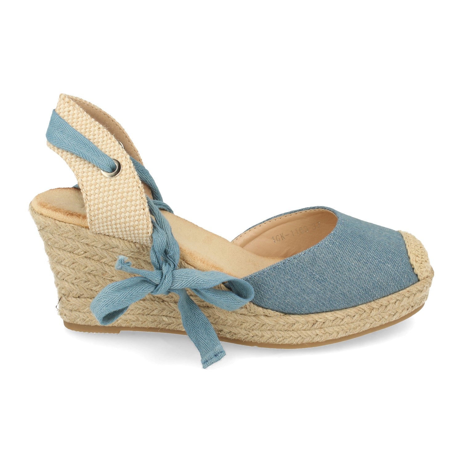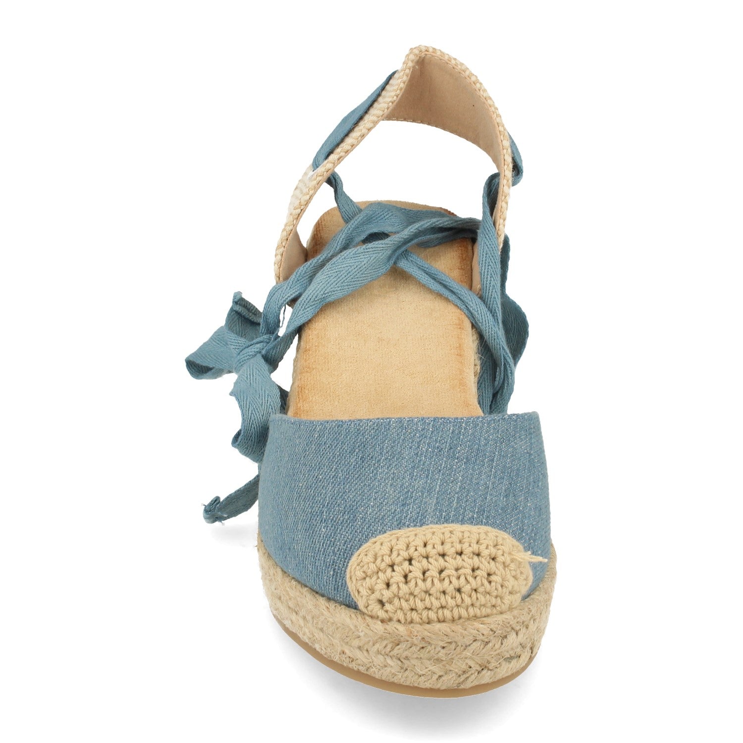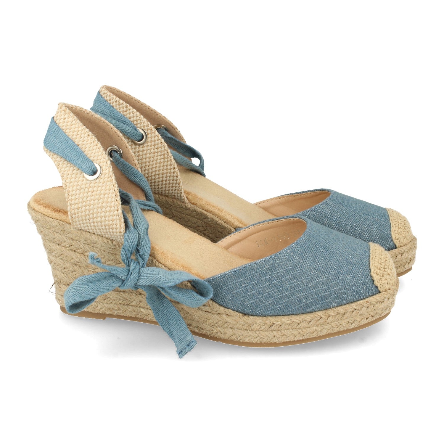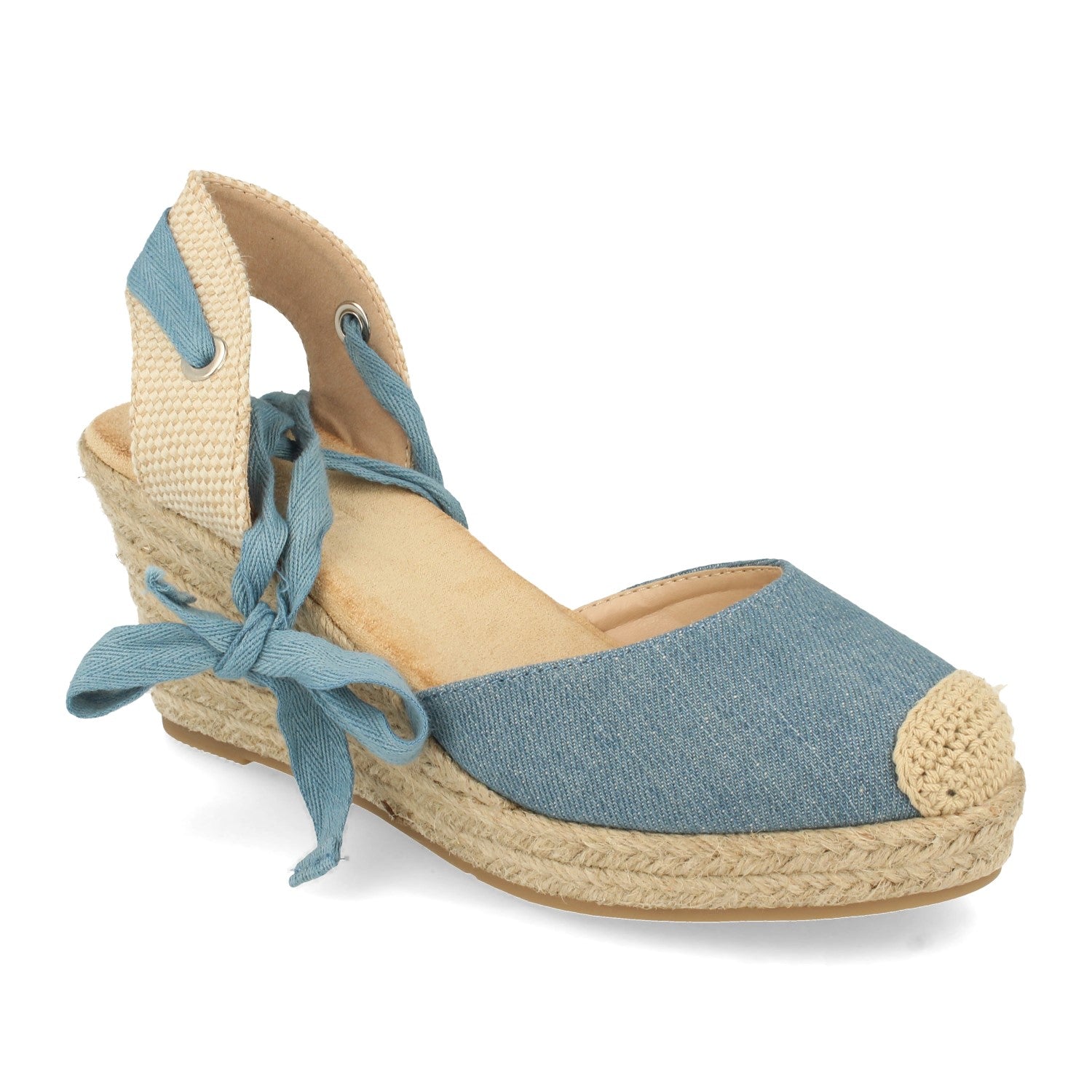 Sandalia de Cuña con Yute Pala Cerrada Puntera Crochet Talon Abierto Cierre de Cordones en el Tobillo Primavera Verano 2021