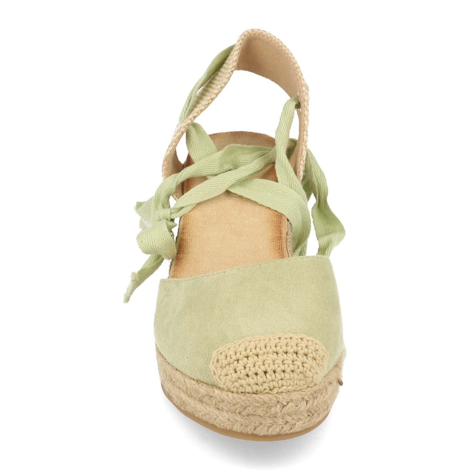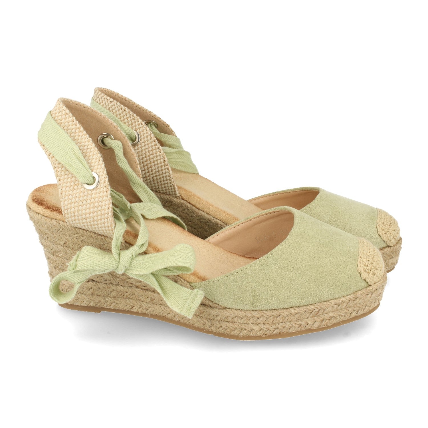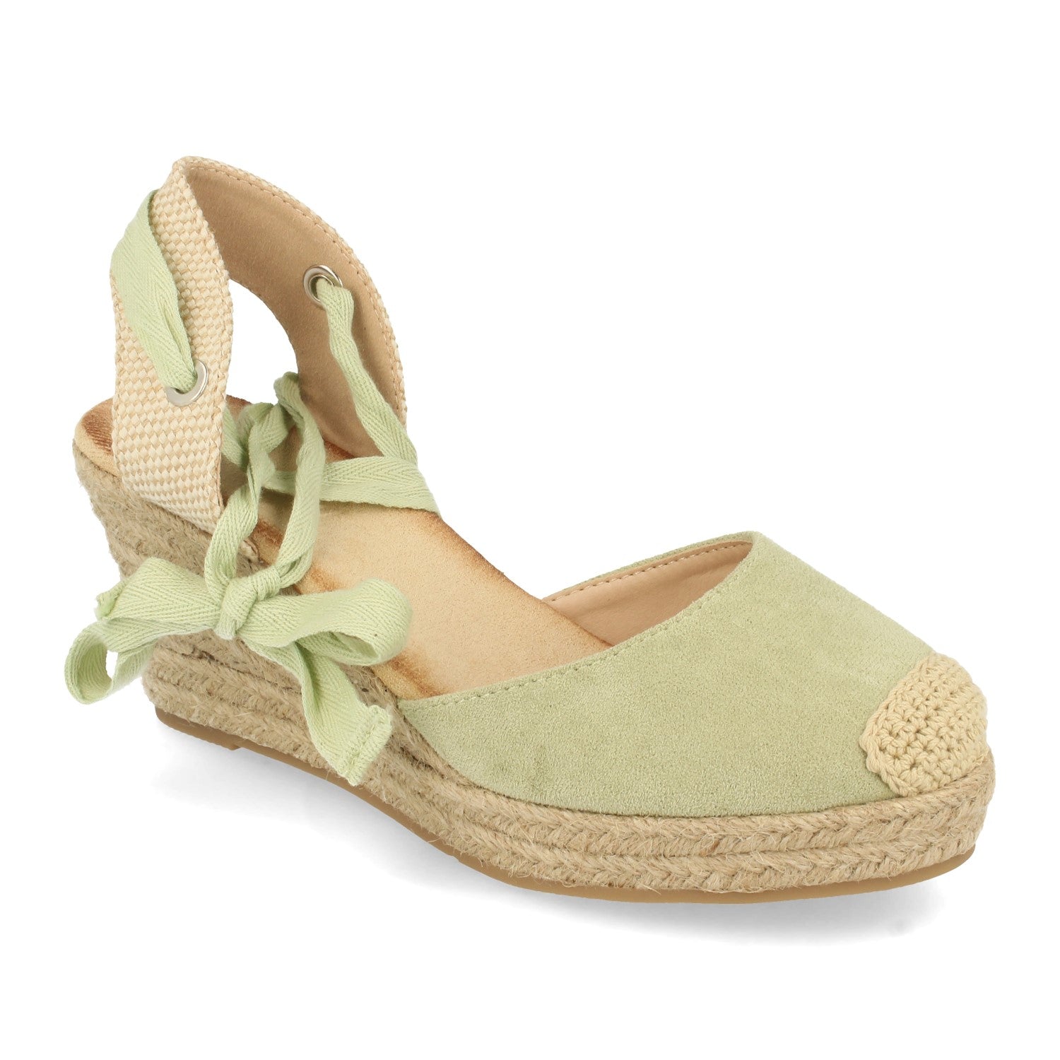 Sandalia de Cuña con Yute Pala Cerrada Puntera Crochet Talon Abierto Cierre de Cordones en el Tobillo Primavera Verano 2021