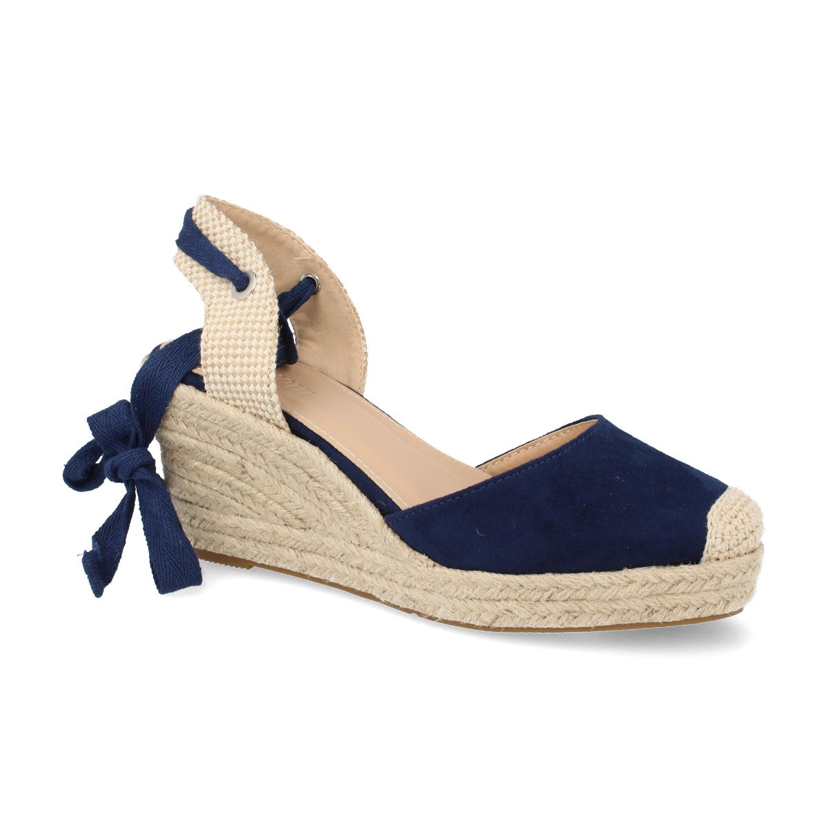 Sandalia de Cuña con Yute Pala Cerrada Puntera Crochet Talon Abierto Cierre de Cordones en el Tobillo Primavera Verano 2020