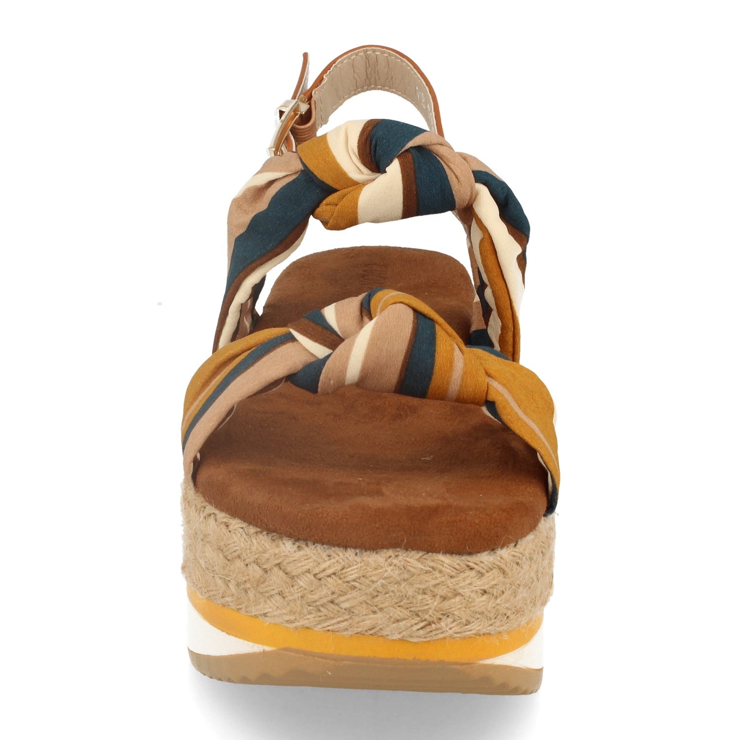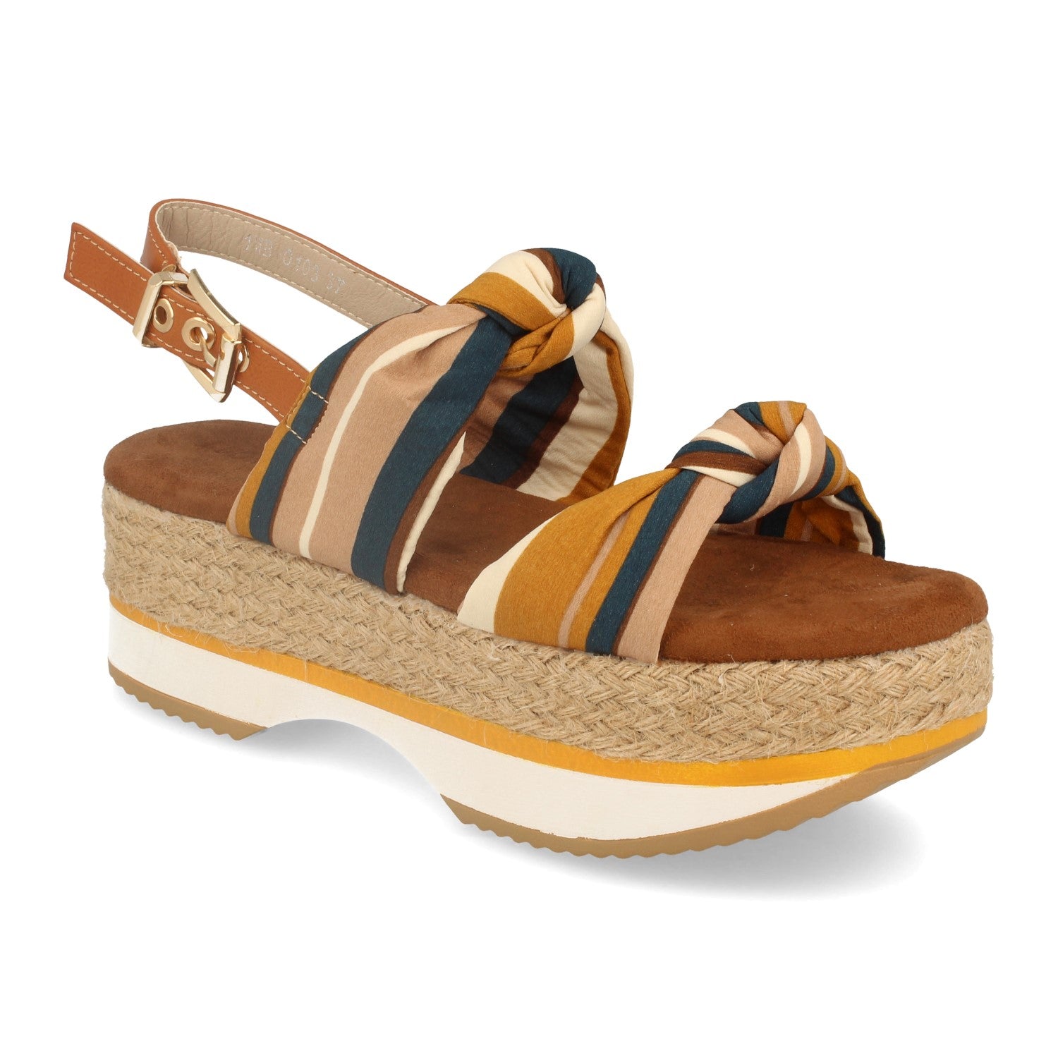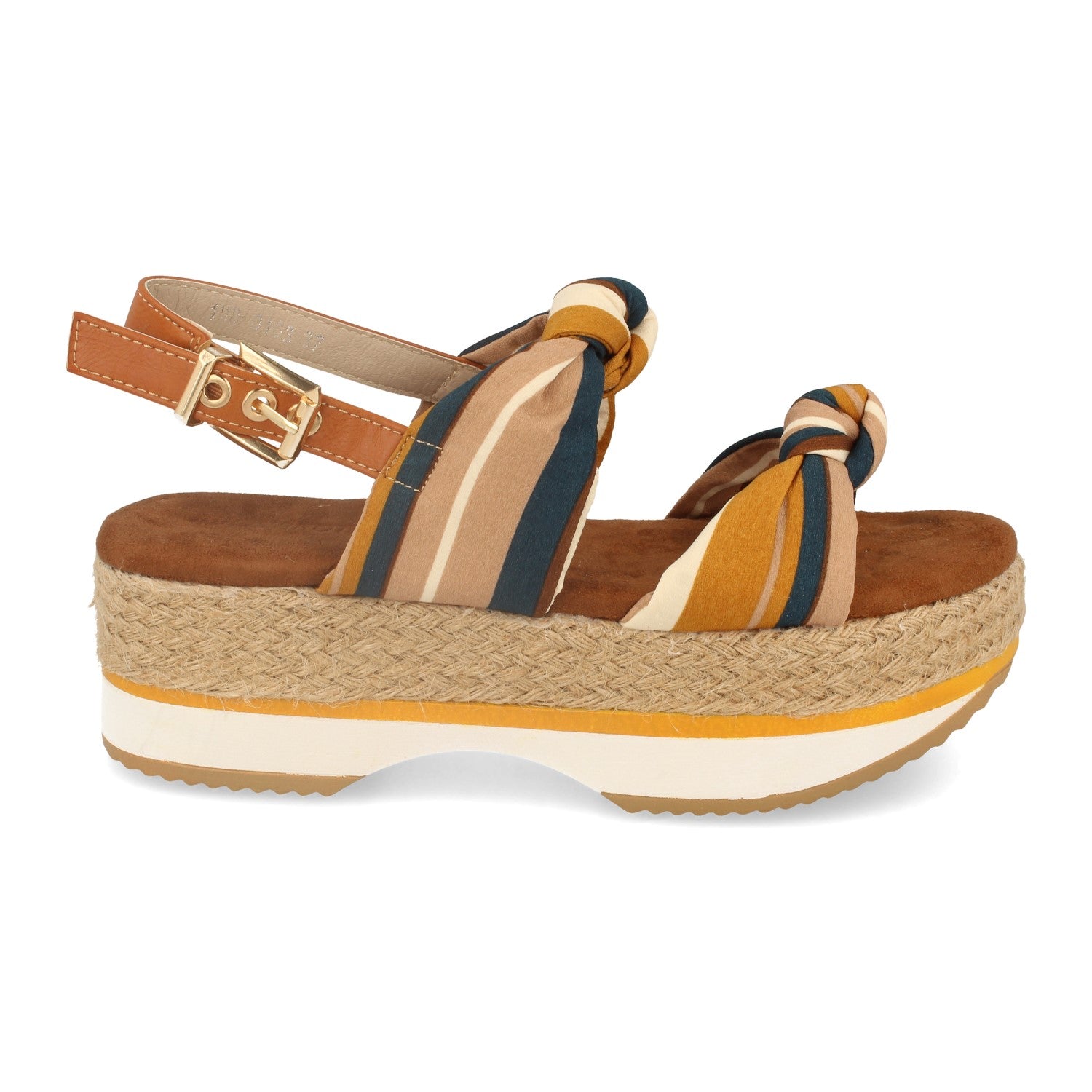 Sandalia de Doble Piso con Yute en Plataforma Doble Pala Textil con Nudo y Cierre de Hebilla en Tobillo Primavera Verano 2020