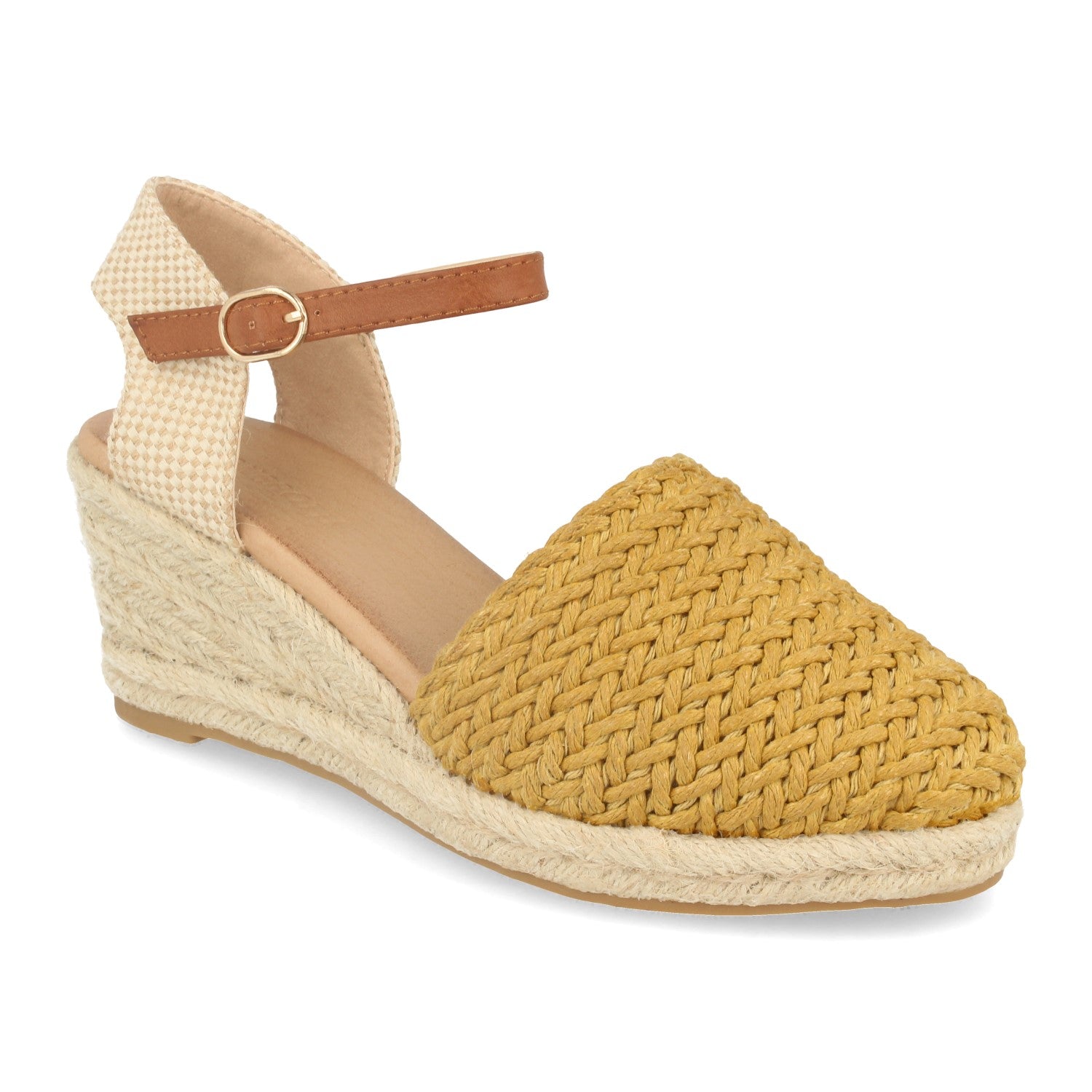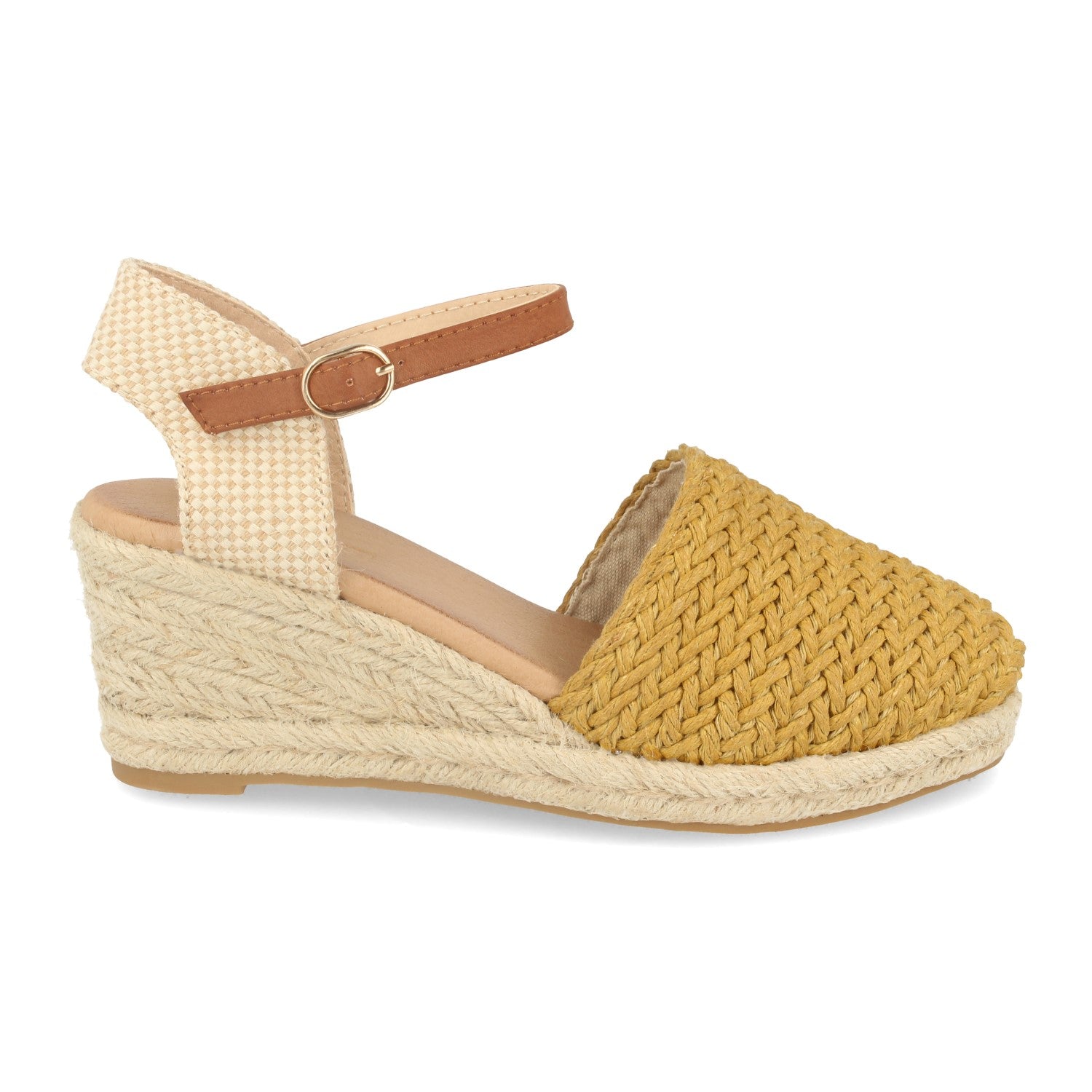 Sandalia para Mujer con Cuña de Yute Pala Cerrada de Rafia Talon Abierto y Cierre de Hebilla Primavera Verano 2021