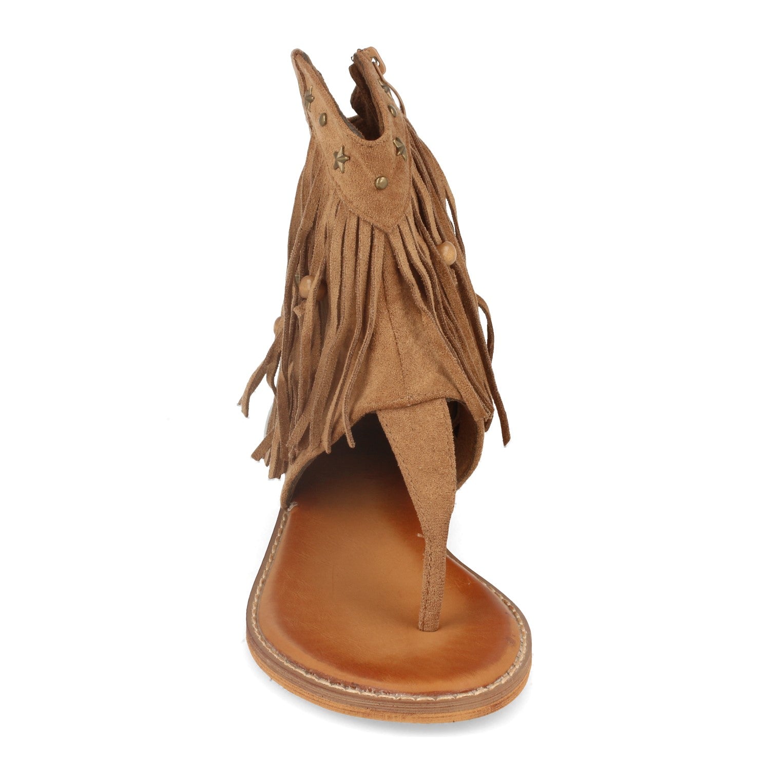 Sandalia de Esclava con Suela Plana Flecos Detalles Metalicos y Cierre de Cremallera Primavera Verano 2020