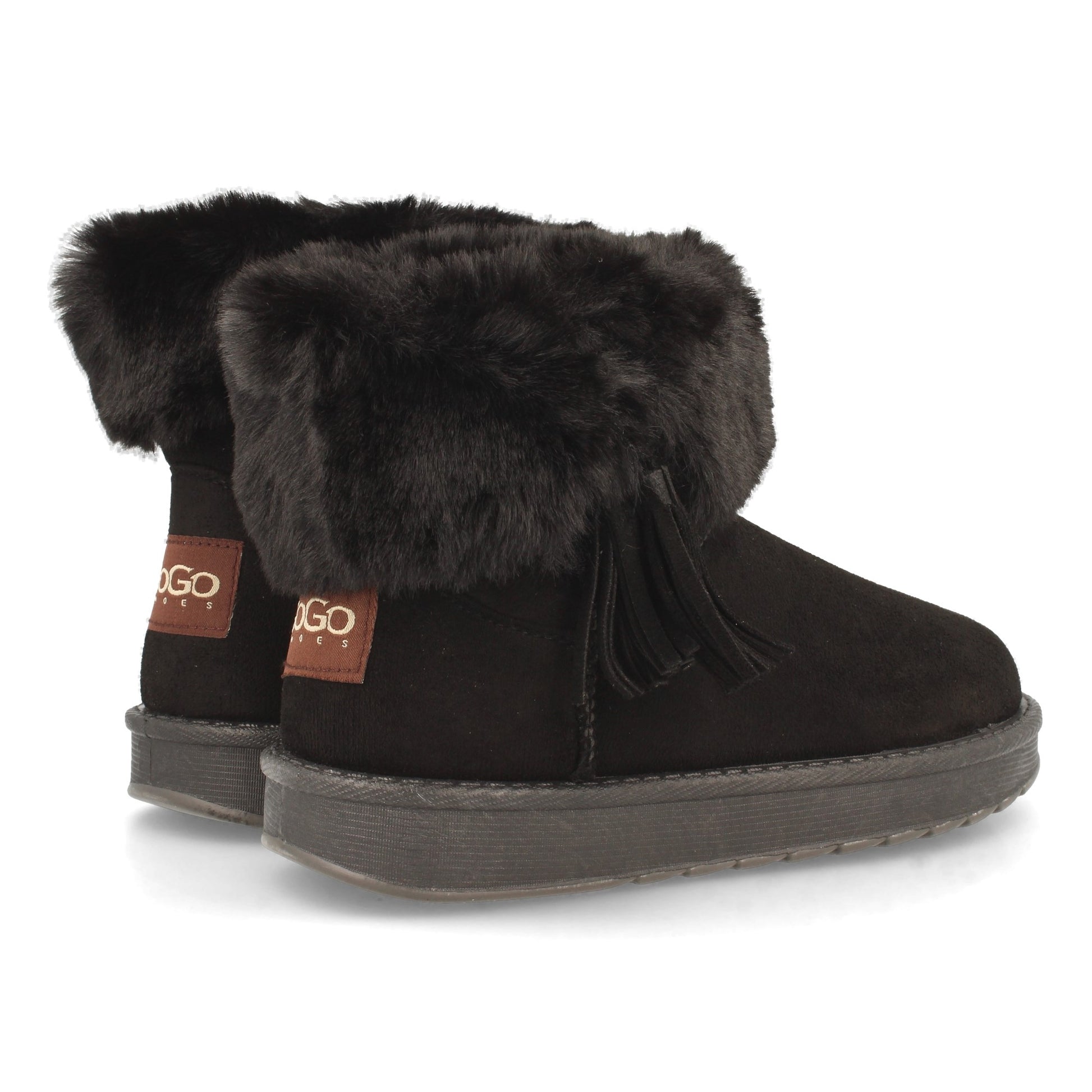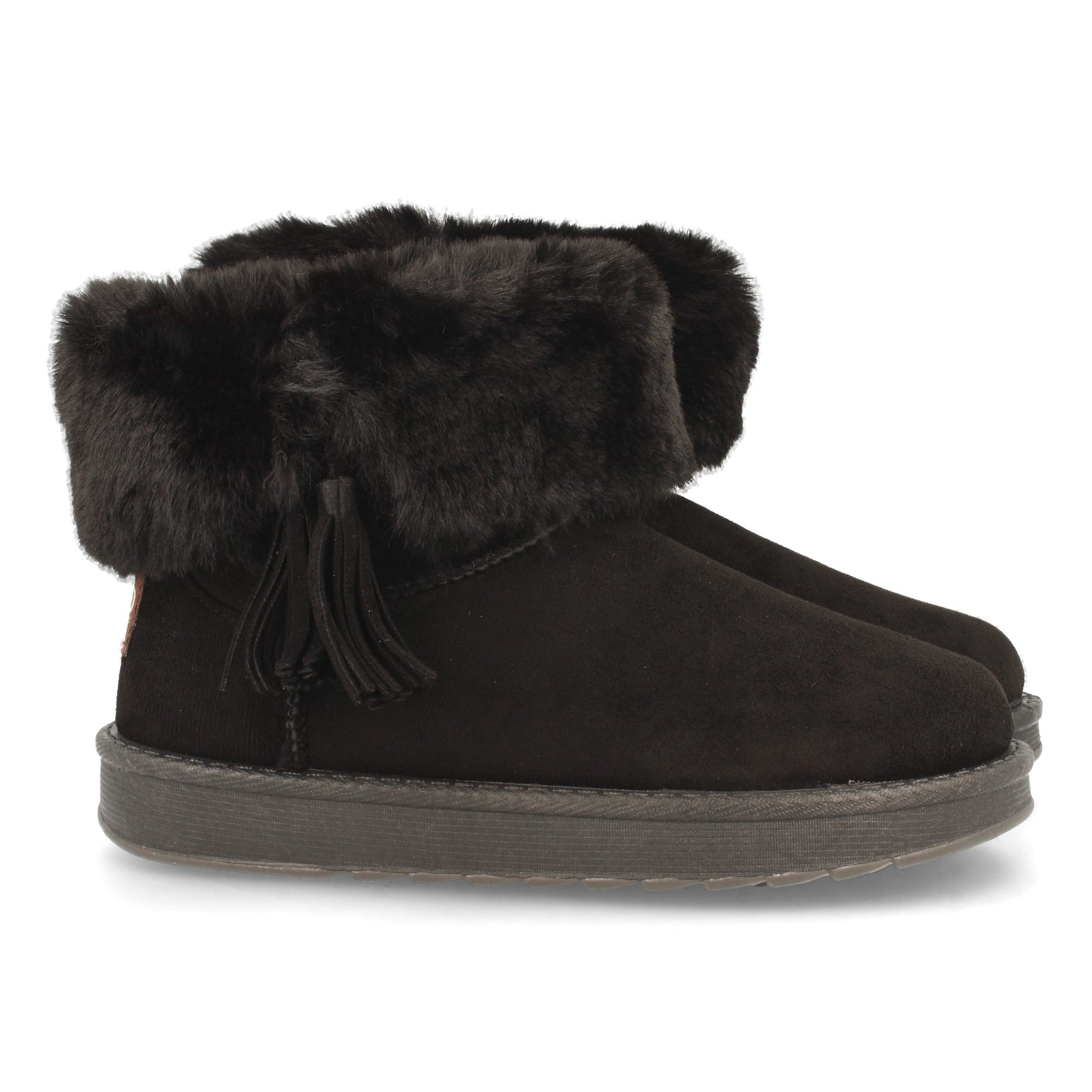Botín Plano para Mujer Estilo Australiano Forrado de Pelo de Punta Redonda y con Detalle de Flecos Otoño Invierno 2020