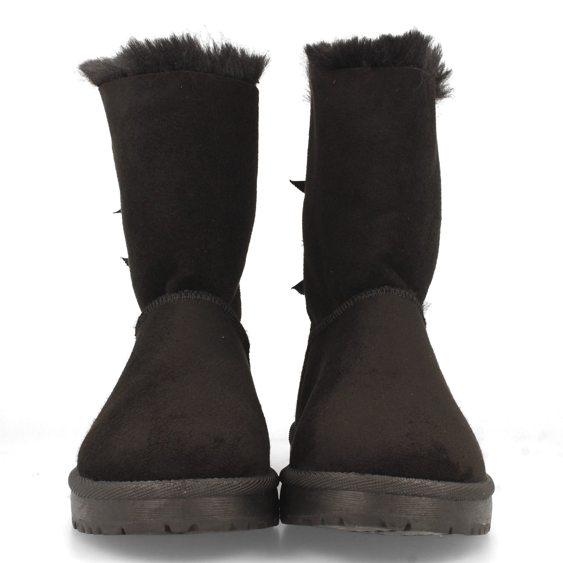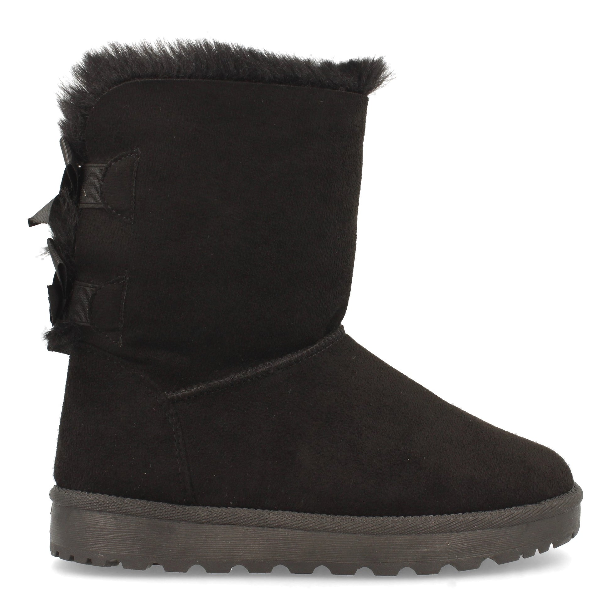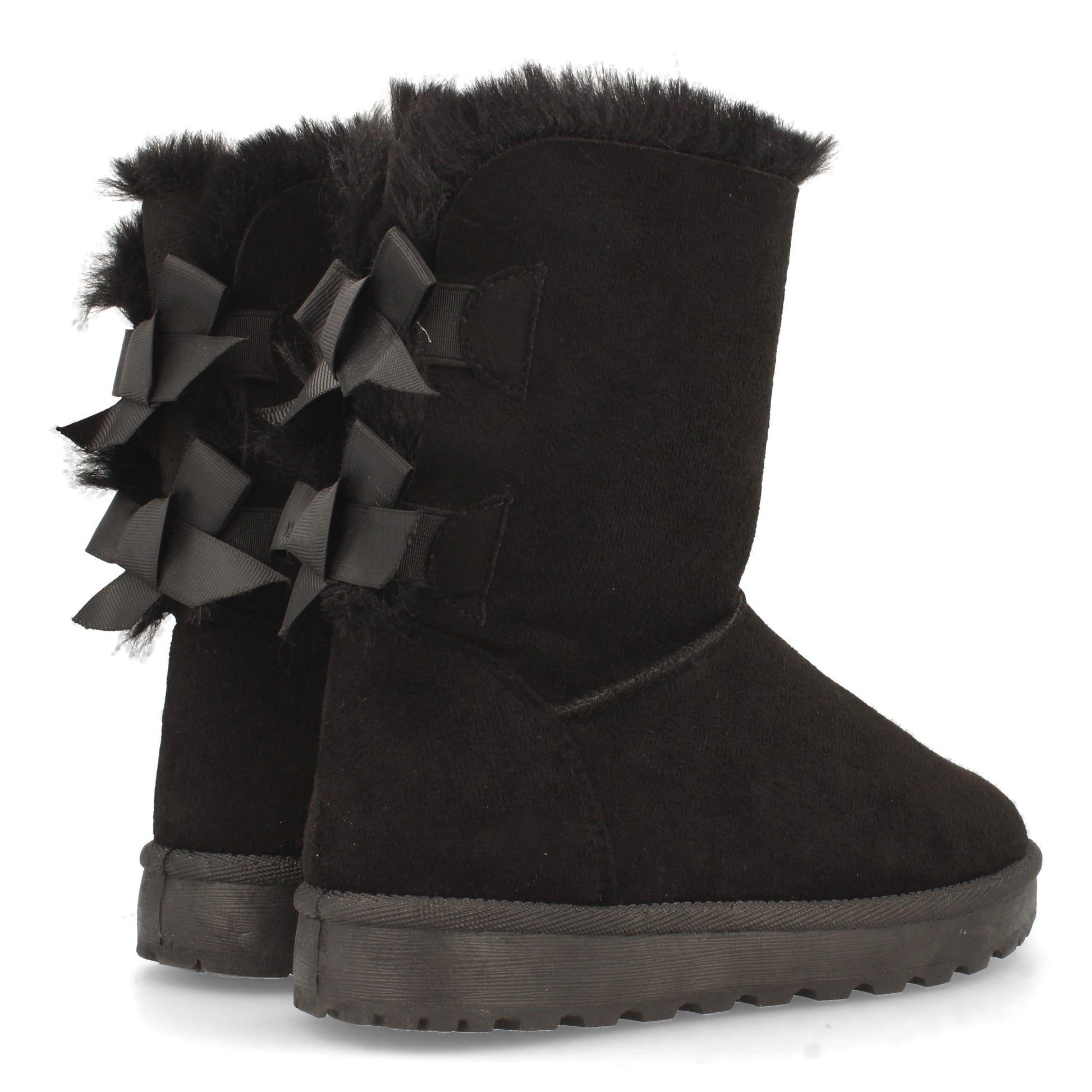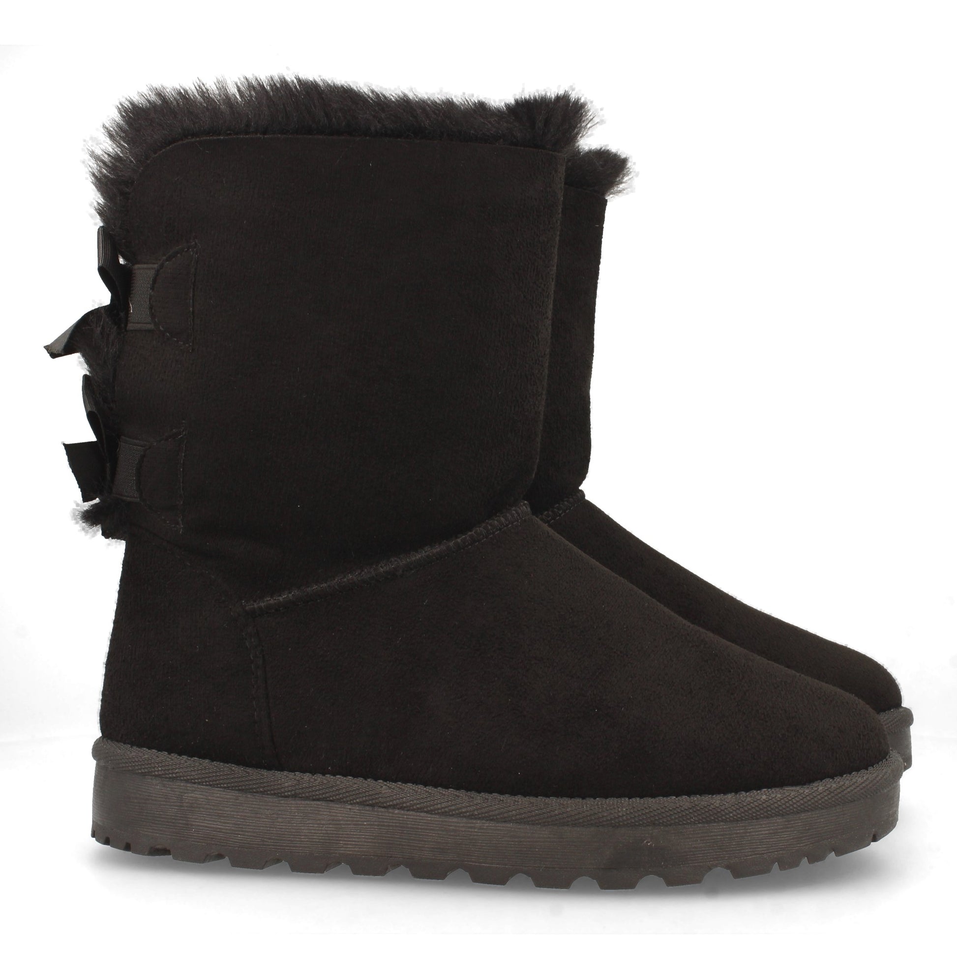 Botín Plano para Mujer Estilo Australiano Forrado de Pelo de Punta Redonda y con Lazos en el Contrafuerte como Detalle Otoño Invierno 2020