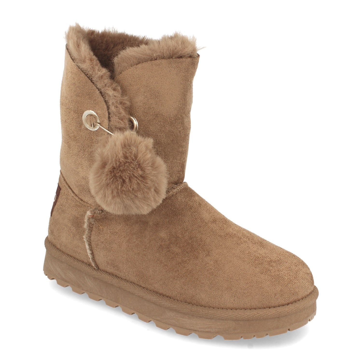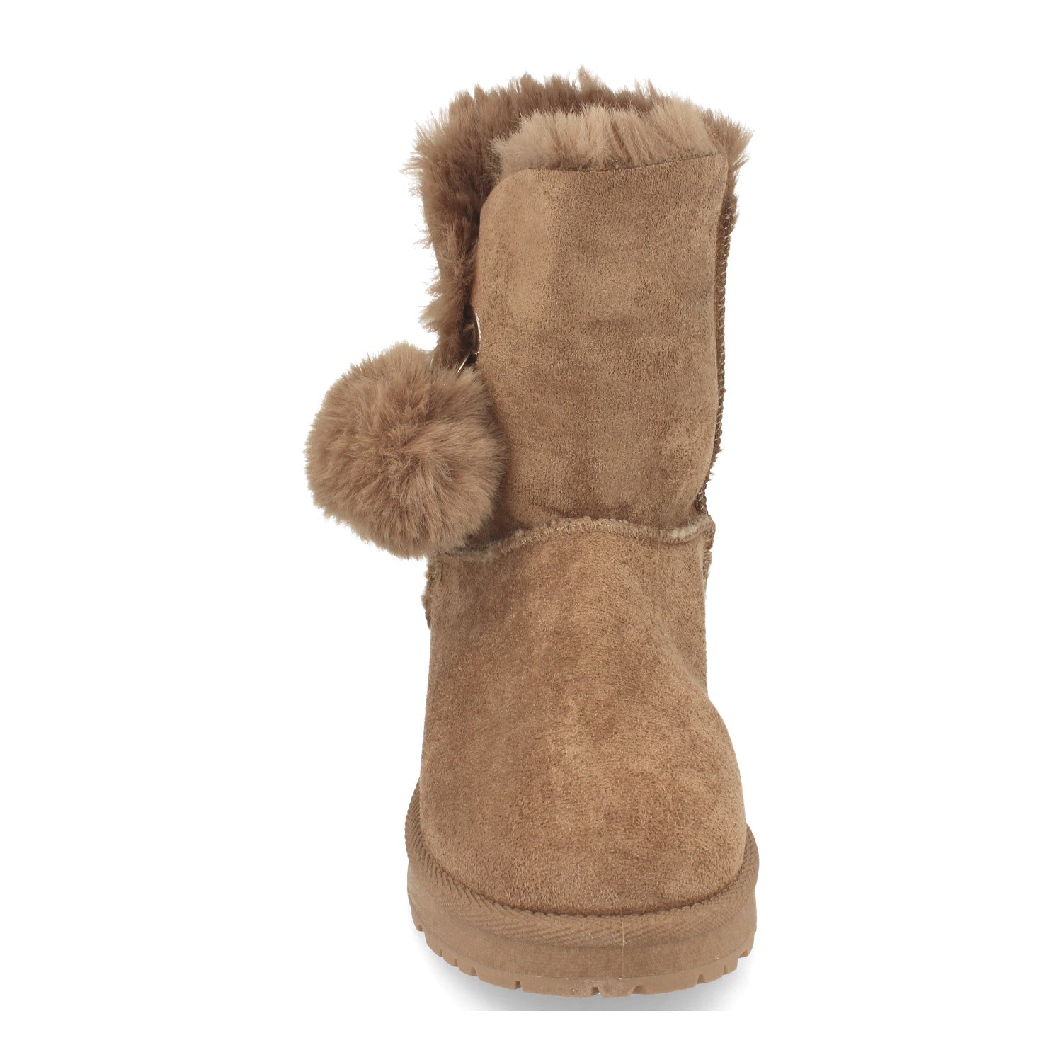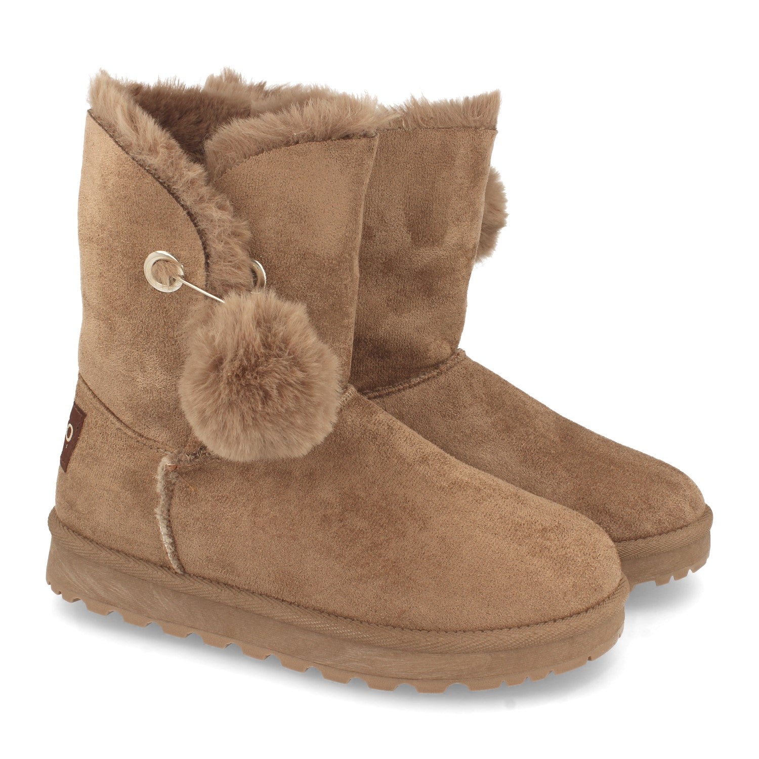 Botín Plano para Mujer Estilo Australiano Forrado de Pelo de Punta Redonda Decorado con Pompon en el Costado Otoño Invierno 2020