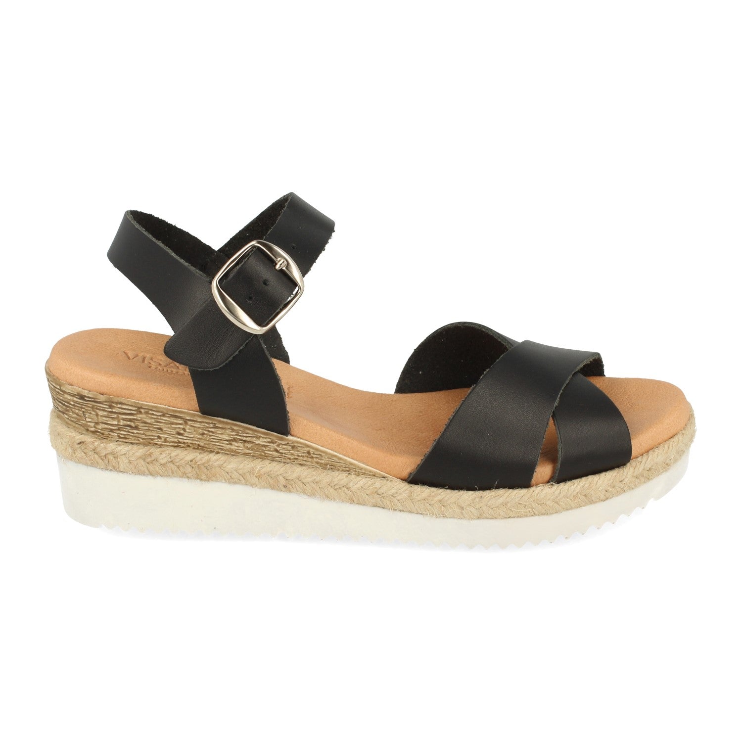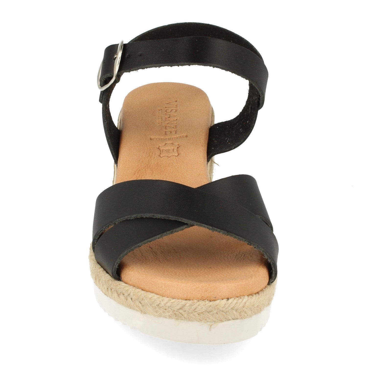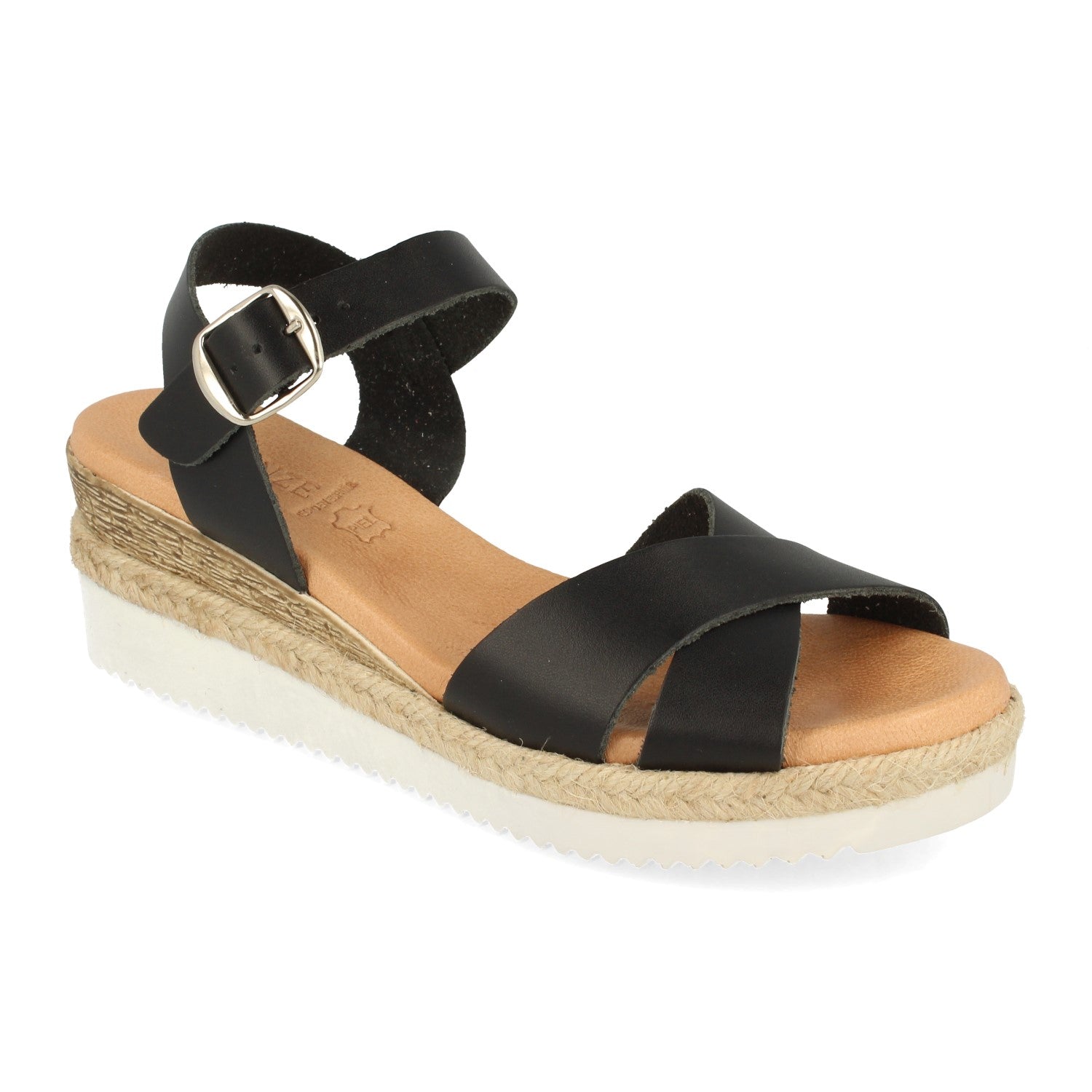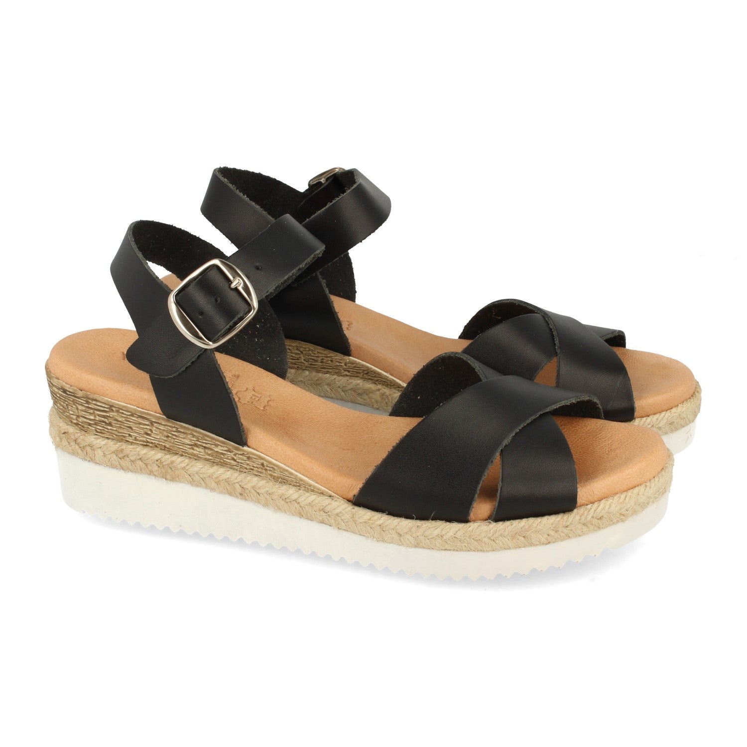 Sandalia de Cuña para Mujer Forrado con Yute Palas Cruzadas y Cierre de Hebilla Fabricado con Piel Primavera Verano 2021