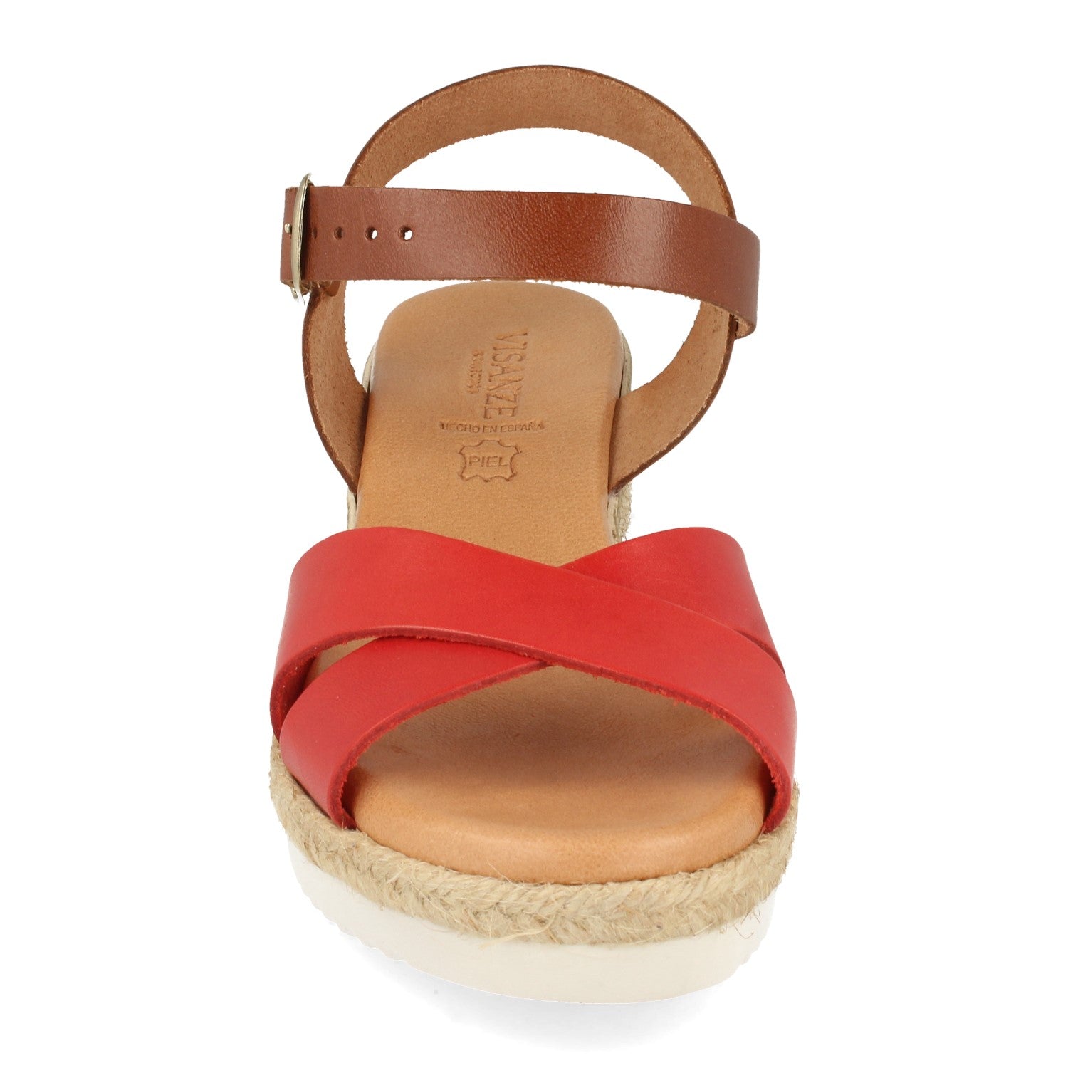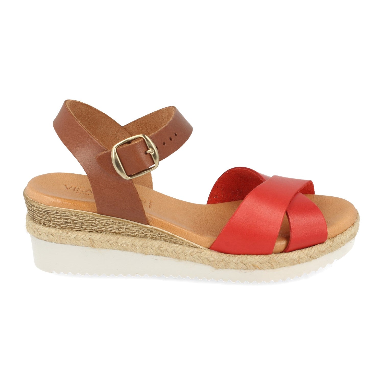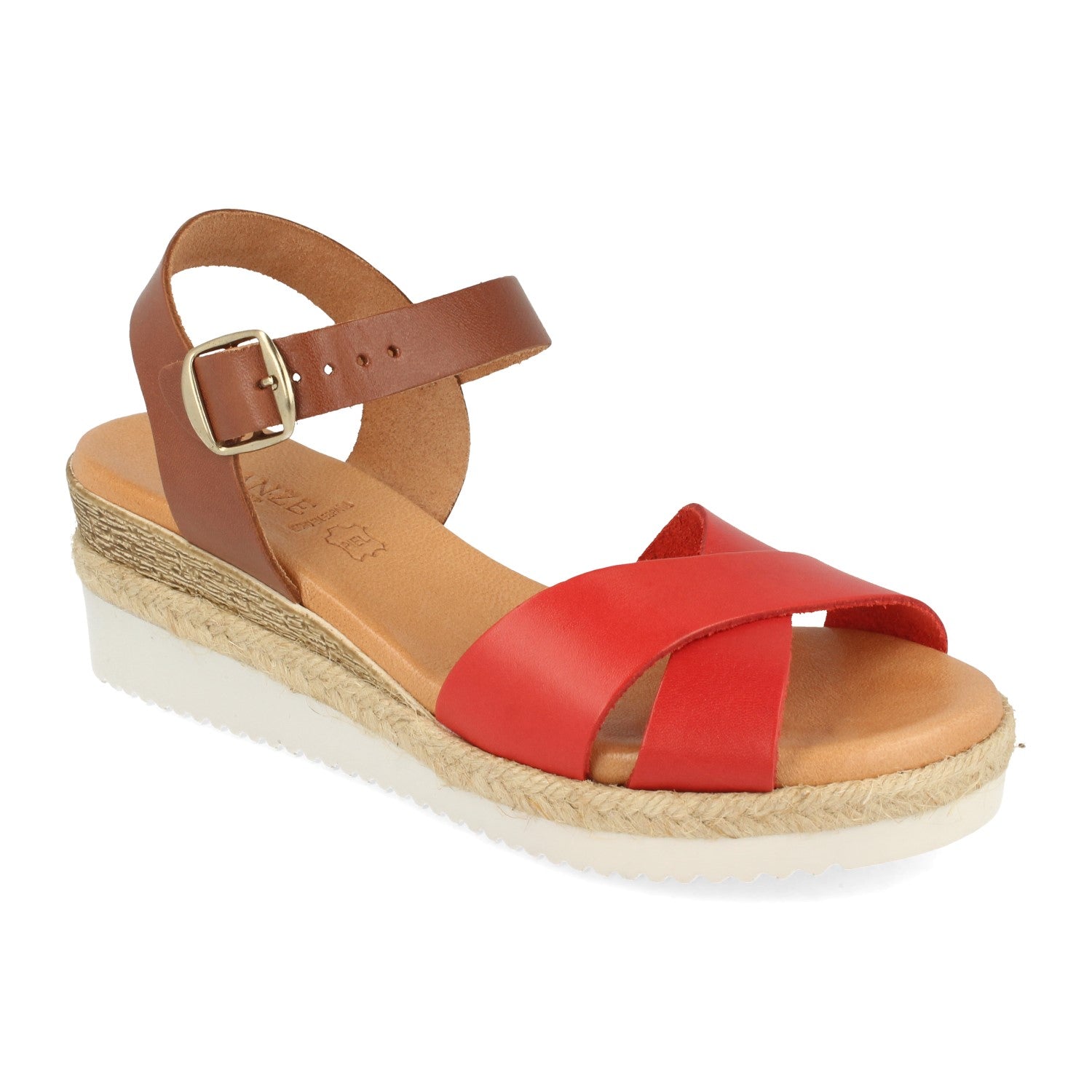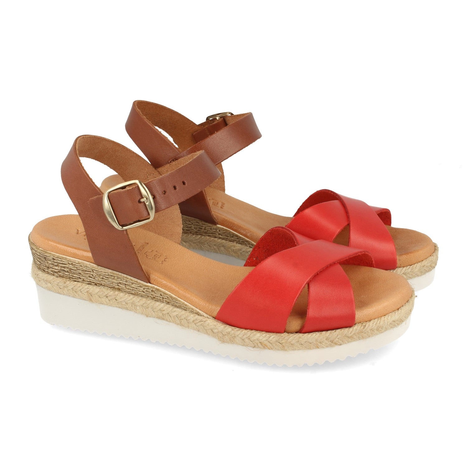 Sandalia de Cuña para Mujer Forrado con Yute Palas Cruzadas y Cierre de Hebilla Fabricado con Piel Primavera Verano 2021
